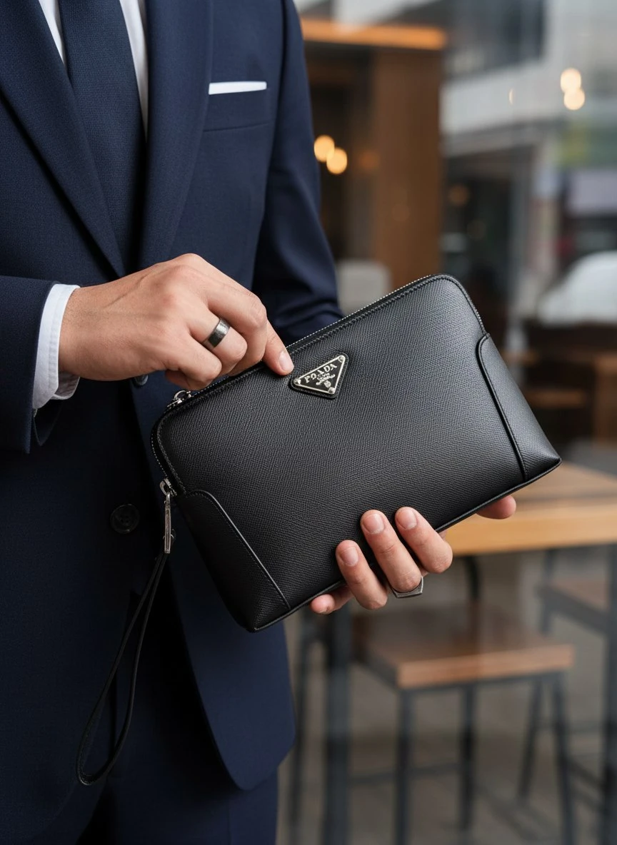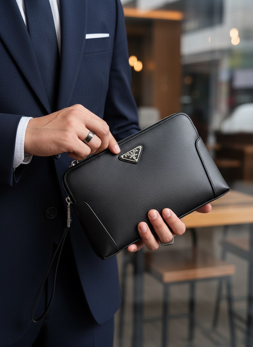 Мужской клатч Prada из сафьяновой кожи — это воплощение элегантности и утончённого стиля. Изготовленный из премиальной кожи, он отличается высокой износостойкостью и роскошной текстурой. Лаконичный дизайн подчёркивается фирменным треугольным логотипом Prada, выполненным из металла, который добавляет изделию статусности.