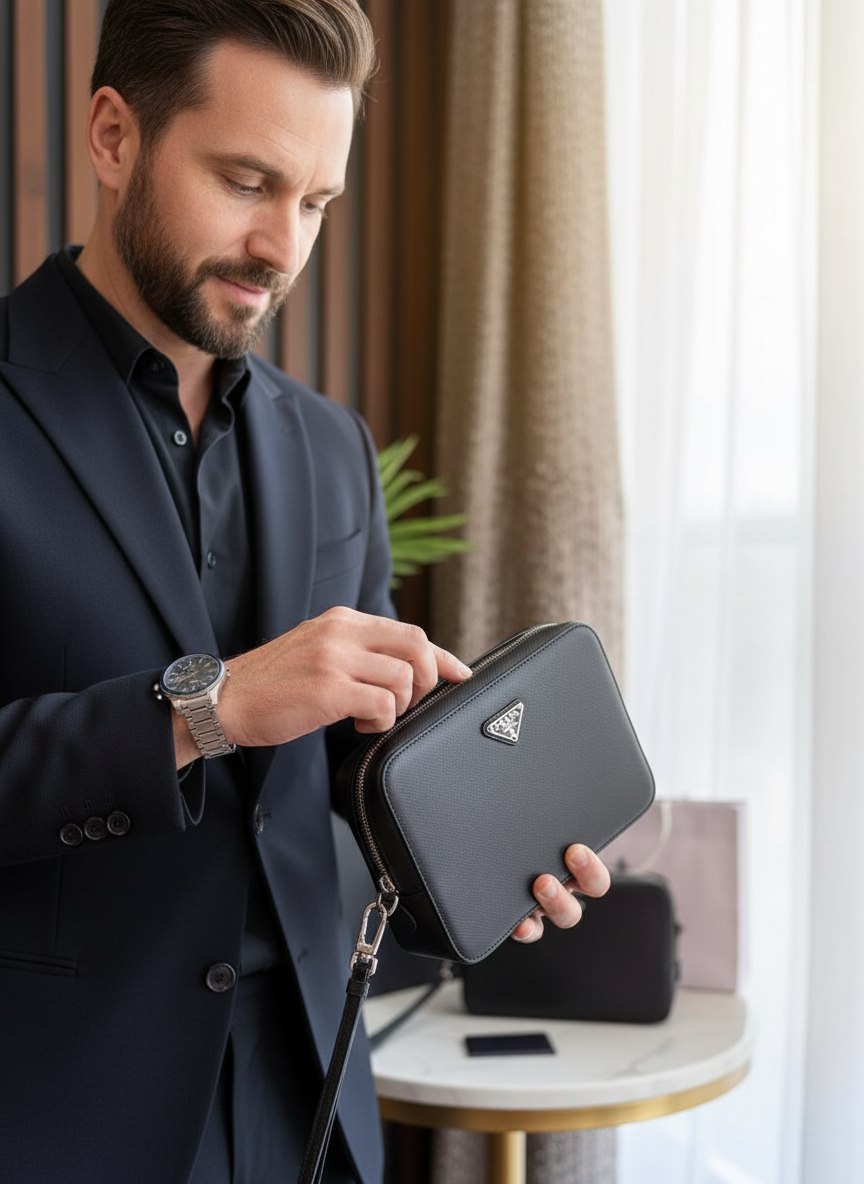 Мужской клатч Prada 2VF017 из сафьяновой кожи — воплощение утончённого стиля и безупречного качества. Этот аксессуар идеально подойдёт для современных мужчин, ценящих практичность и роскошь.