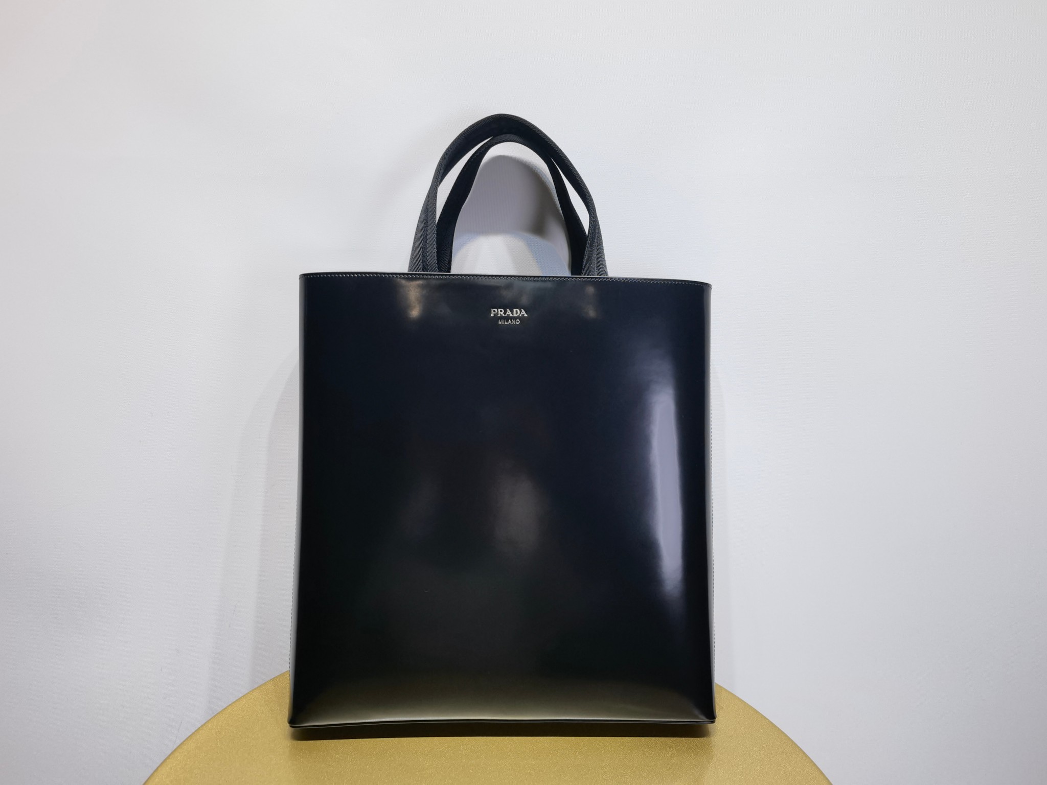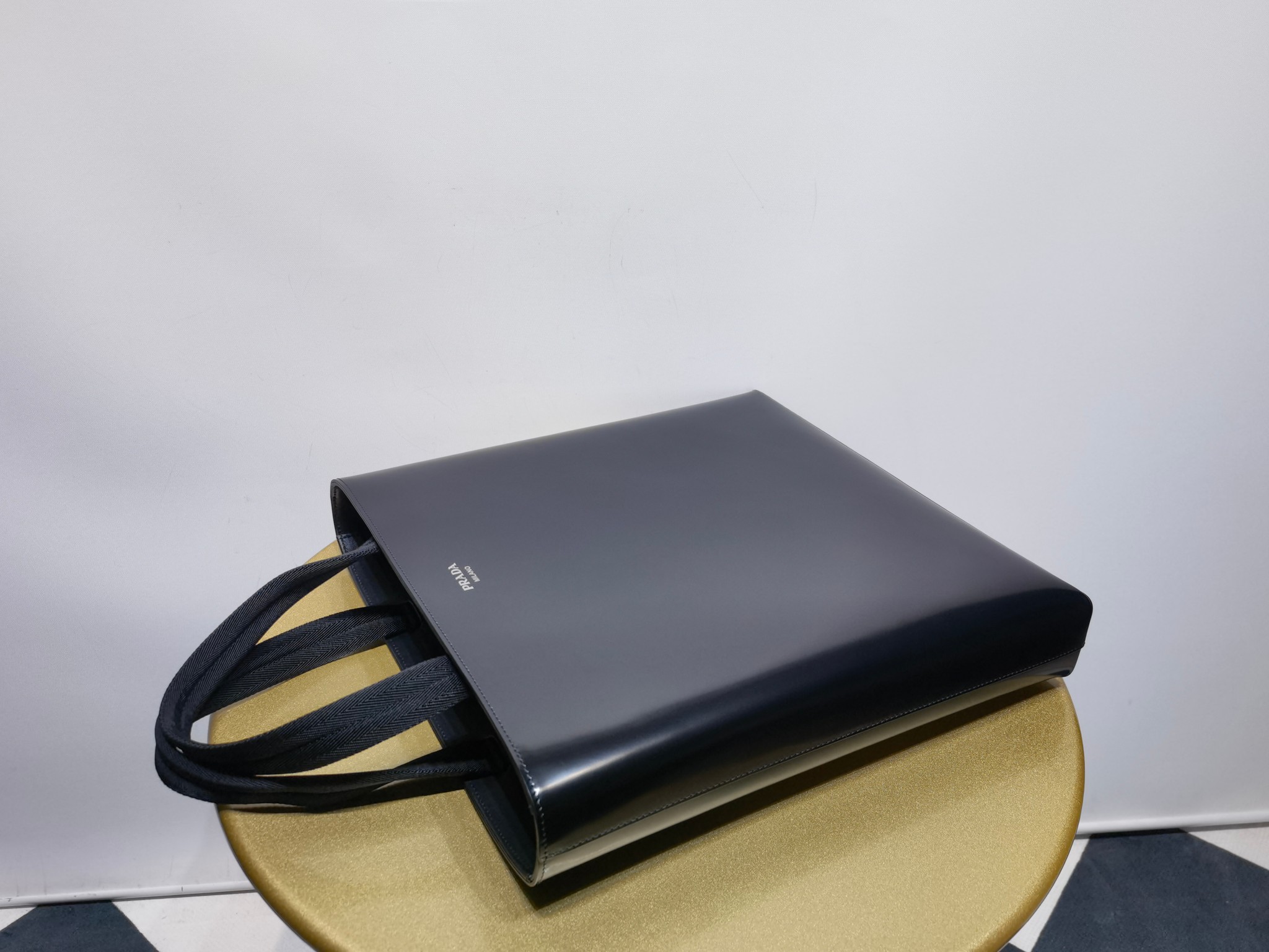 PRADA Мужская сумка-тоут из глянцевой кожи