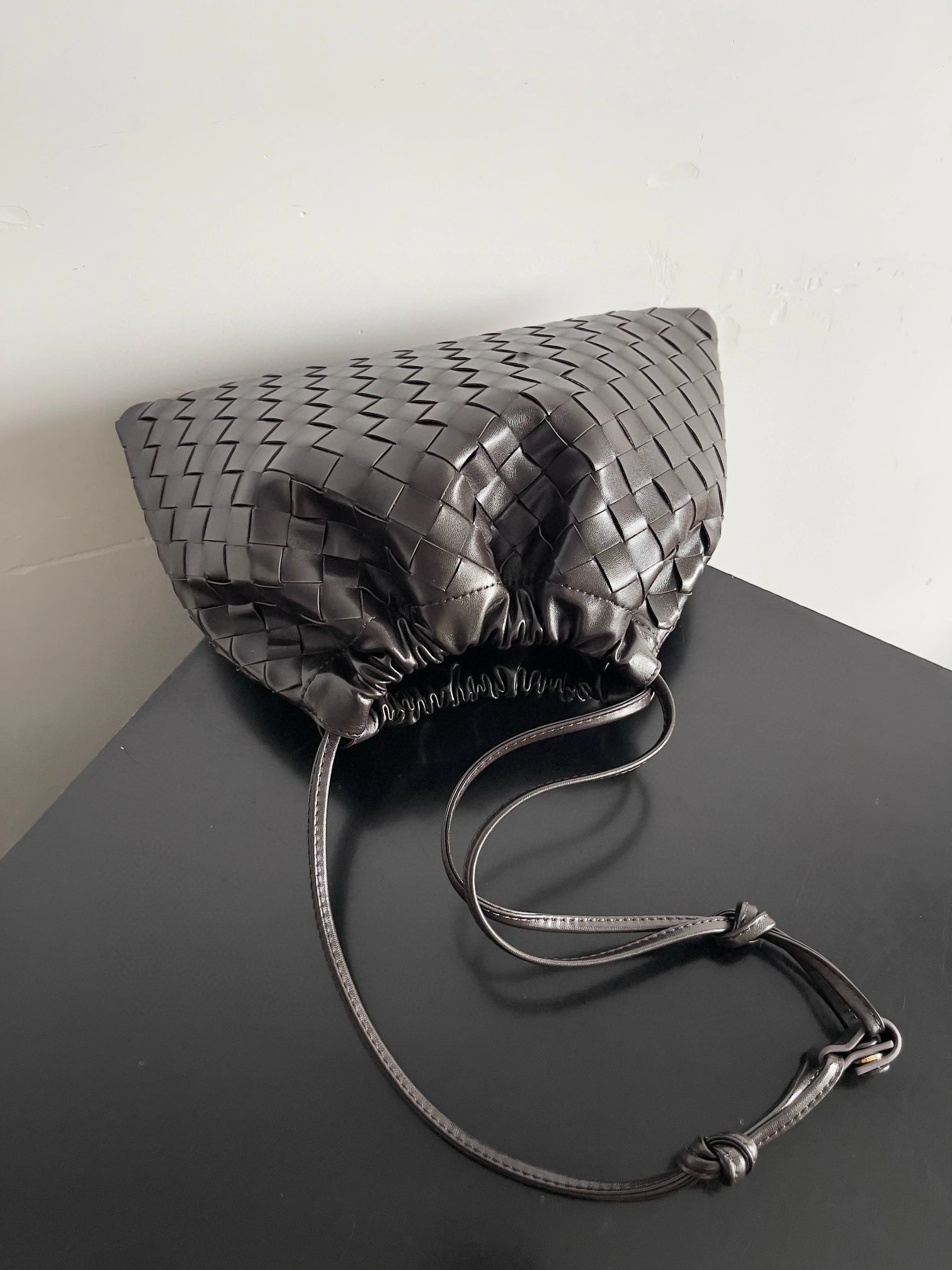 Сумка Dustbag от Bottega Veneta — это стильный аксессуар, который выделяется своим характерным плетеным дизайном Intrecciato, выполненным из высококачественной кожи. Она мягкая, благодаря чему легко принимает форму содержимого.