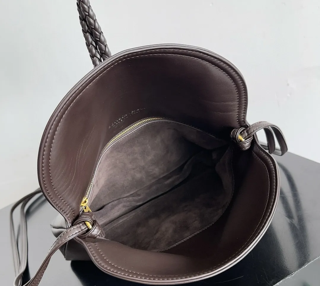 Внутри расположен карман на молнии. Подклад выполнен из мягкой замши. Латунная фурнитура подчеркивает премиальность модели.