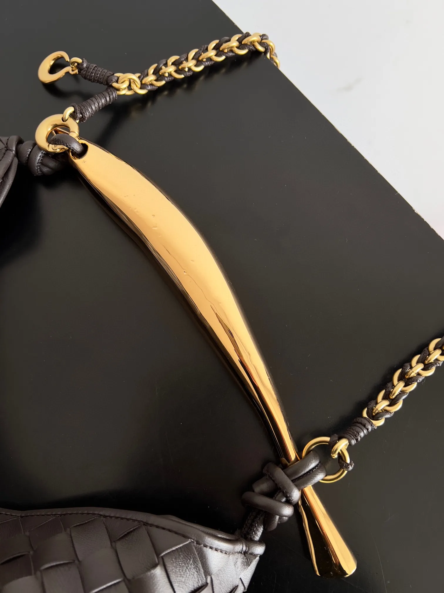Подкладка выполнена из овечьей кожи с плетением Intrecciato. Отделка фурнитуры – изысканная латунь.
