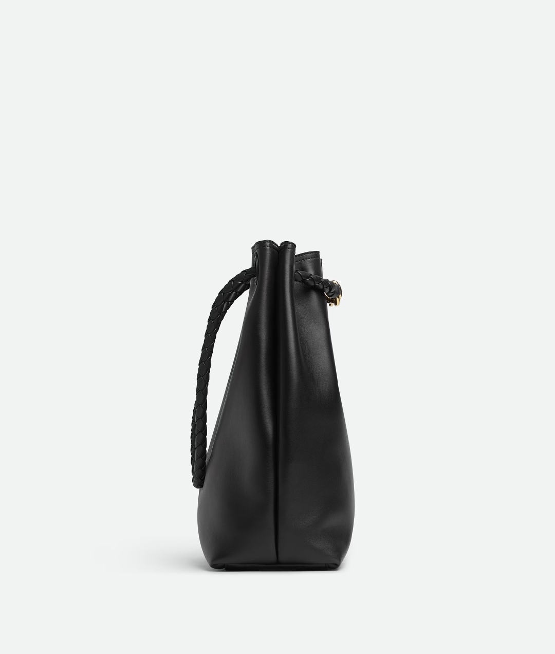 Элегантная женская сумка Andiamo от Bottega Veneta — воплощение современной роскоши и утончённого стиля. Модель выполнена из мягкой натуральной кожи насыщенного черного оттенка, которая придаёт изделию чувство премиальности и универсальности. Фирменная деталь — плетёная ручка с изысканным золотистым акцентом — подчеркивает узнаваемый ДНК бренда и добавляет образу статусности.