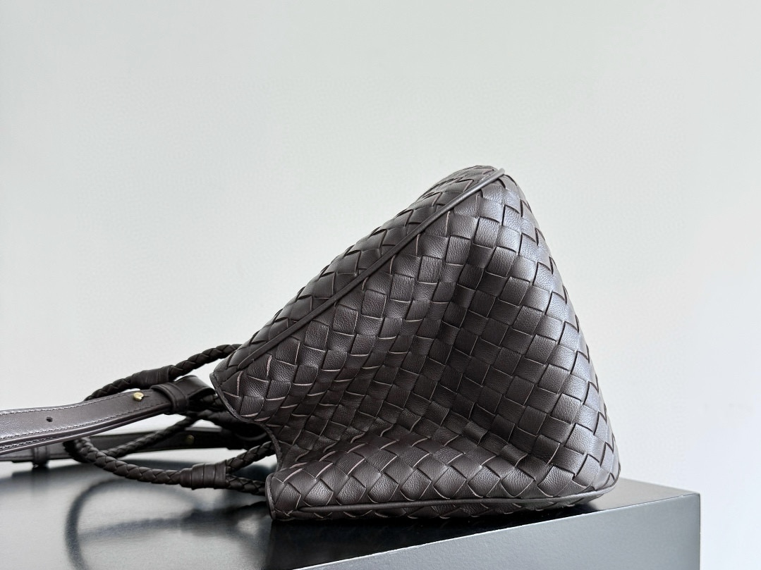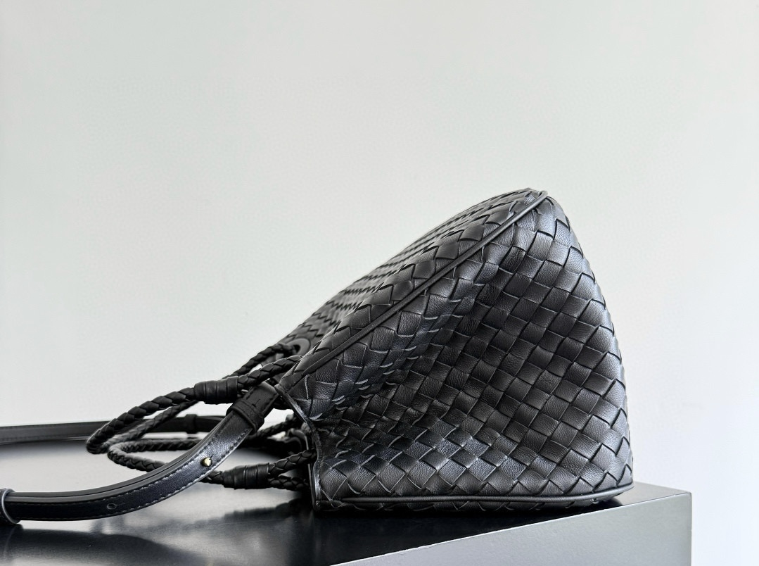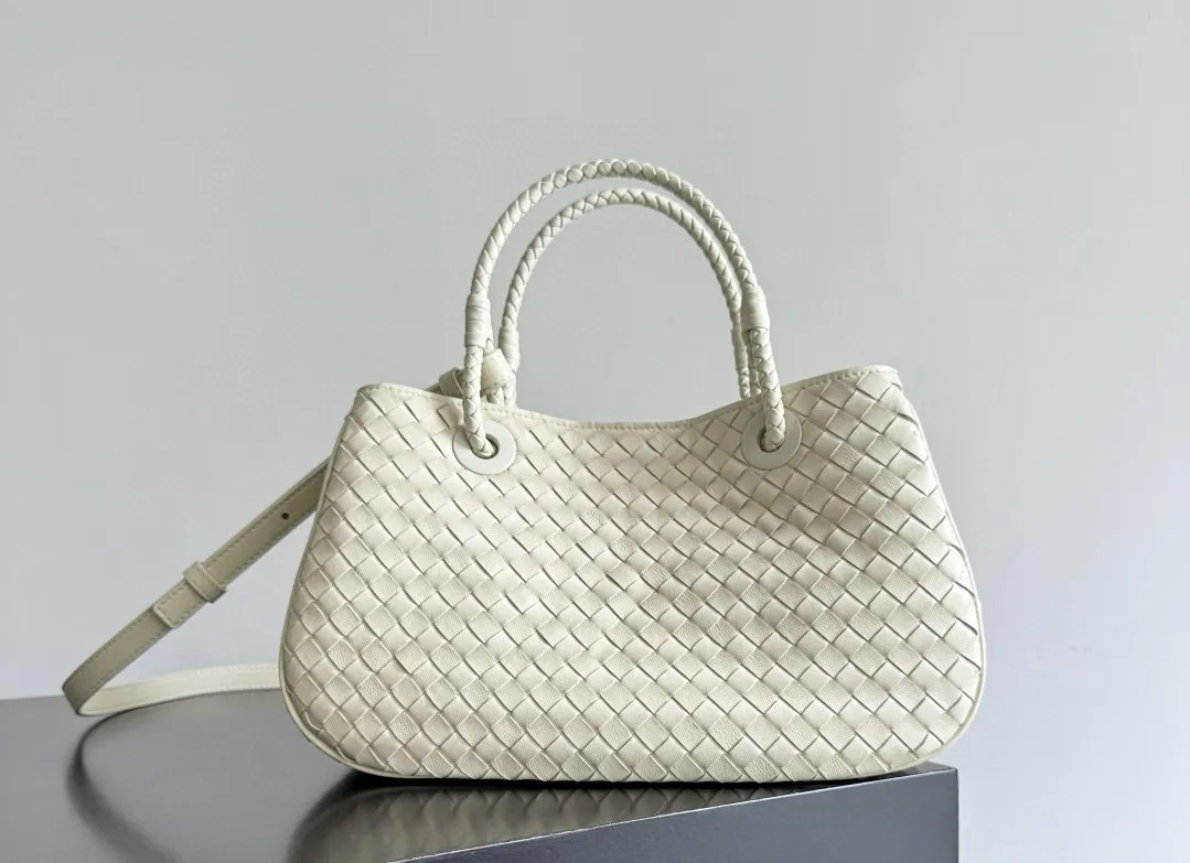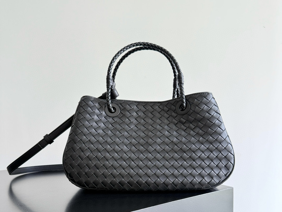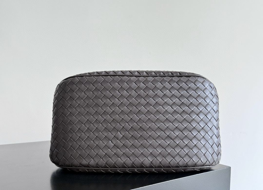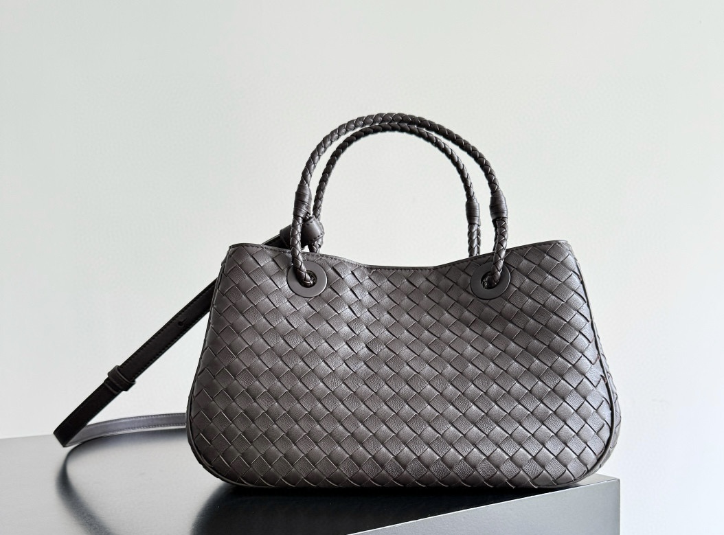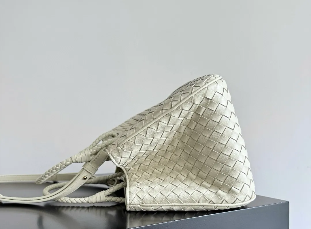 Функциональная форма в виде корзины дополнена двумя короткими плетёными ручками и длинным регулируемым ремнём для ношения на плече или через плечо. Внутри сумки — гравированная латунная пластина с указанием года выпуска сумки и предварительно присвоенным номером.