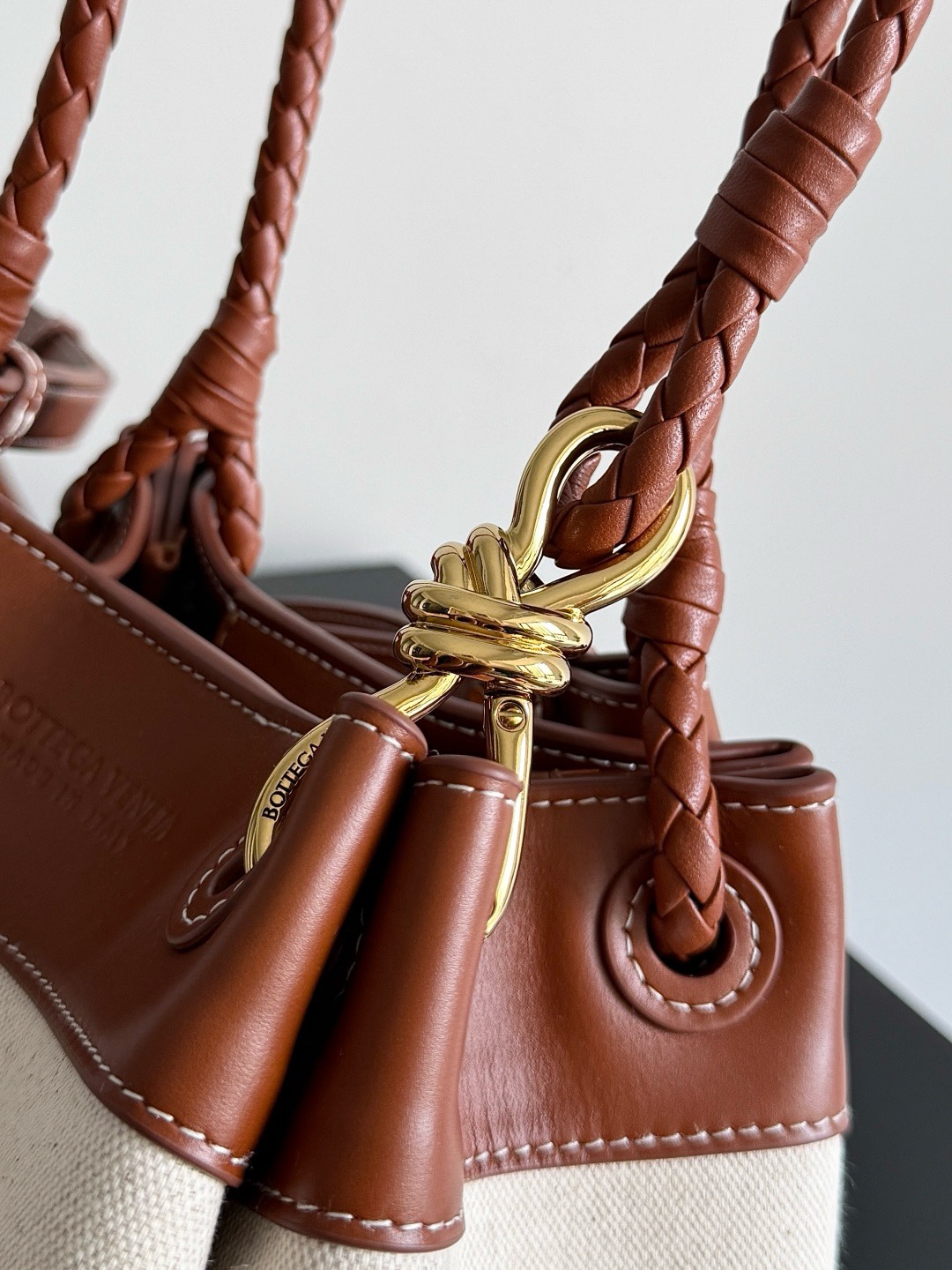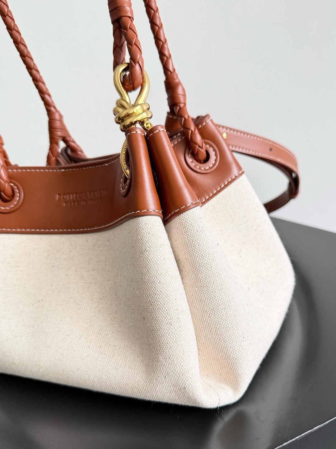 Элегантная сумка через плечо из сочетания холста и натуральной кожи с фирменным узлом и съемным плечевым ремнем. Компактная модель с одним основным отделением. Надежная магнитная застежка, подкладка выполнена из прочного холста.