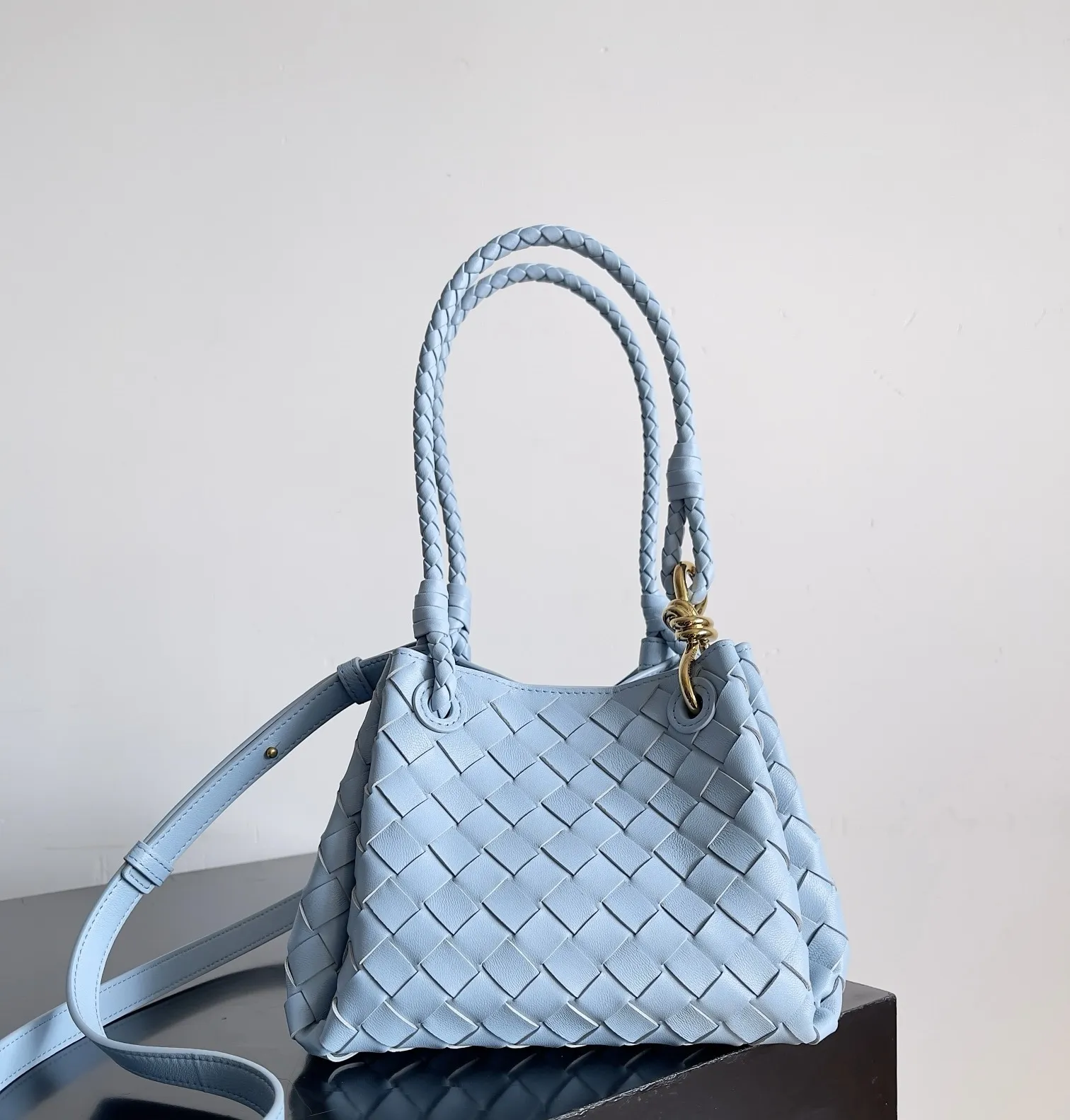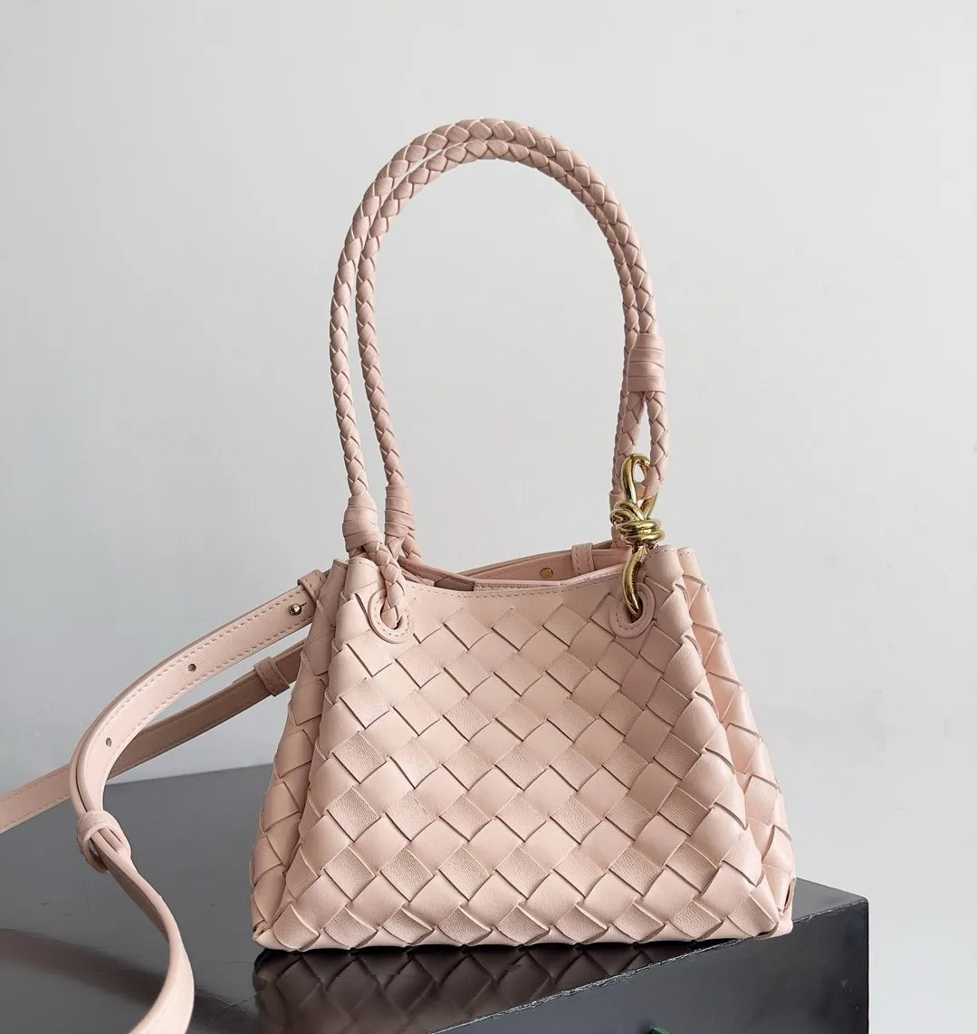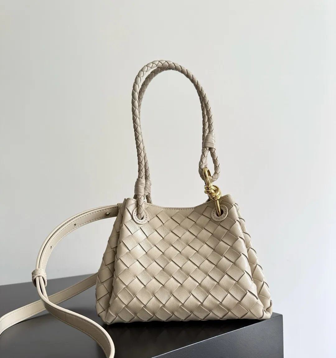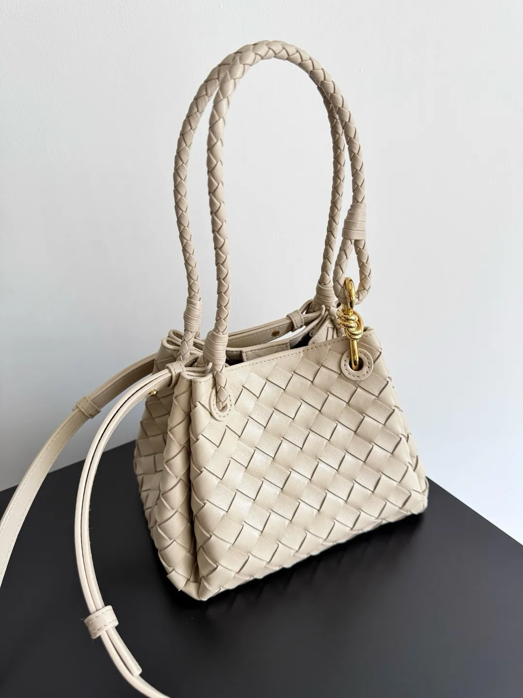 Сумка оснащена двумя плетёными ручками и съемным регулируемым плечевым ремнем, что делает её универсальной для разного стиля ношения. Просторный внутренний отсек удобно вмещает все необходимые вещи, а качественная латунная фурнитура гарантирует надёжность и долговечность изделия.