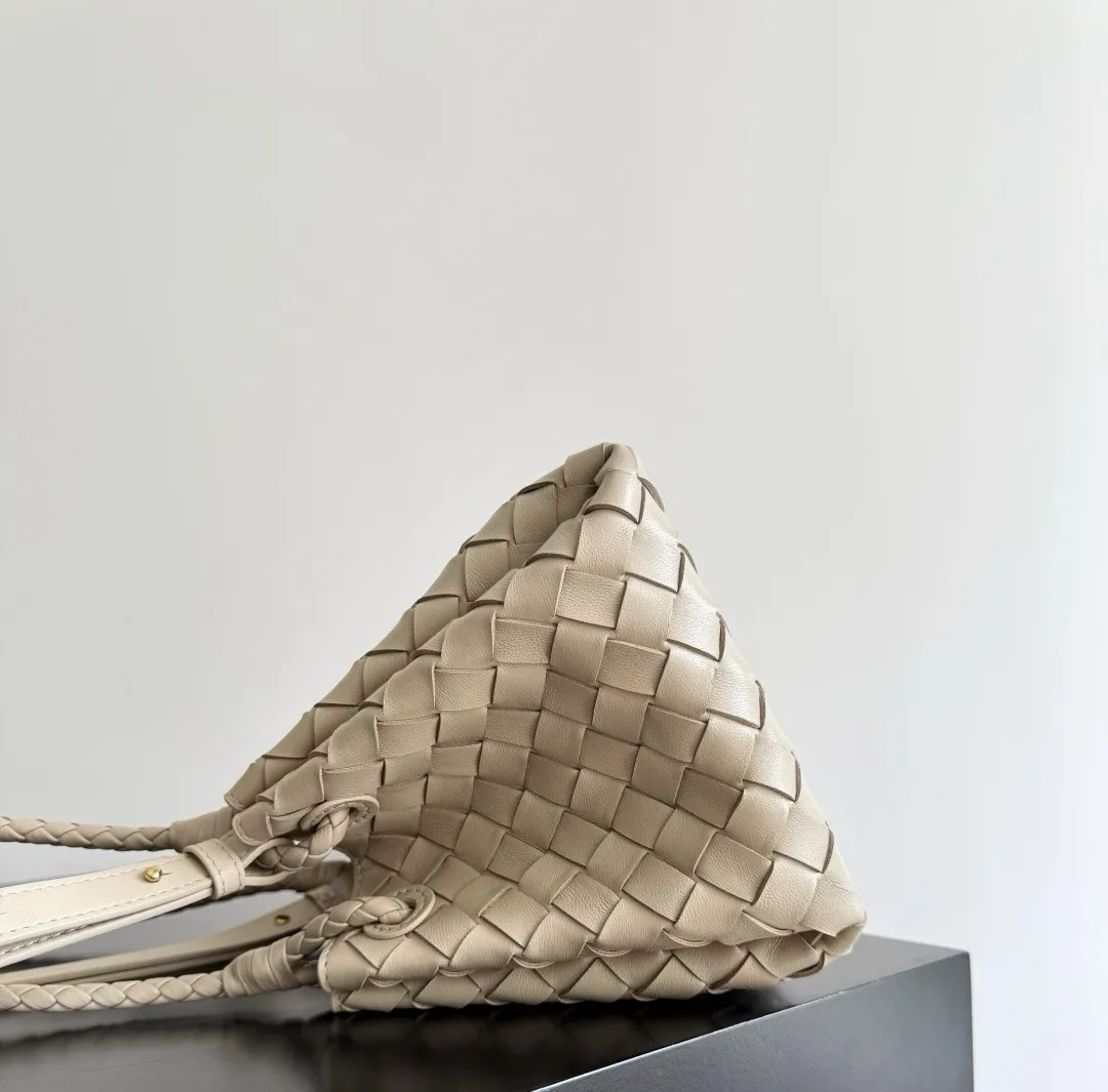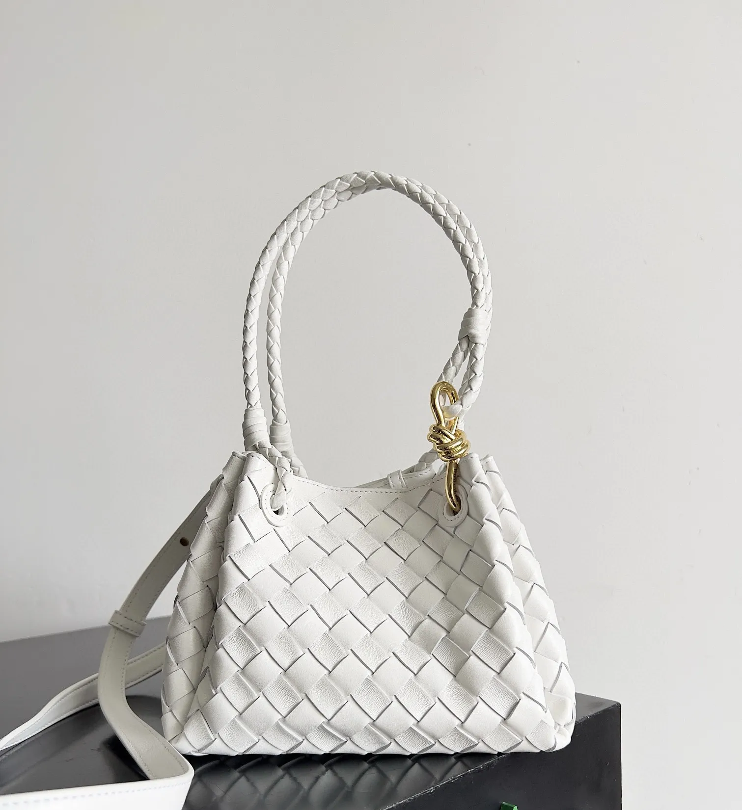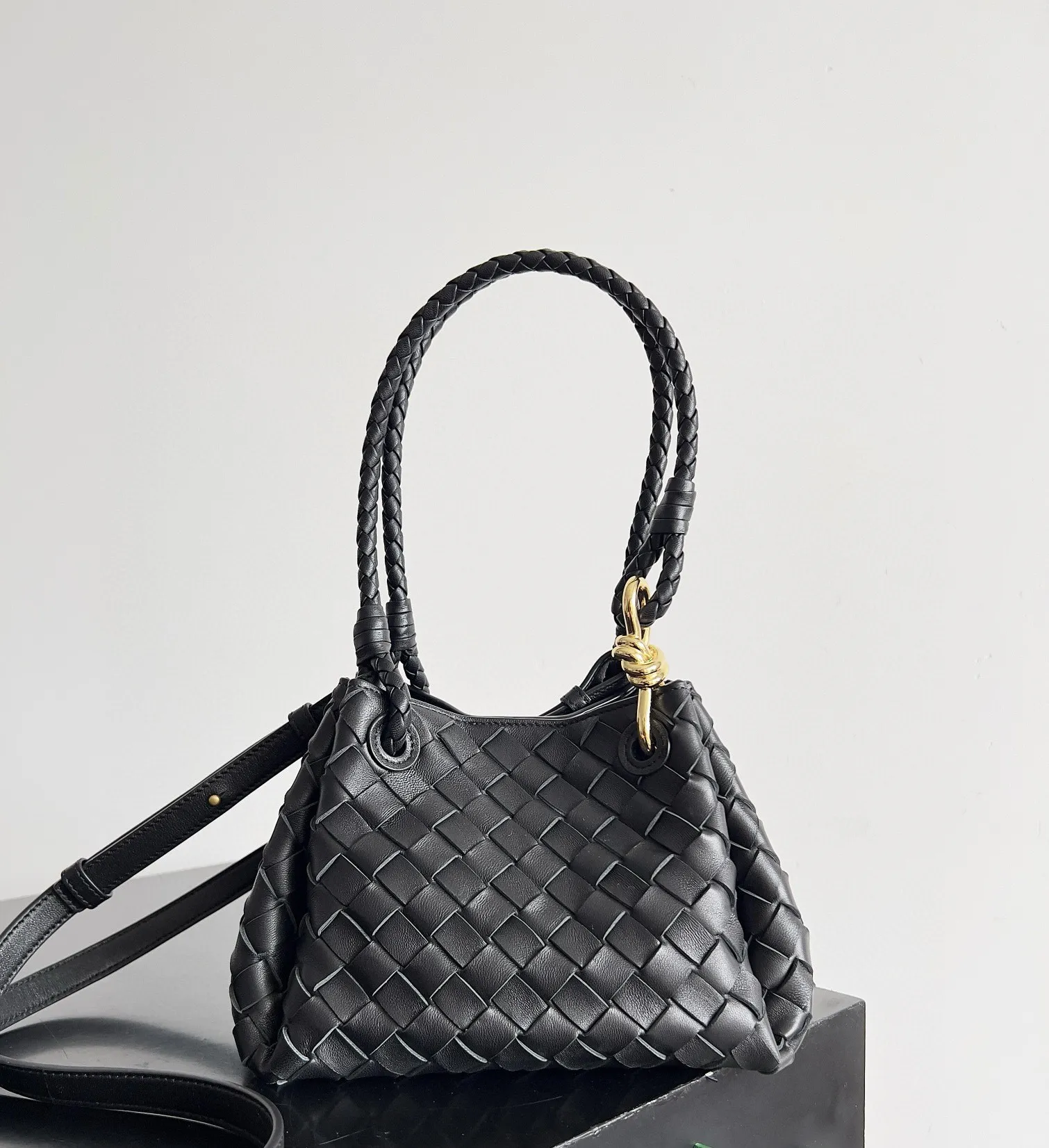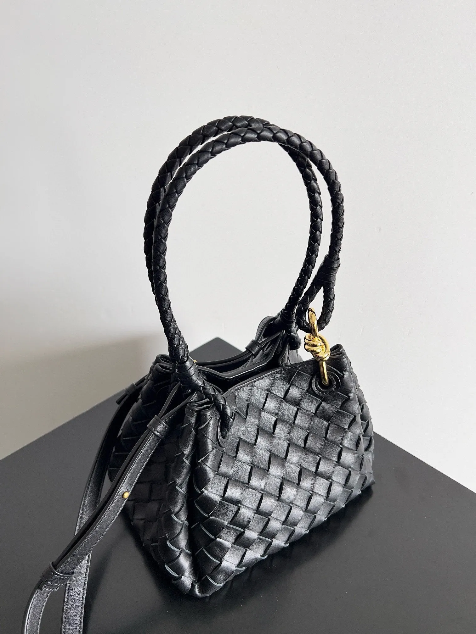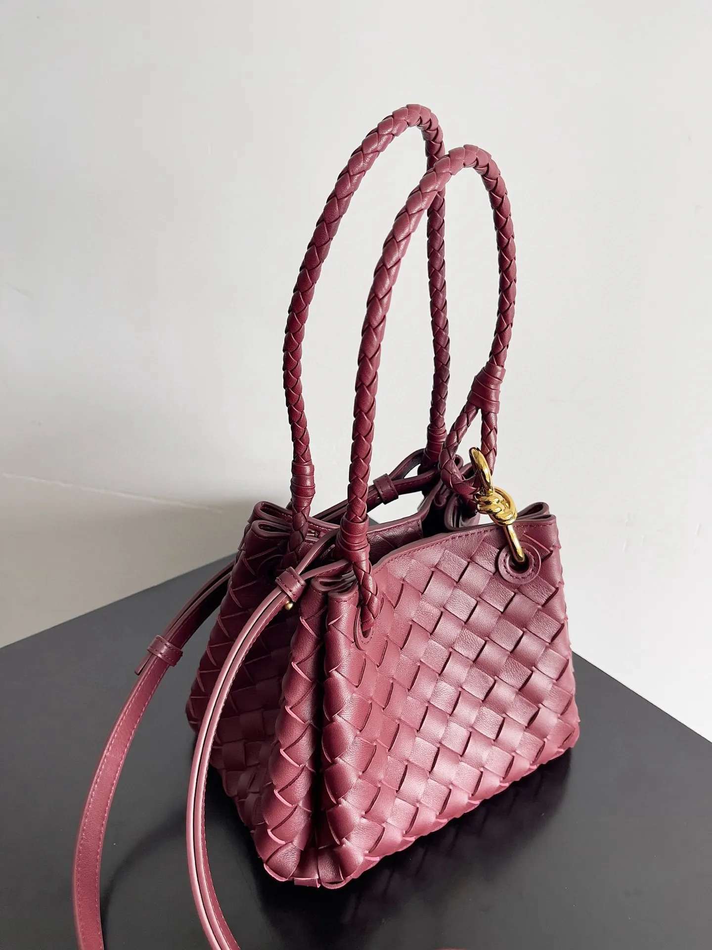Сумка оснащена двумя плетёными ручками и съемным регулируемым плечевым ремнем, что делает её универсальной для разного стиля ношения. Просторный внутренний отсек удобно вмещает все необходимые вещи, а качественная латунная фурнитура гарантирует надёжность и долговечность изделия.