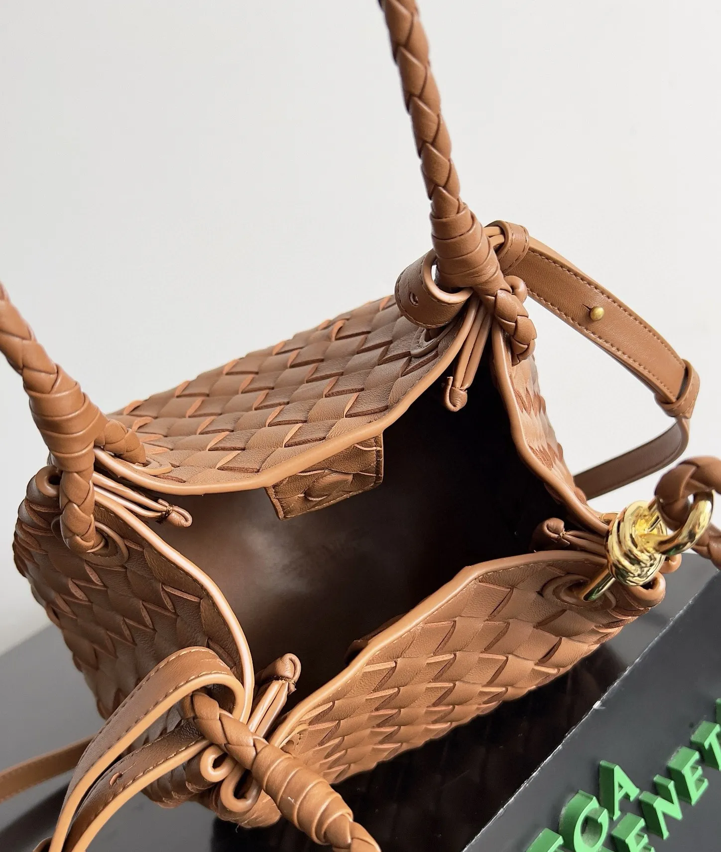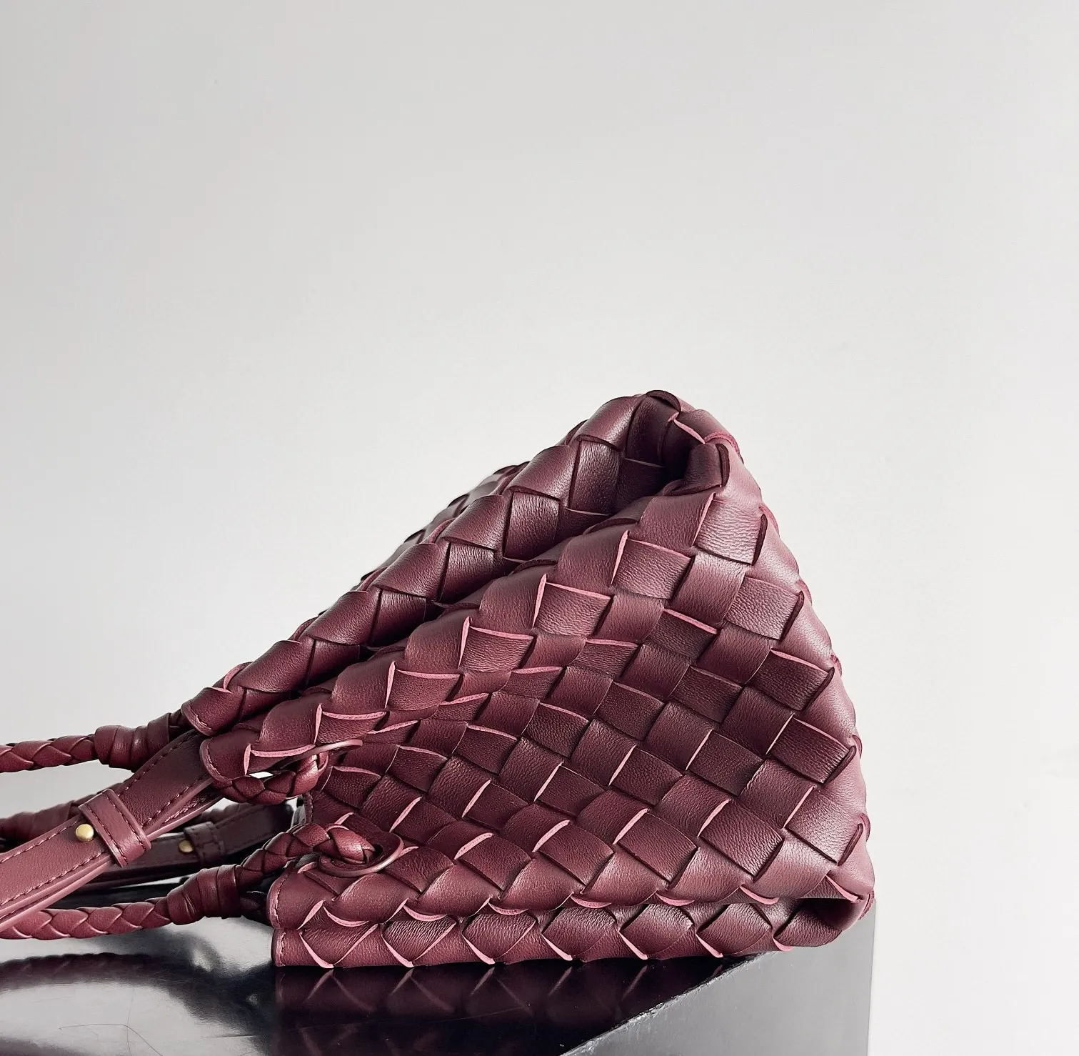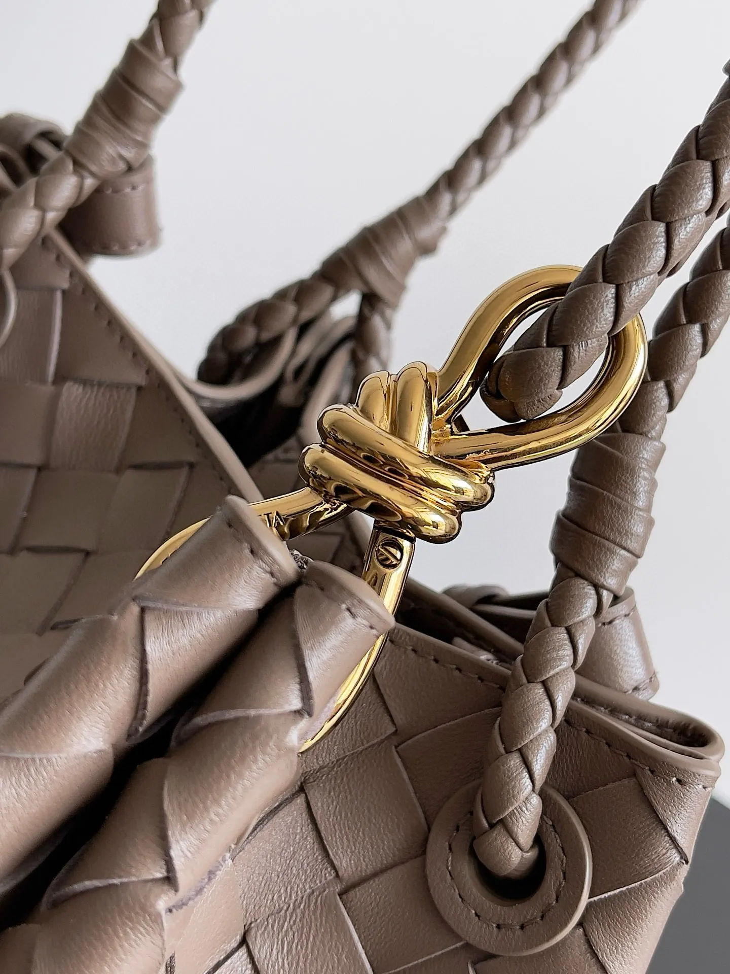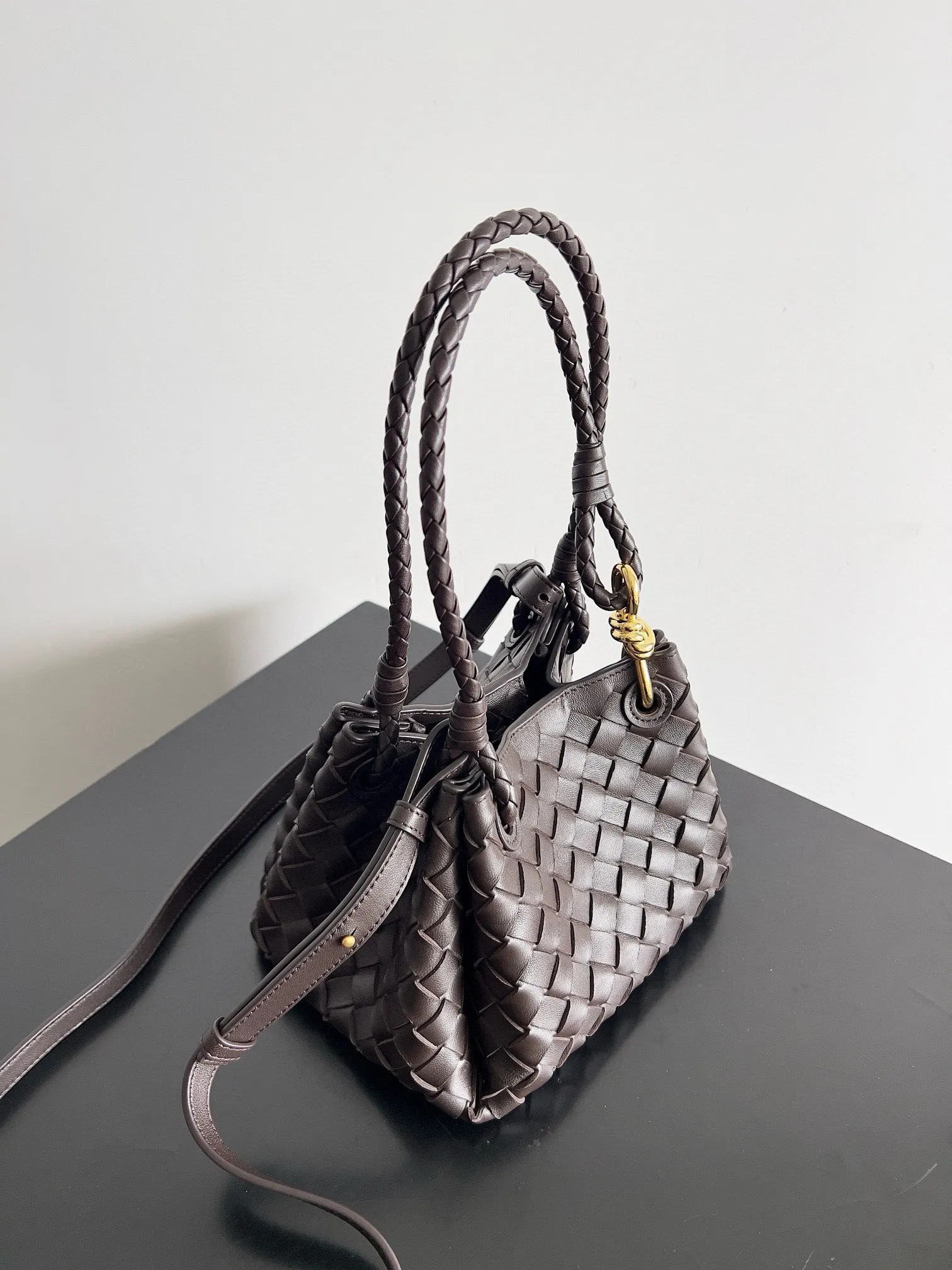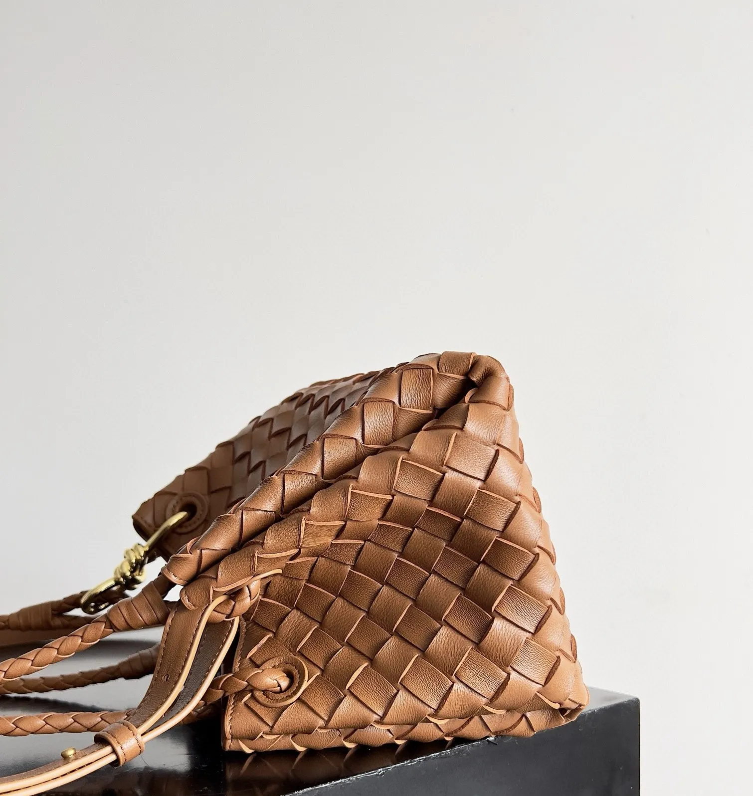 Сумка оснащена двумя плетёными ручками и съемным регулируемым плечевым ремнем, что делает её универсальной для разного стиля ношения. Просторный внутренний отсек удобно вмещает все необходимые вещи, а качественная латунная фурнитура гарантирует надёжность и долговечность изделия.