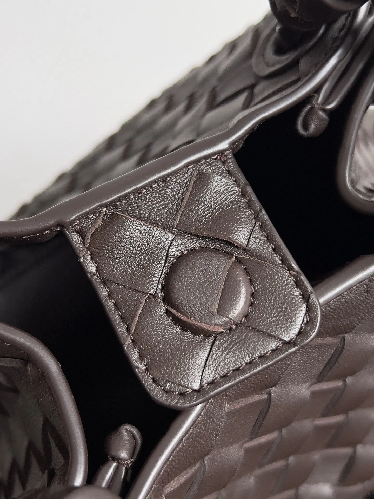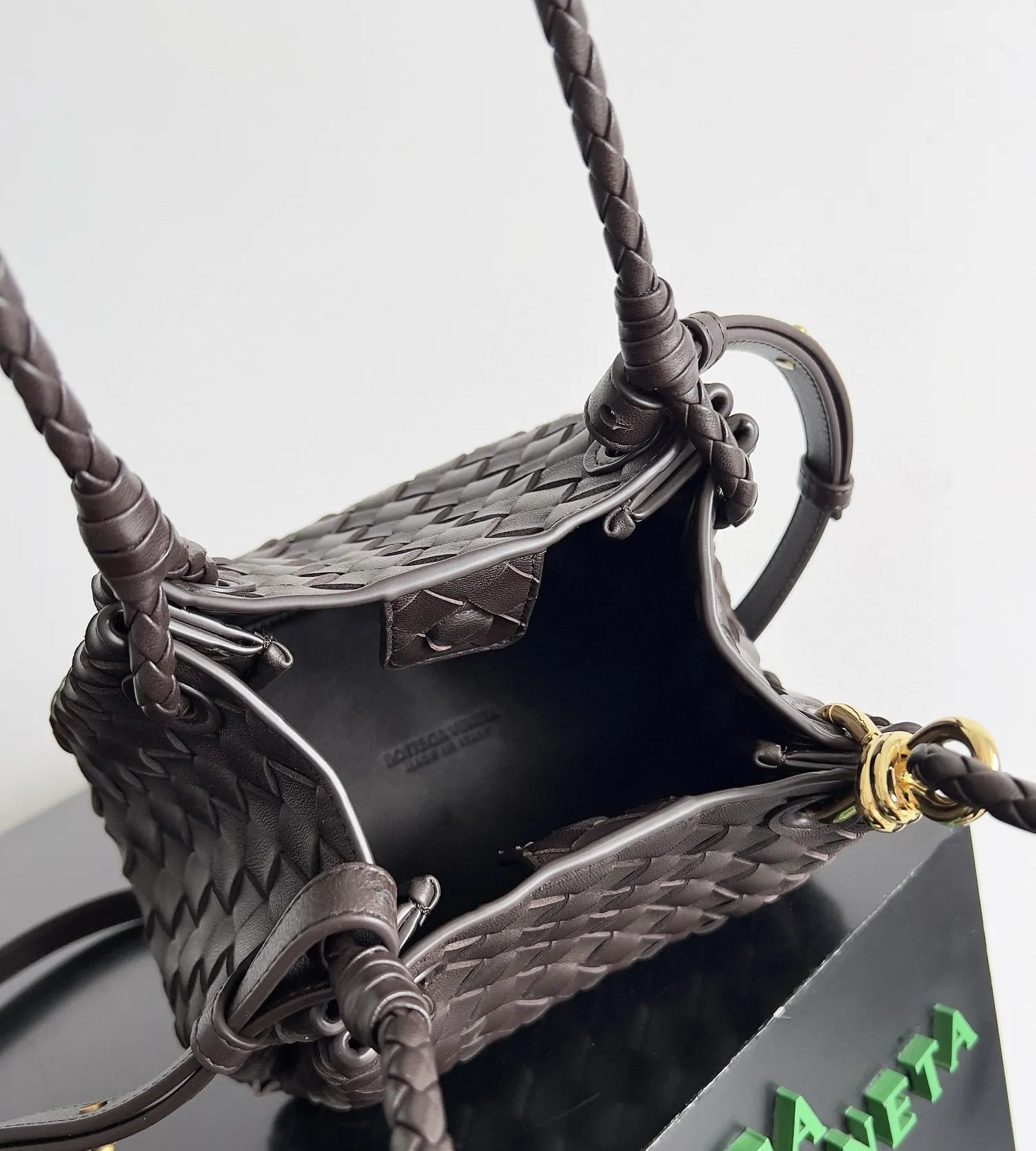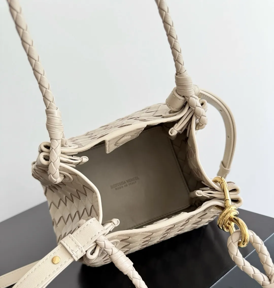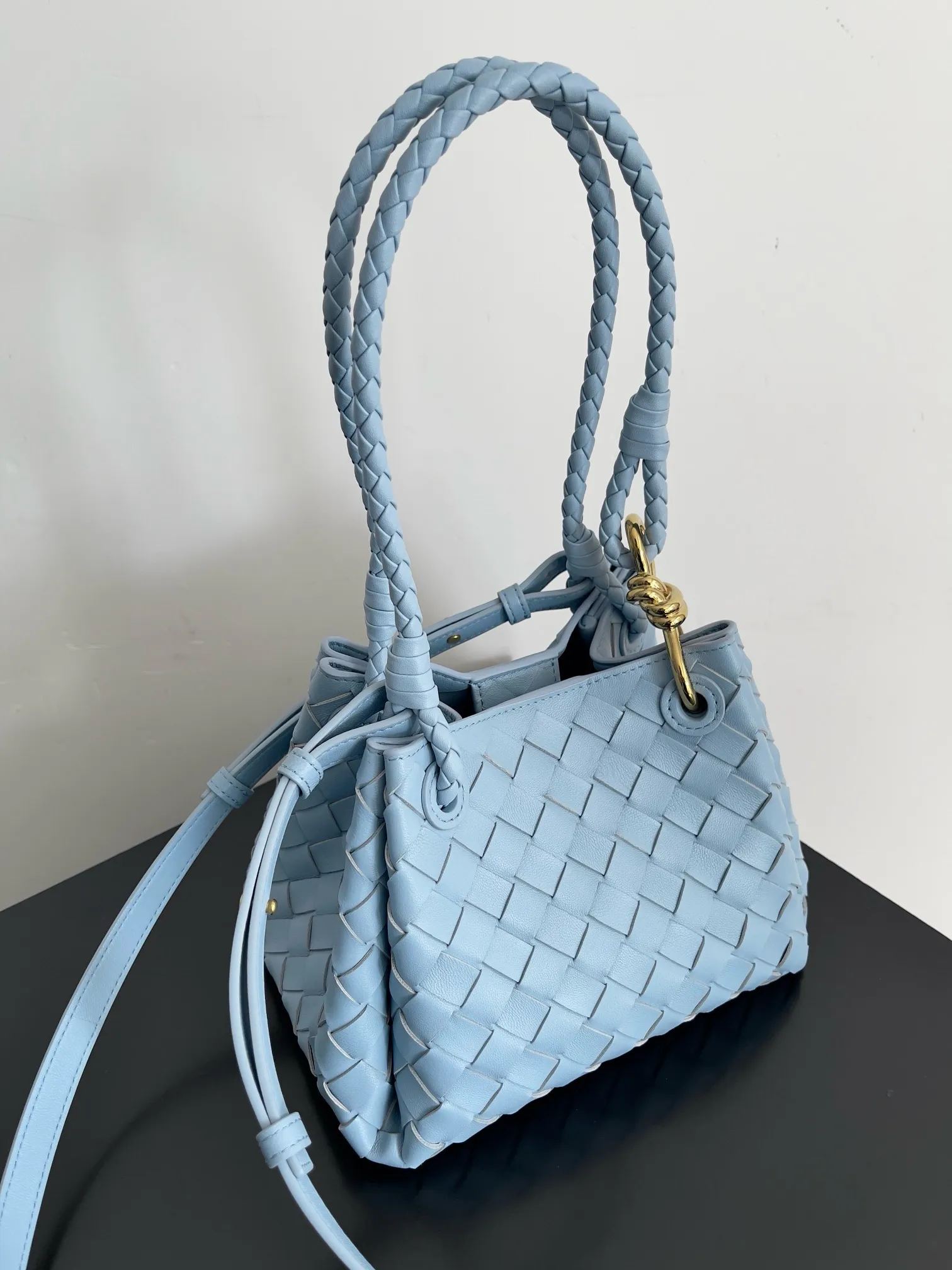 Сумка оснащена двумя плетёными ручками и съемным регулируемым плечевым ремнем, что делает её универсальной для разного стиля ношения. Просторный внутренний отсек удобно вмещает все необходимые вещи, а качественная латунная фурнитура гарантирует надёжность и долговечность изделия.