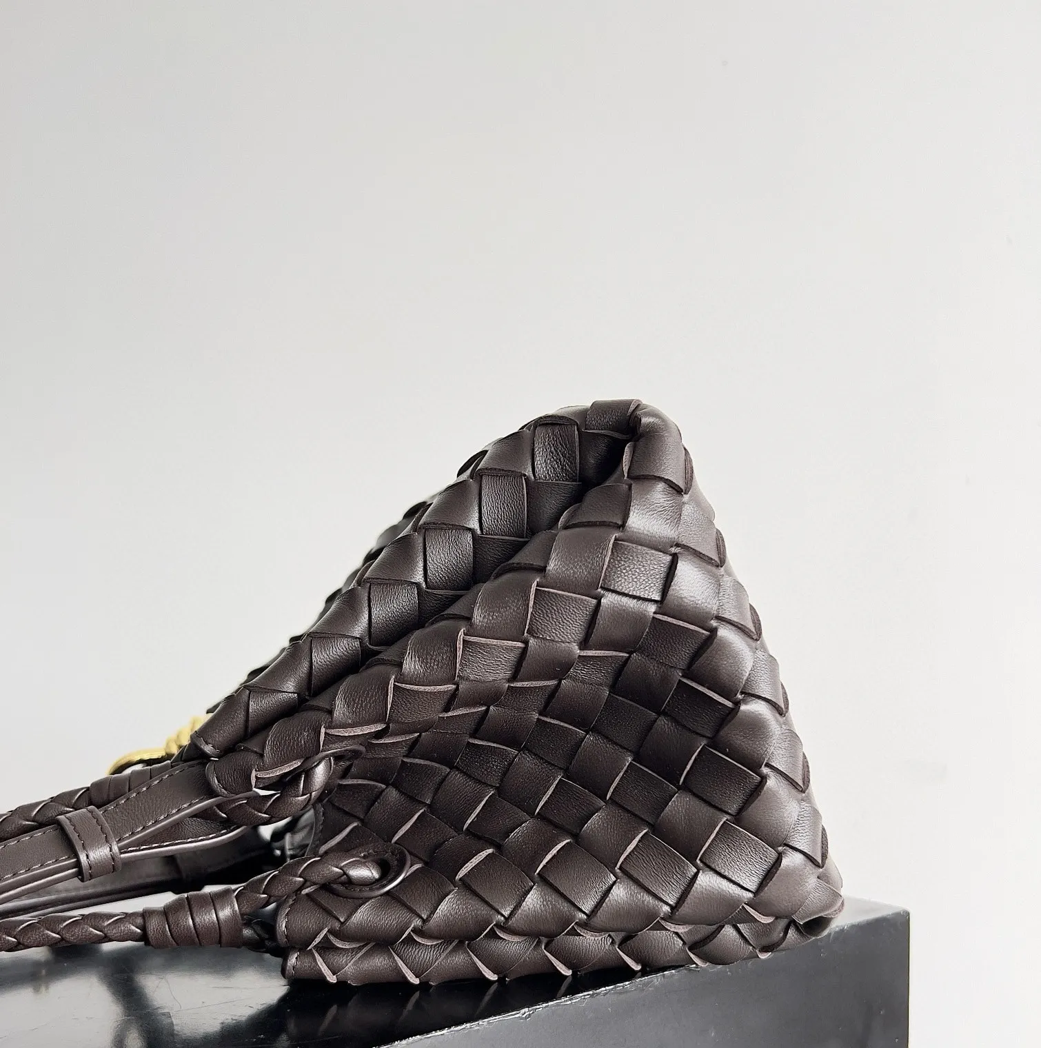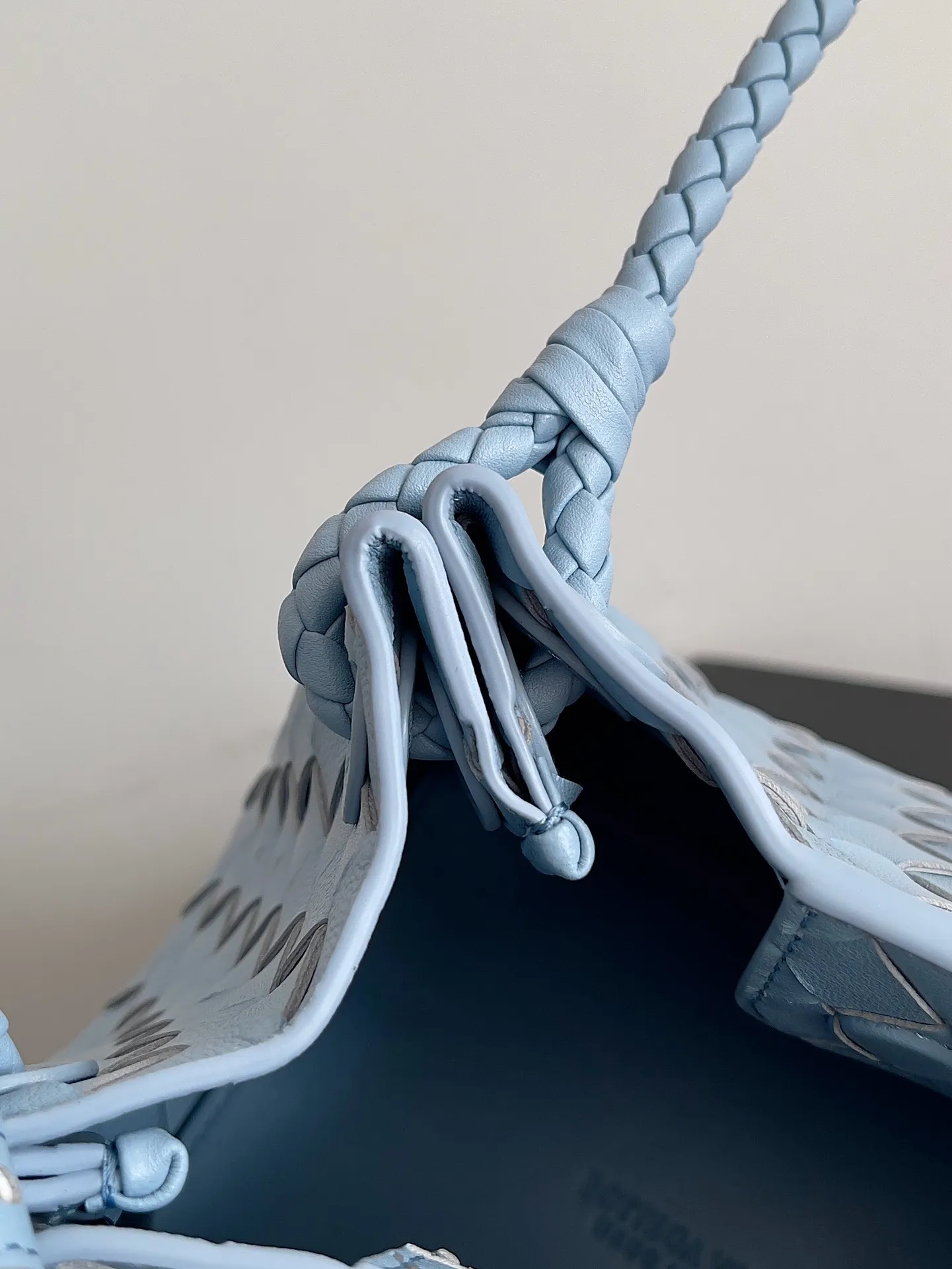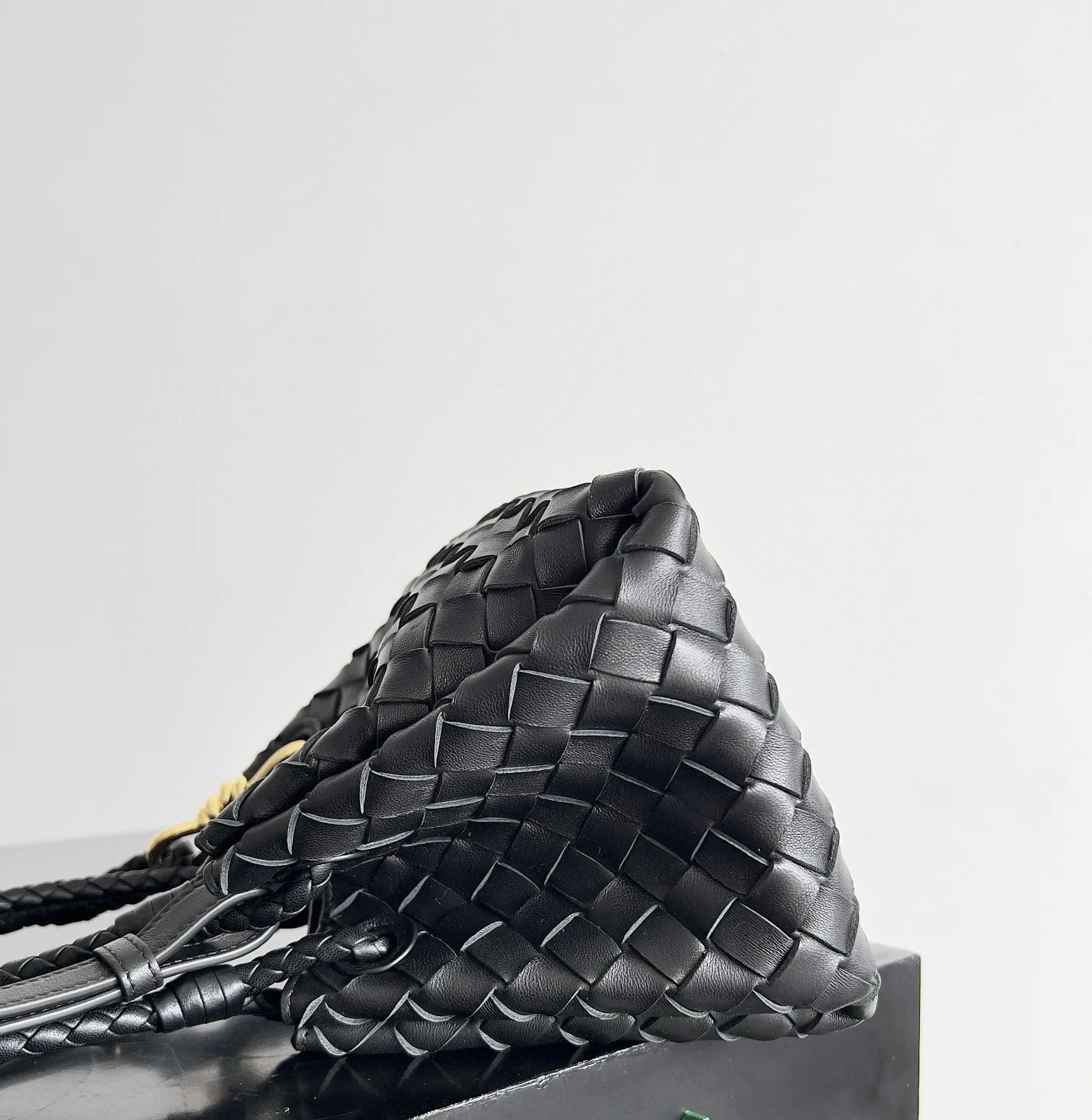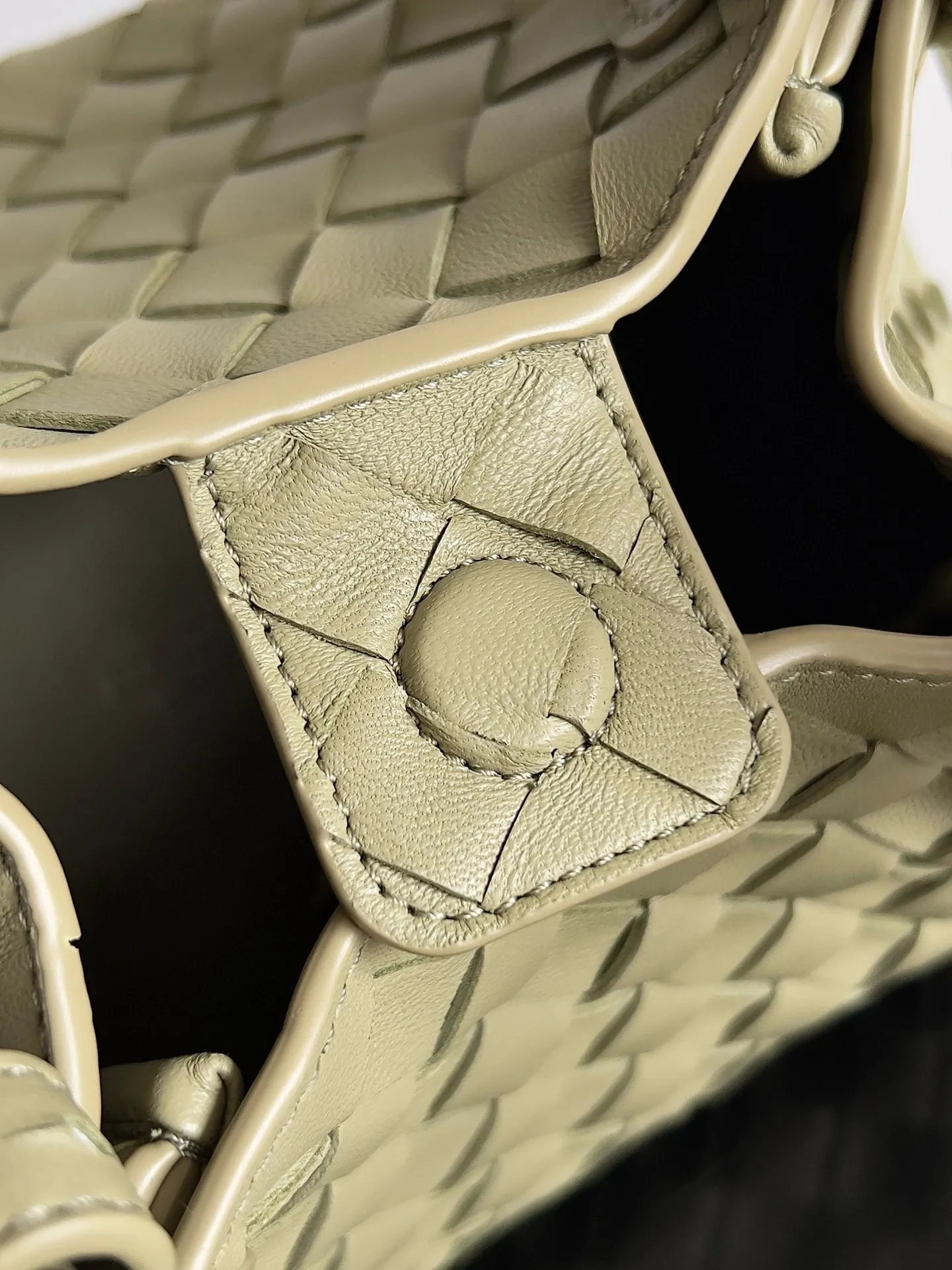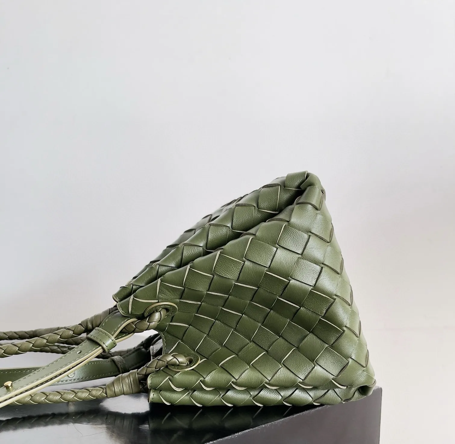 Сумка оснащена двумя плетёными ручками и съемным регулируемым плечевым ремнем, что делает её универсальной для разного стиля ношения. Просторный внутренний отсек удобно вмещает все необходимые вещи, а качественная латунная фурнитура гарантирует надёжность и долговечность изделия.
