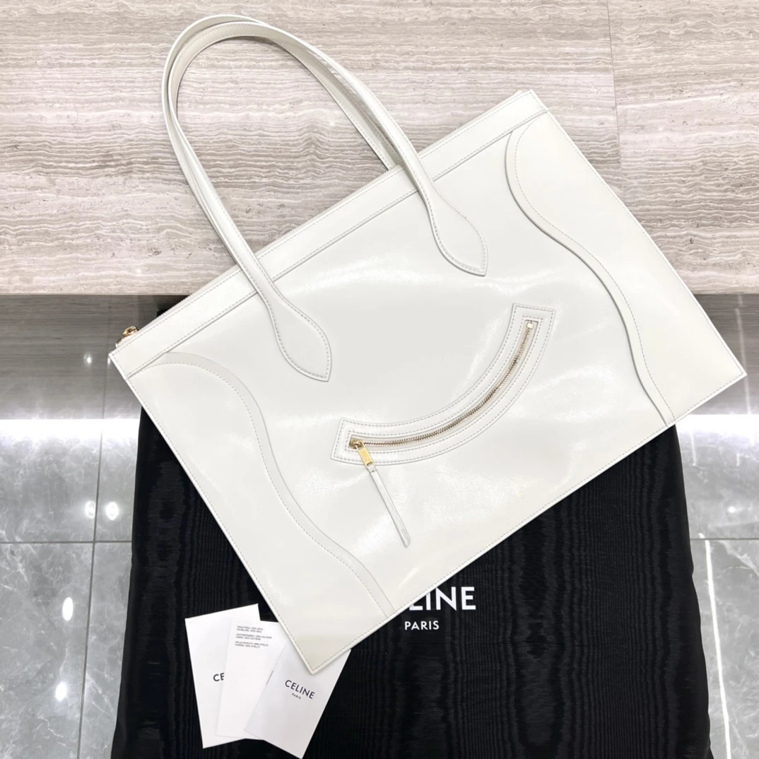 Элегантная сумка‑тоут CELINE Luggage выполнена из мягкой гладкой кожи. Лаконичный, структурированный силуэт с фирменной «улыбкой»‑карманом на молнии идеально подходит для ежедневного образа и деловых комбиниций.