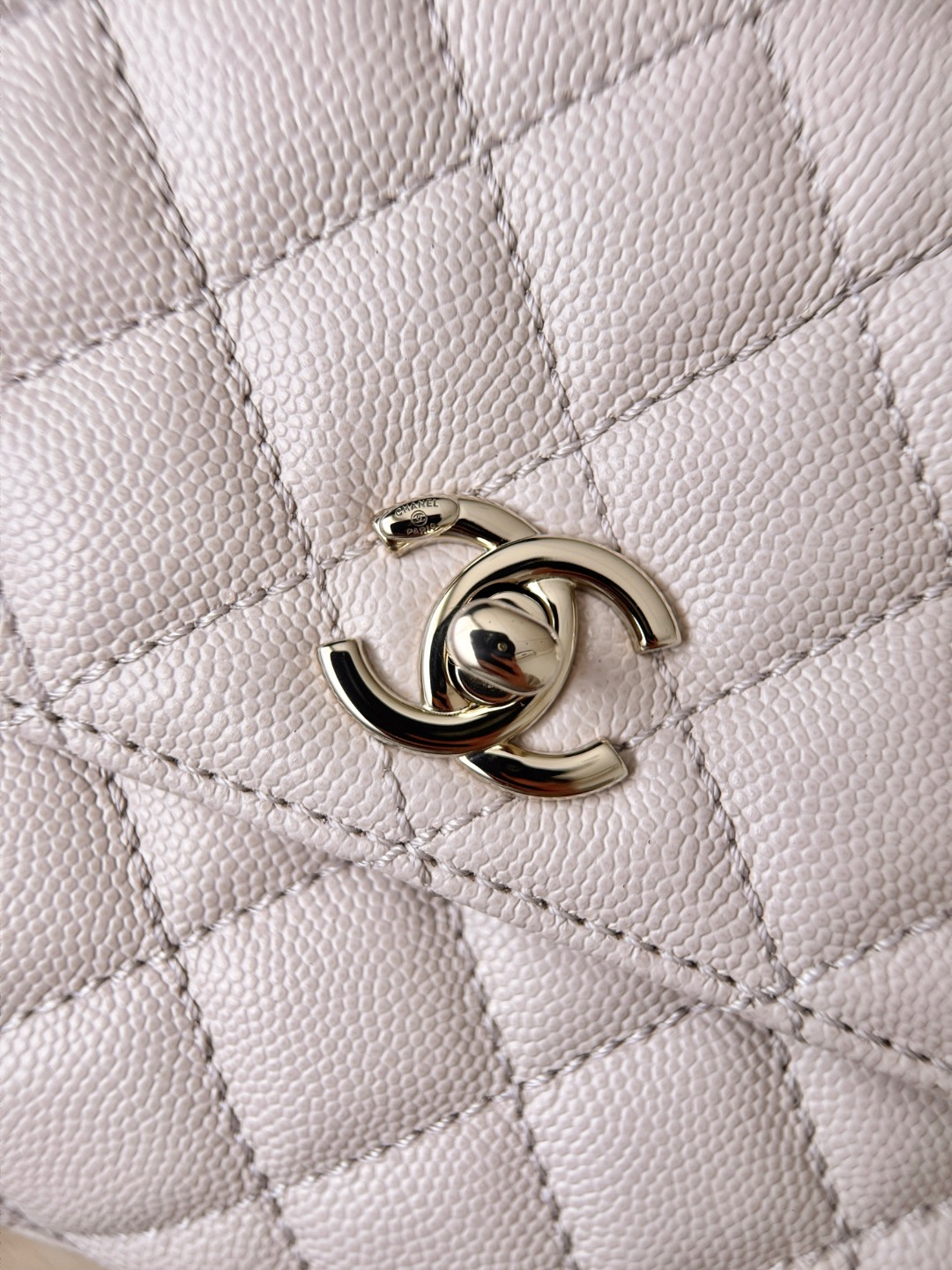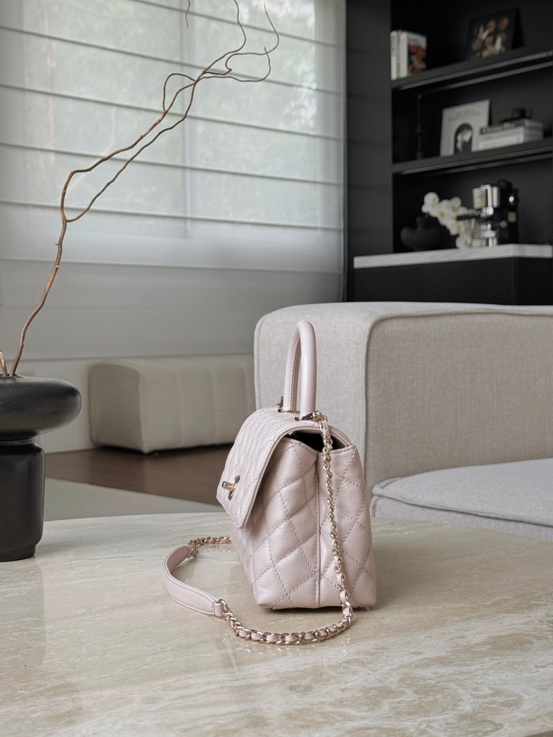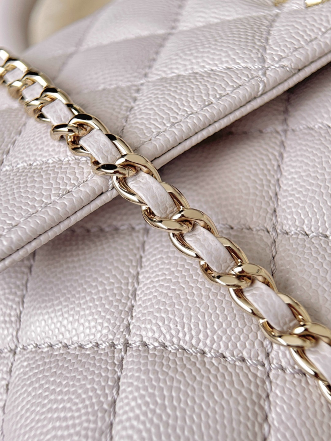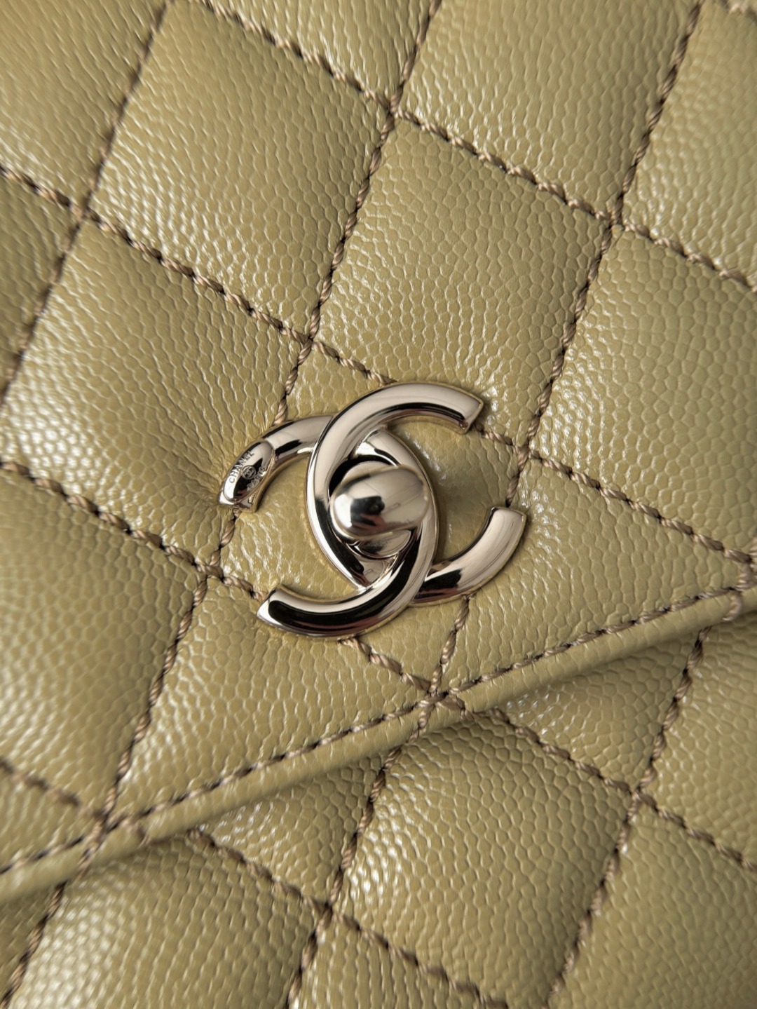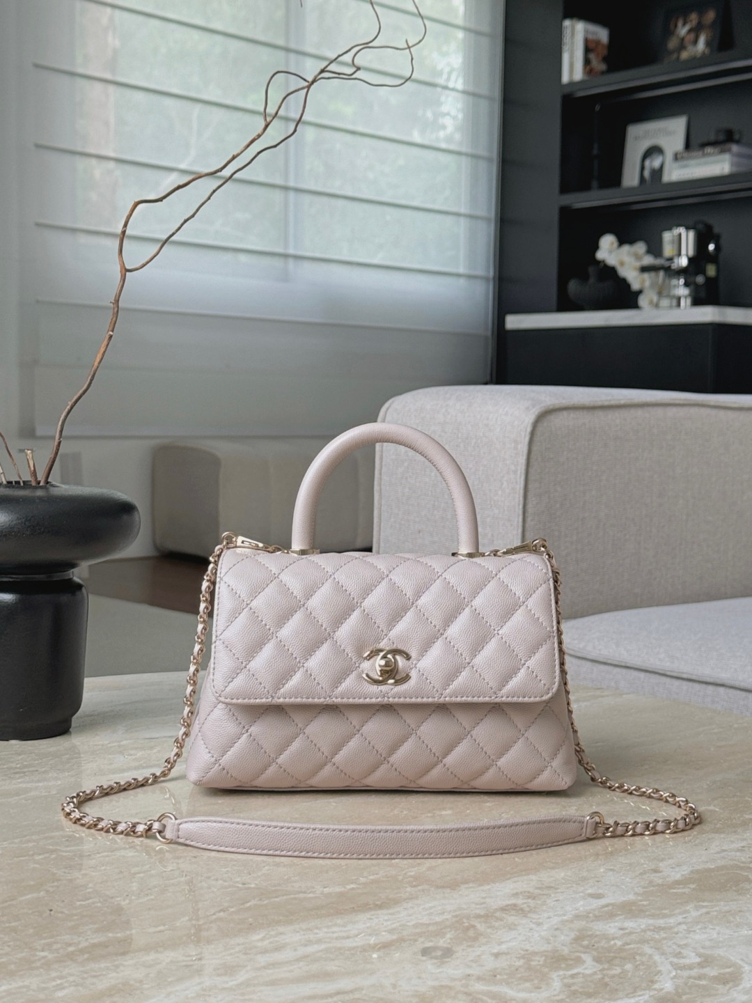 Сумка Chanel Coco Handle из зернистой телячьей кожи с витой ручкой— современный аксессуар, который отражает новаторский подход модного дома Chanel к дизайну. Эта модель сочетает в себе непринуждённую элегантность и практичность, что делает её идеальным выбором для тех, кто ценит комфорт и роскошь в одном изделии.