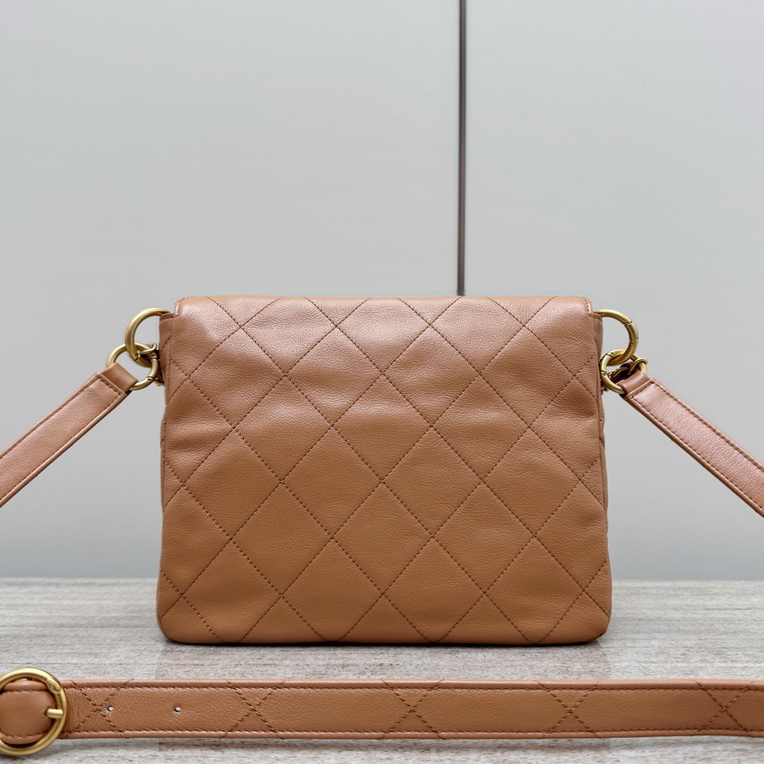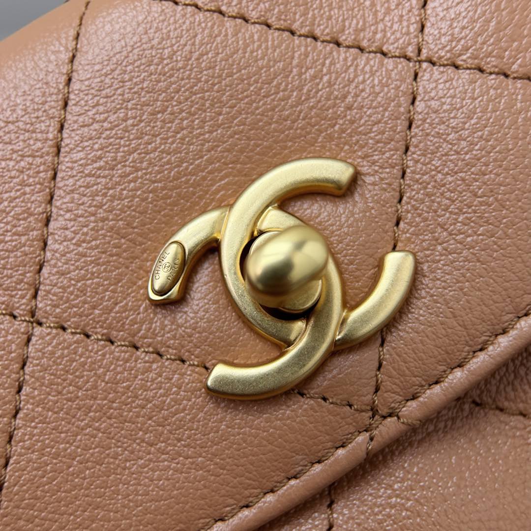 Сумка имеет два функциональных фронтальных кармана на кнопках, а также основное отделение с клапаном и культовой золотистой эмблемой CC. Удобная ручка-цепочка с кожаной вставкой позволяет носить аксессуар как на плече, так и в руке.
