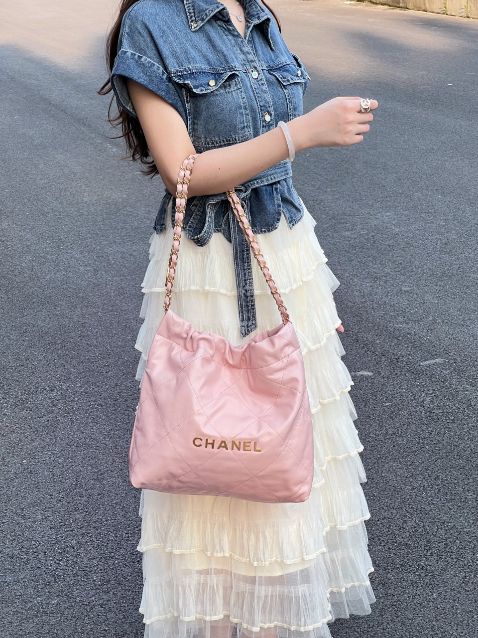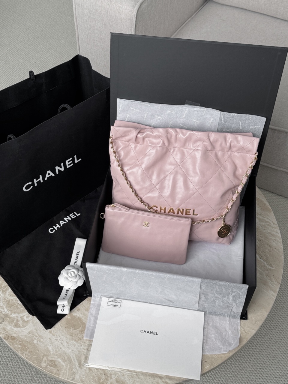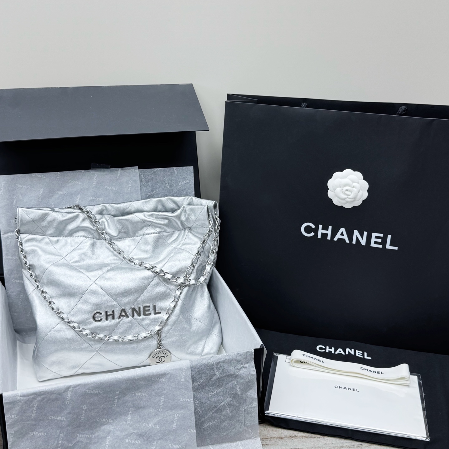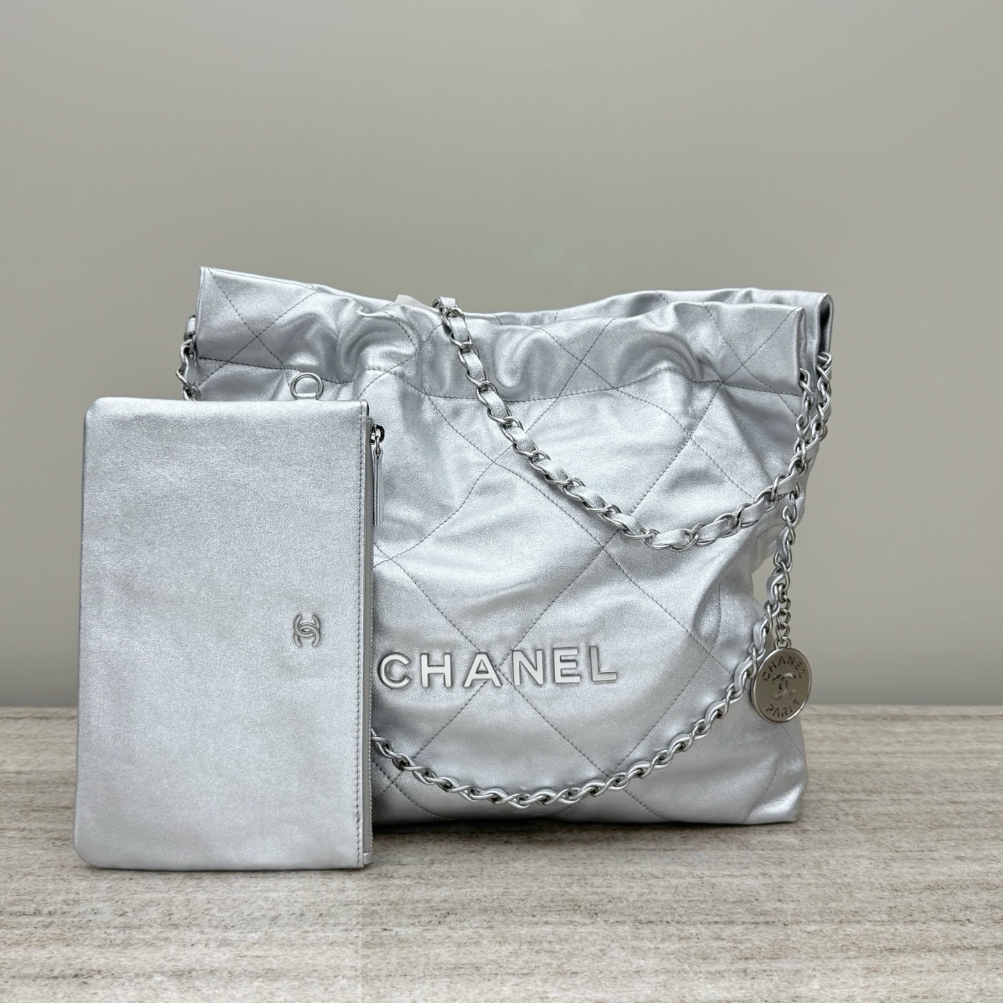 Сумка Chanel 22 из гладкой металлизированной кожи — стильный и современный аксессуар, который отражает новаторский подход модного дома Chanel к дизайну. Эта модель сочетает в себе непринуждённую элегантность и практичность, что делает её идеальным выбором для тех, кто ценит комфорт и роскошь в одном изделии.