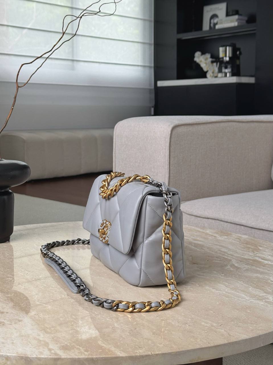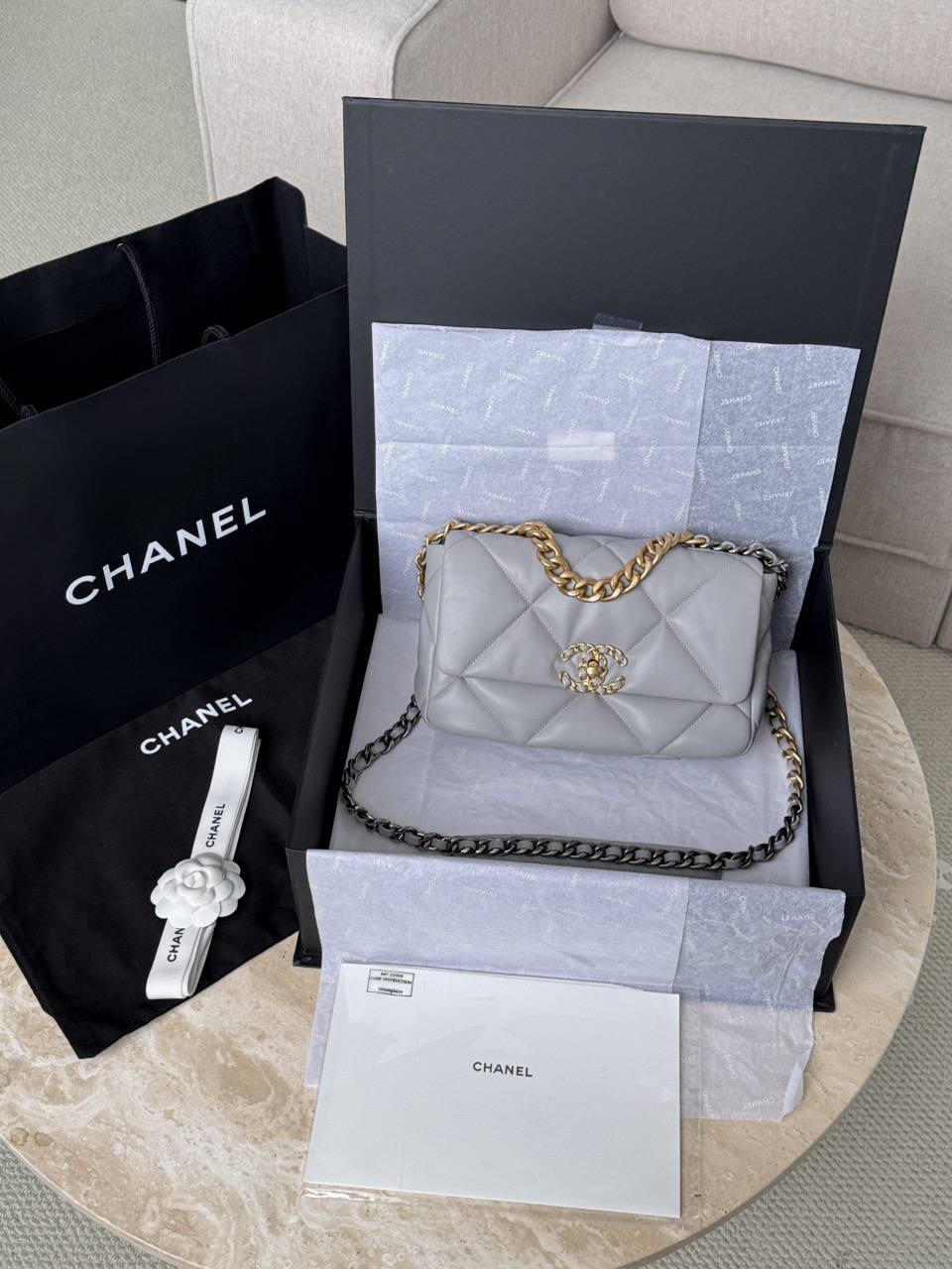 Элегантная сумка CHANEL 19 в нежно‑сером оттенке — современная интерпретация классики дома моды. Мягкий, слегка объёмный силуэт с крупной ромбовидной стёжкой, выразительной смешанной фурнитурой и несколькими способами ношения делает эту модель универсальным аксессуаром от дневного образа до вечернего.