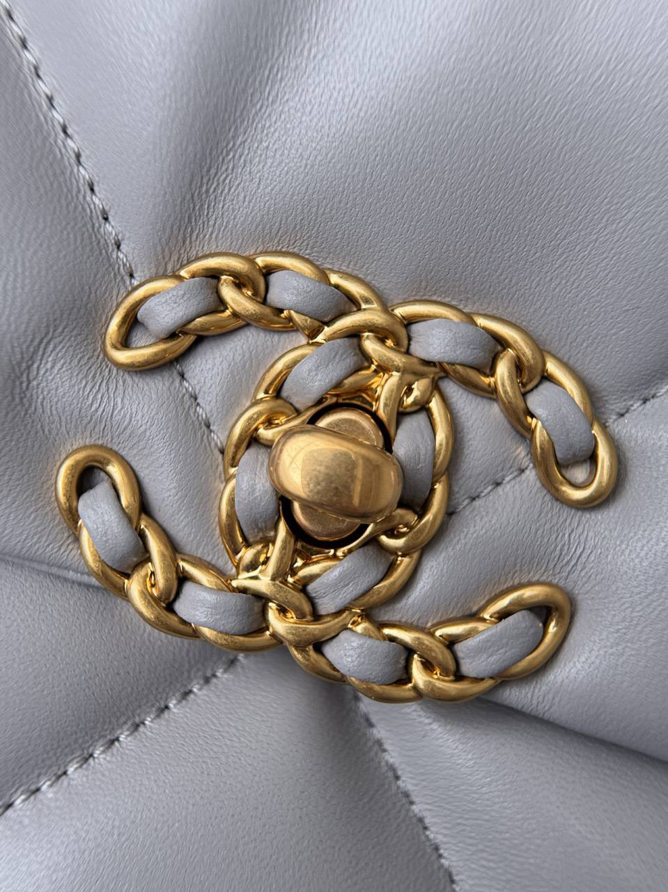 • Дизайн: прямоугольный, мягко структурированный корпус с характерной для модели CHANEL 19 объёмной ромбовидной стёжкой. Лаконичный фасад подчёркнут фалдой‑клапаном и узнаваемой металлической деталью логотипа "CC".