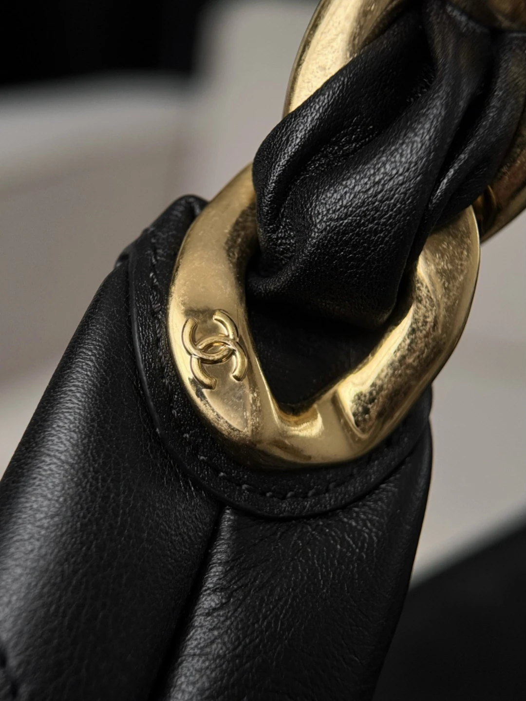 • Фурнитура: золочёный/тёплый золотистый тон, элегантное состаренное покрытие, гармонирующее с черной кожей.