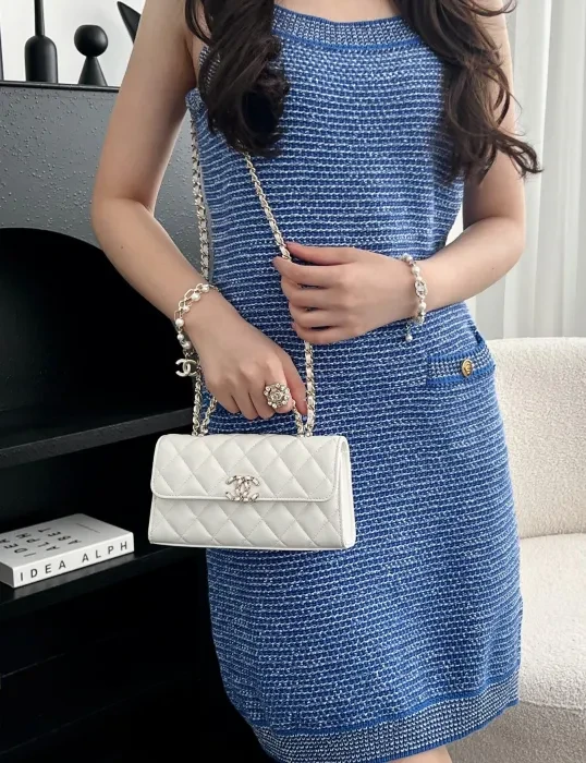 Эффектная цепочка с кожаной отделкой служит как ручкой, так и длинным ремнём, что позволяет носить сумку в руке или на плече. Фронтальная часть украшена знаковым металлическим логотипом СС, подчеркивающим статус и изысканный вкус обладательницы.