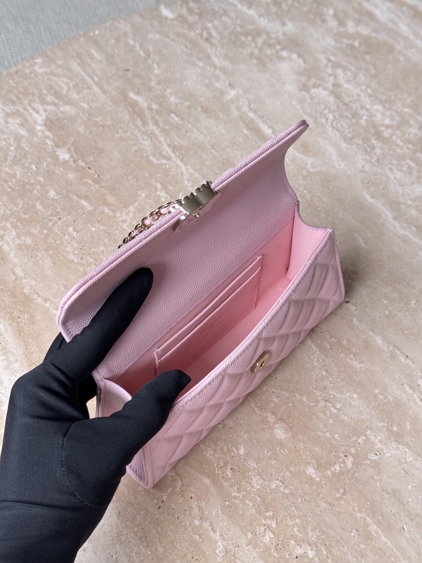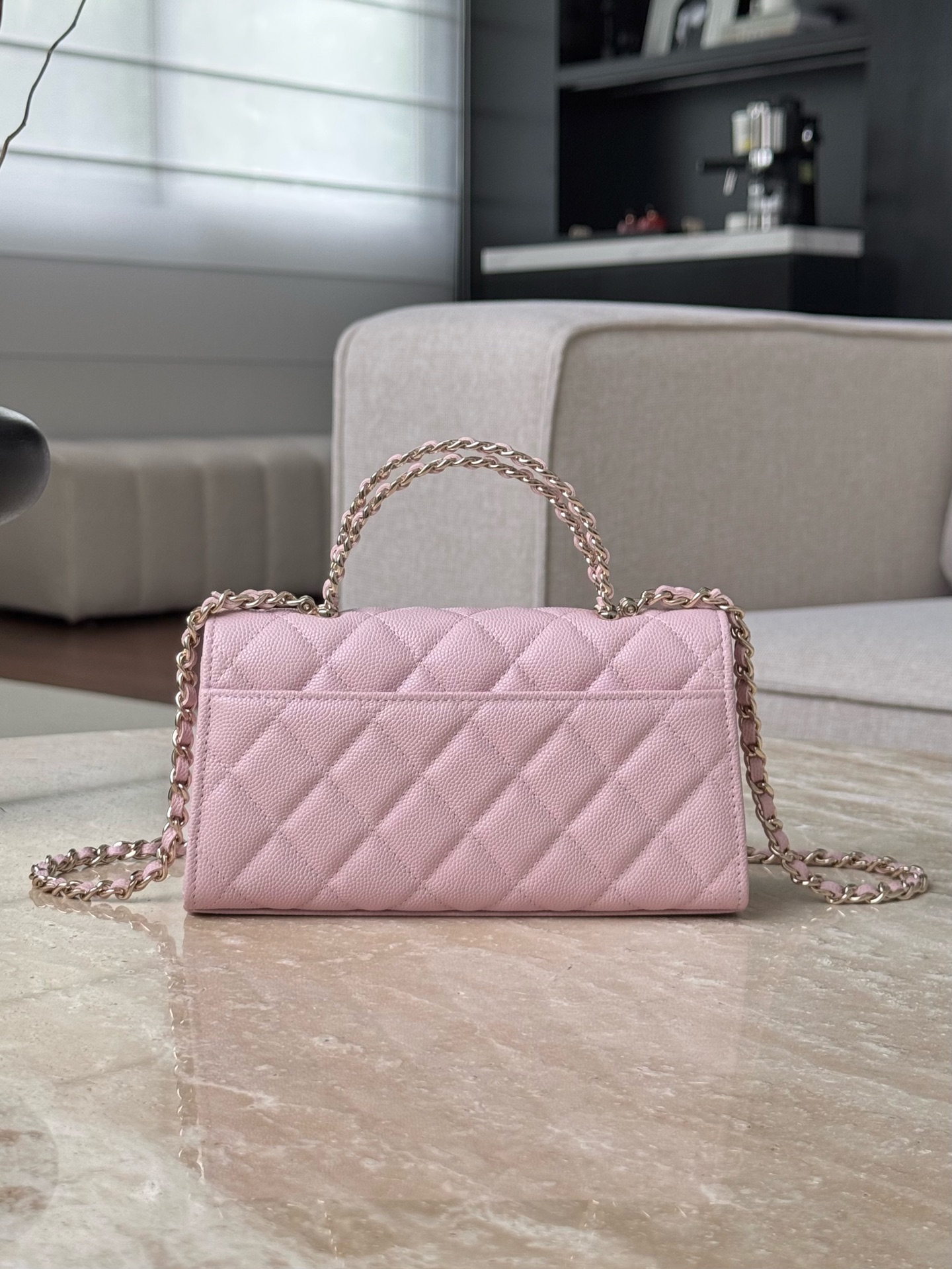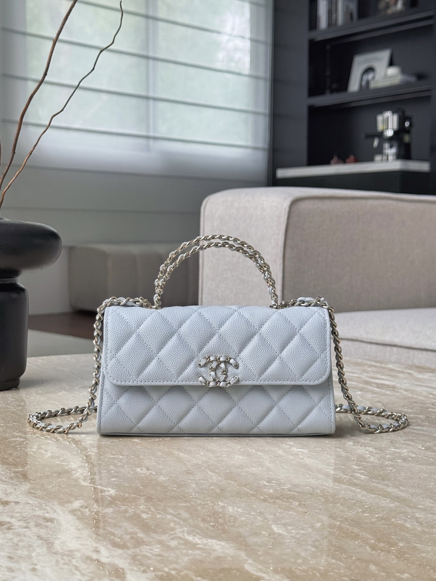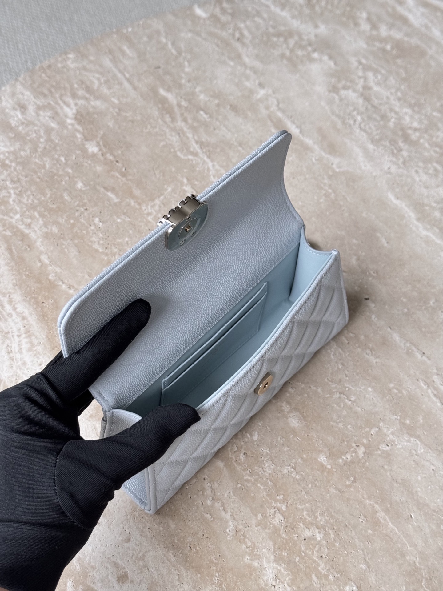 Эффектная цепочка с кожаной отделкой служит как ручкой, так и длинным ремнём, что позволяет носить сумку в руке или на плече. Фронтальная часть украшена знаковым металлическим логотипом СС, подчеркивающим статус и изысканный вкус обладательницы.