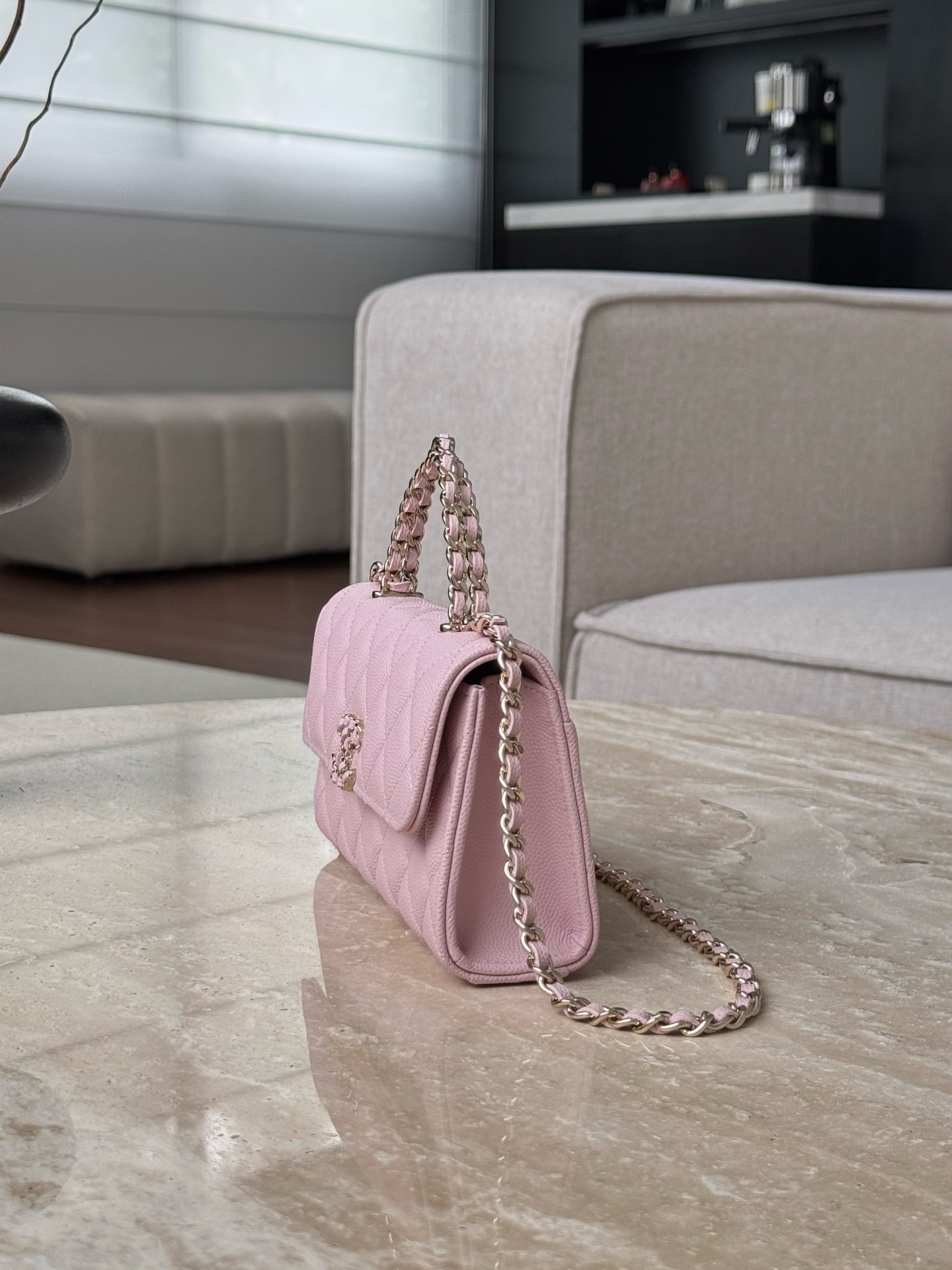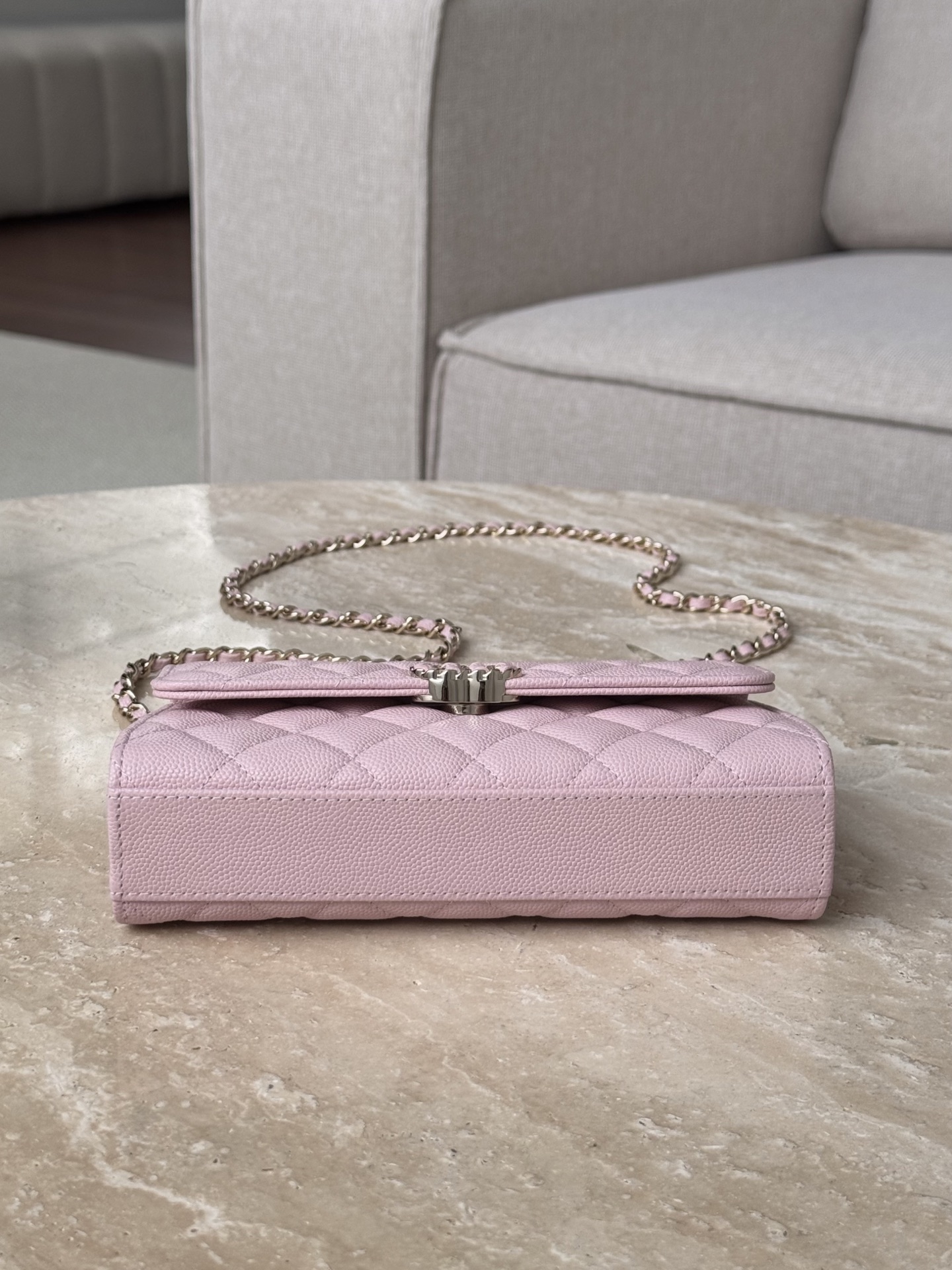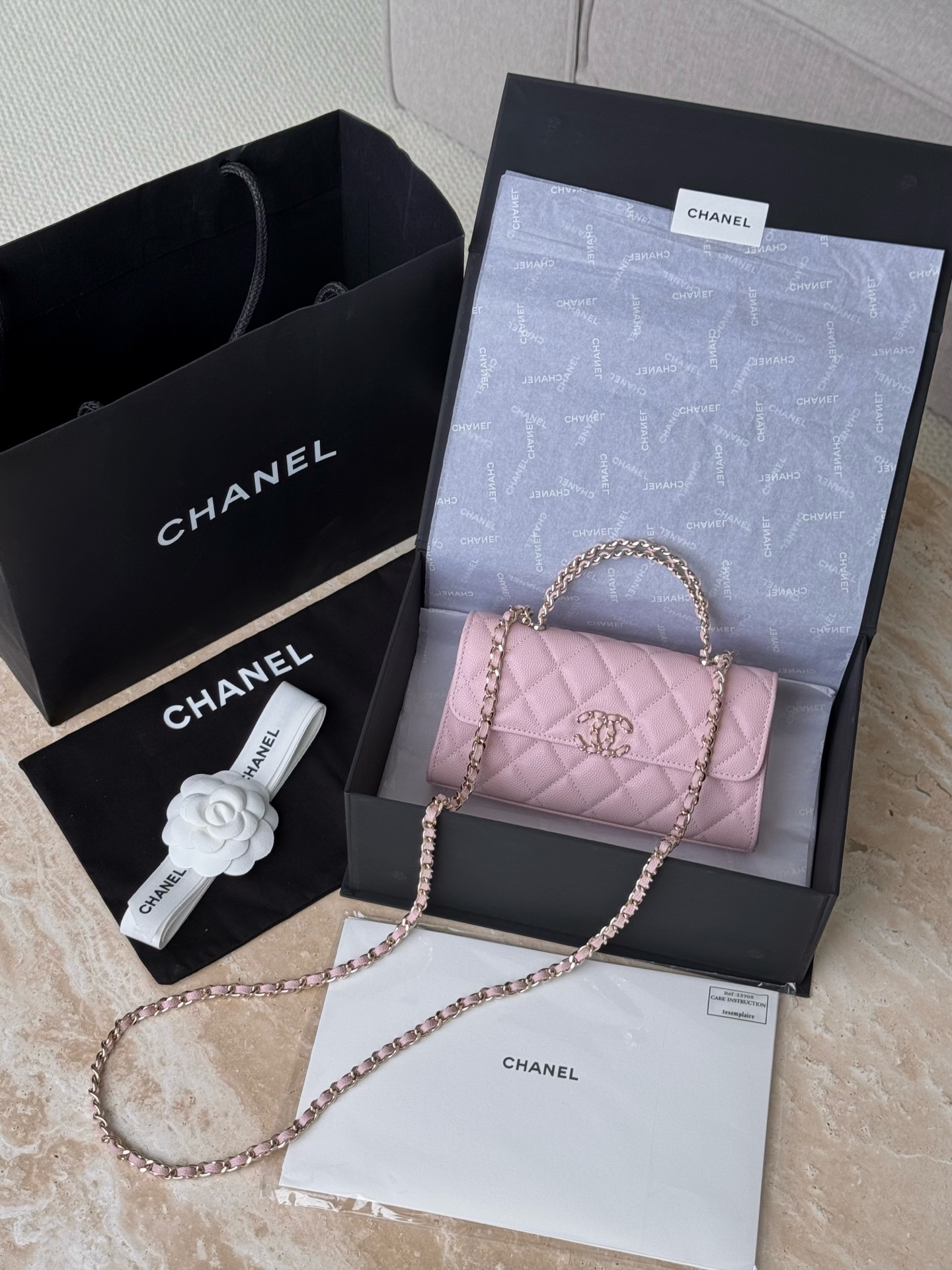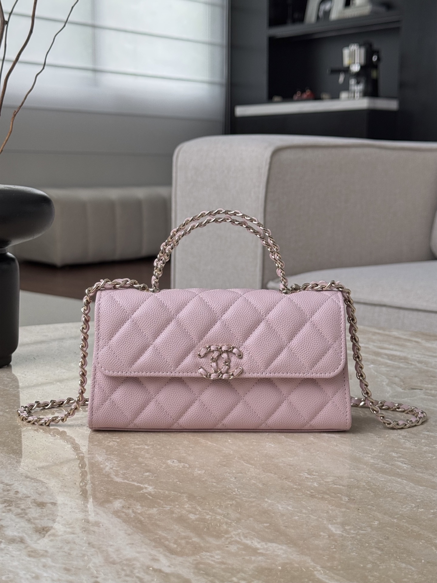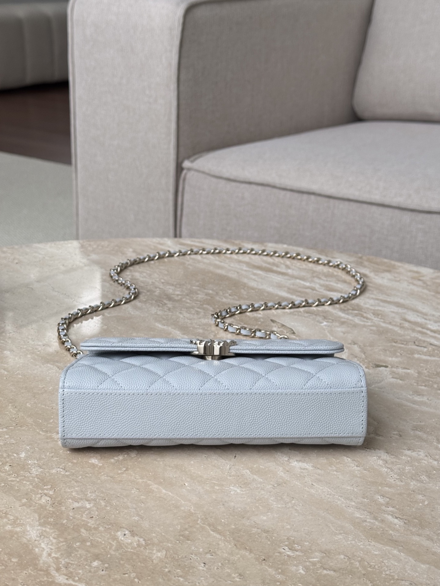 Эффектная цепочка с кожаной отделкой служит как ручкой, так и длинным ремнём, что позволяет носить сумку в руке или на плече. Фронтальная часть украшена знаковым металлическим логотипом СС, подчеркивающим статус и изысканный вкус обладательницы.