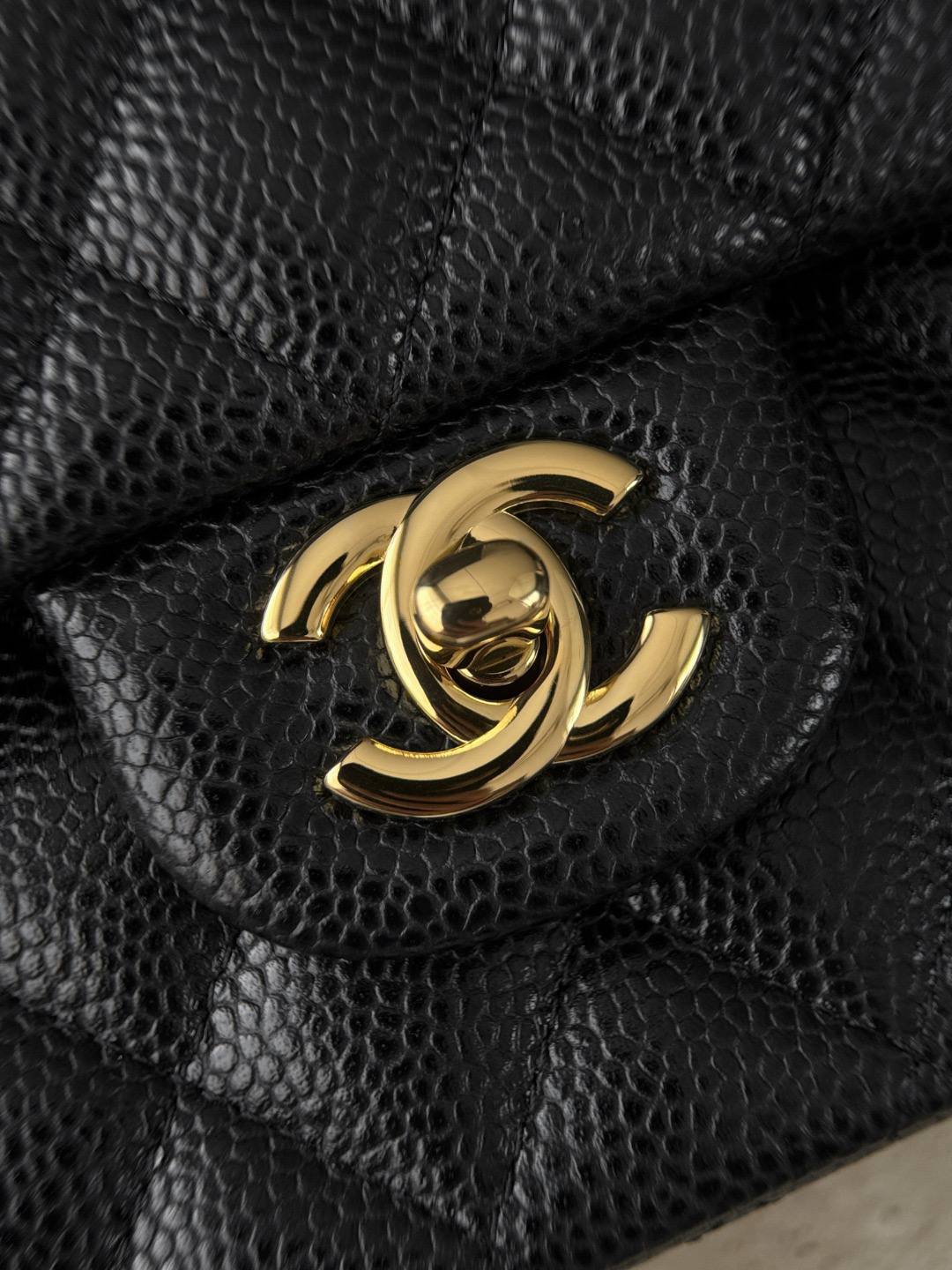 Элегантная сумка CHANEL CF25 в классическом исполнении — идеальное сочетание вечной эстетики и практичности. Черная зернистая кожа с ромбовидной стежкой, золотистая фурнитура и переплетённая кожей цепочка формируют узнаваемый силуэт, который легко переводит образ из дневного в вечерний.