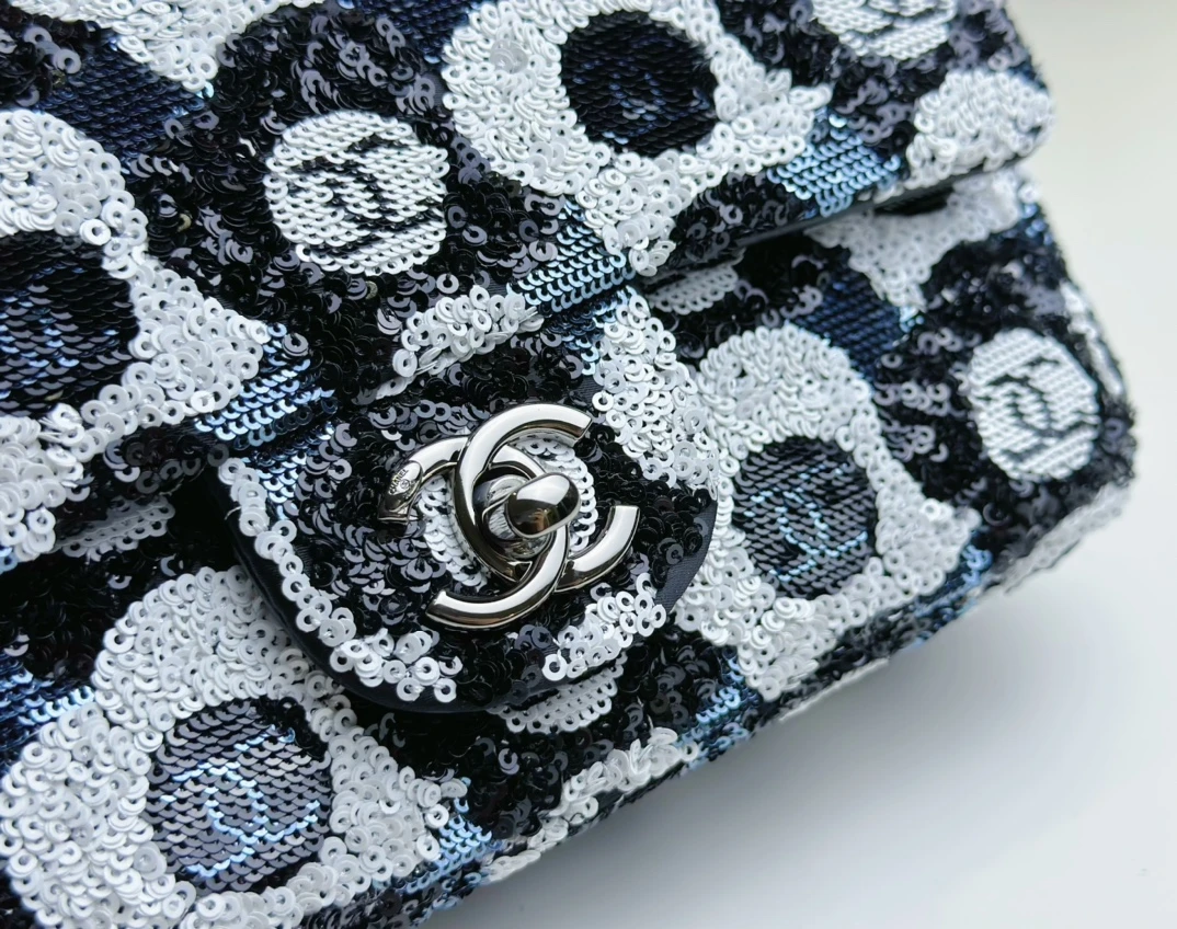 Добавьте яркости и элегантности вашему образу с вечерней сумочкой CHANEL CF Camellia. Эксклюзивный дизайн украшен вышивкой в виде культовых камелий, полностью покрытых сияющими пайетками, благодаря чему аксессуар выглядит роскошно и притягивает взгляды. Эффектная цельнометаллическая фурнитура с фирменным логотипом CHANEL подчеркивает престиж бренда и не оставляет сомнений в вашем безупречном вкусе.