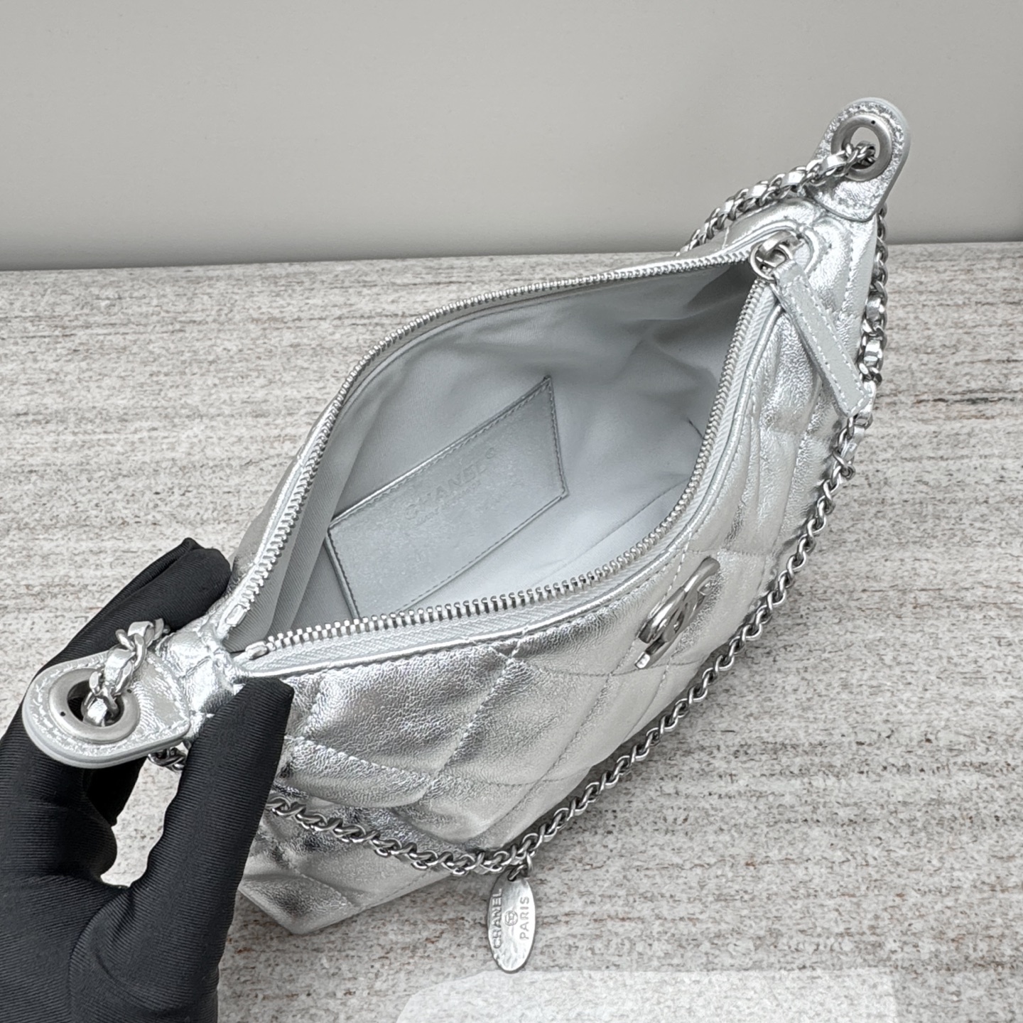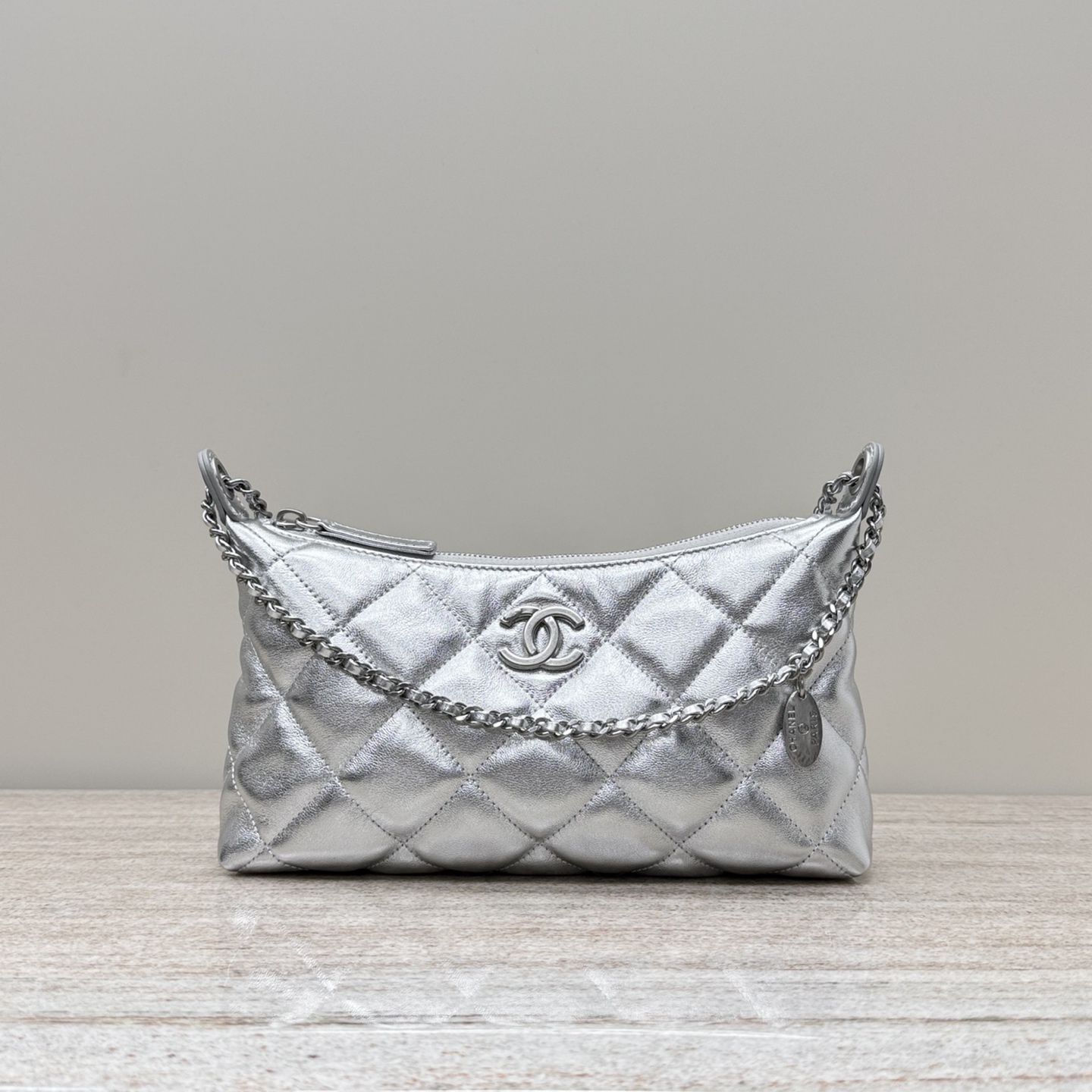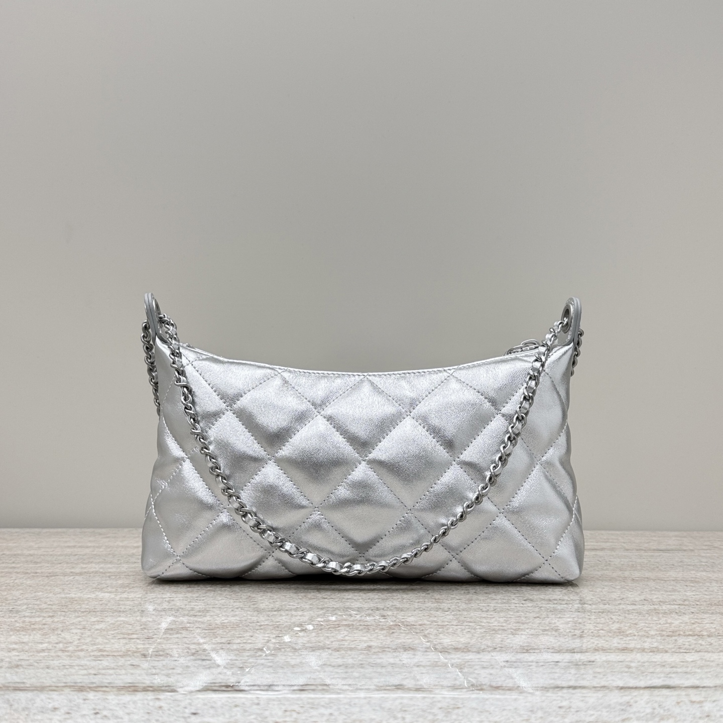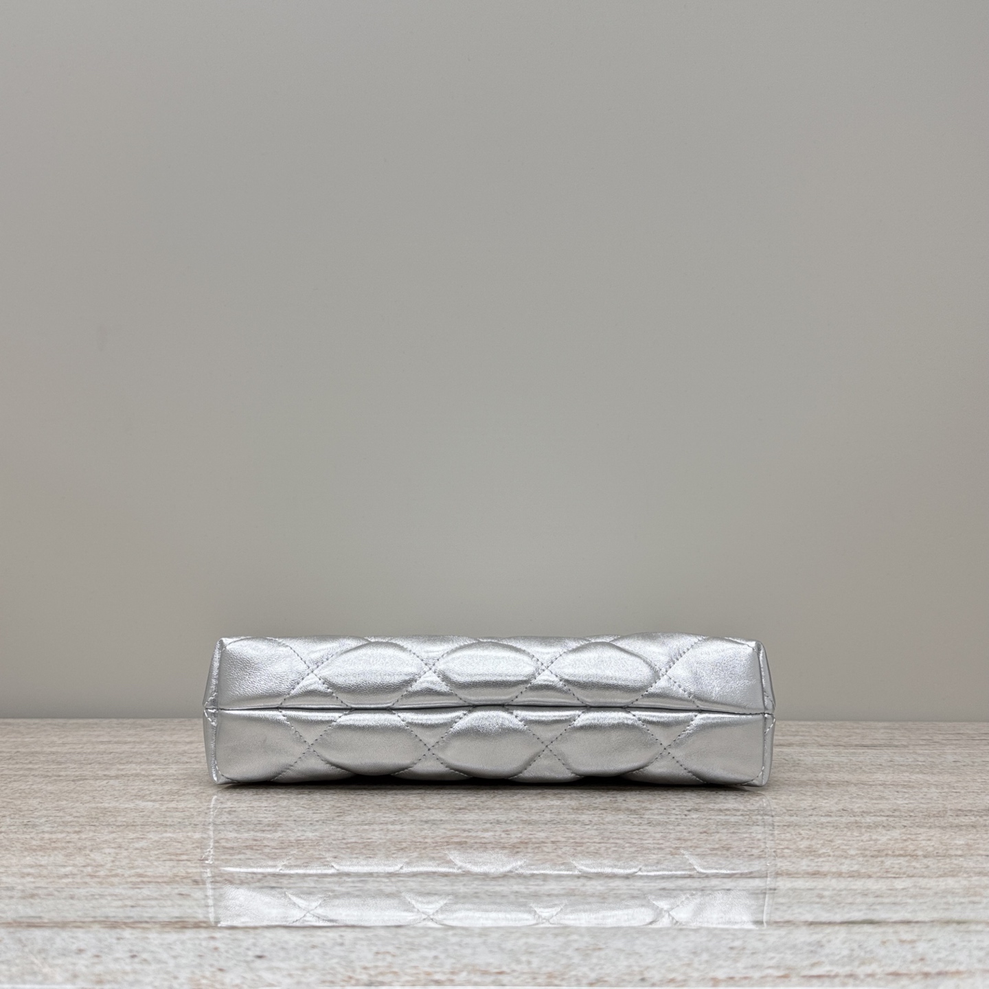Женская сумка Chanel — воплощение элегантности и роскоши, выполненная в культовом фирменном стиле бренда. Модель украшена объемной стеганой кожей серебристого цвета, что придает аксессуару современность и изысканный блеск.