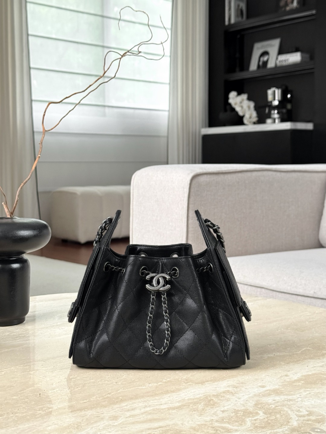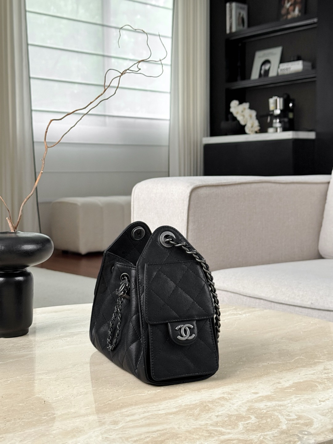 • Застёжка: стягивающий шнурок с цепочкой и декоративным логотипом; при необходимости дополняется внутренней застёжкой‑молнией/кнопкой (в зависимости от комплектации).