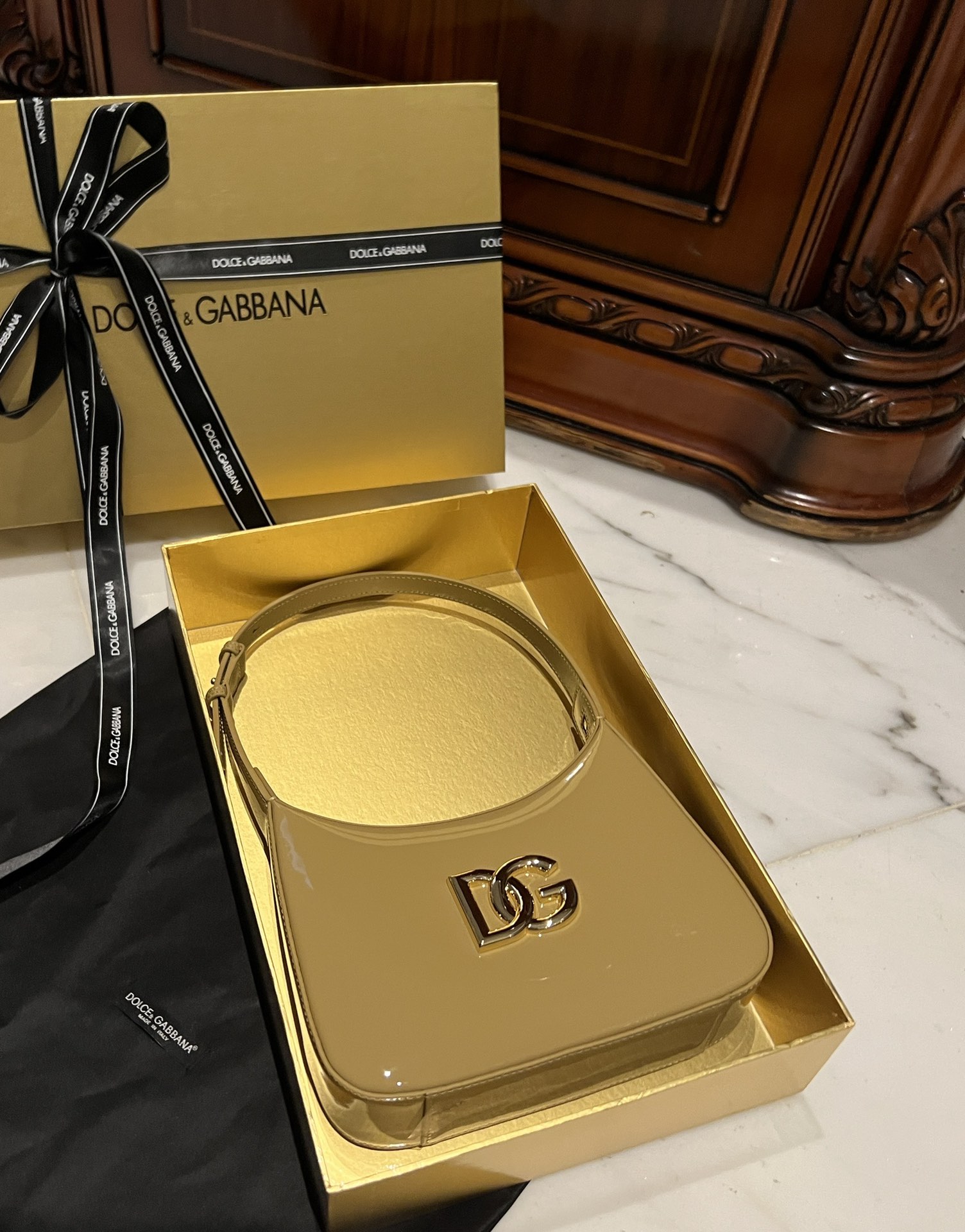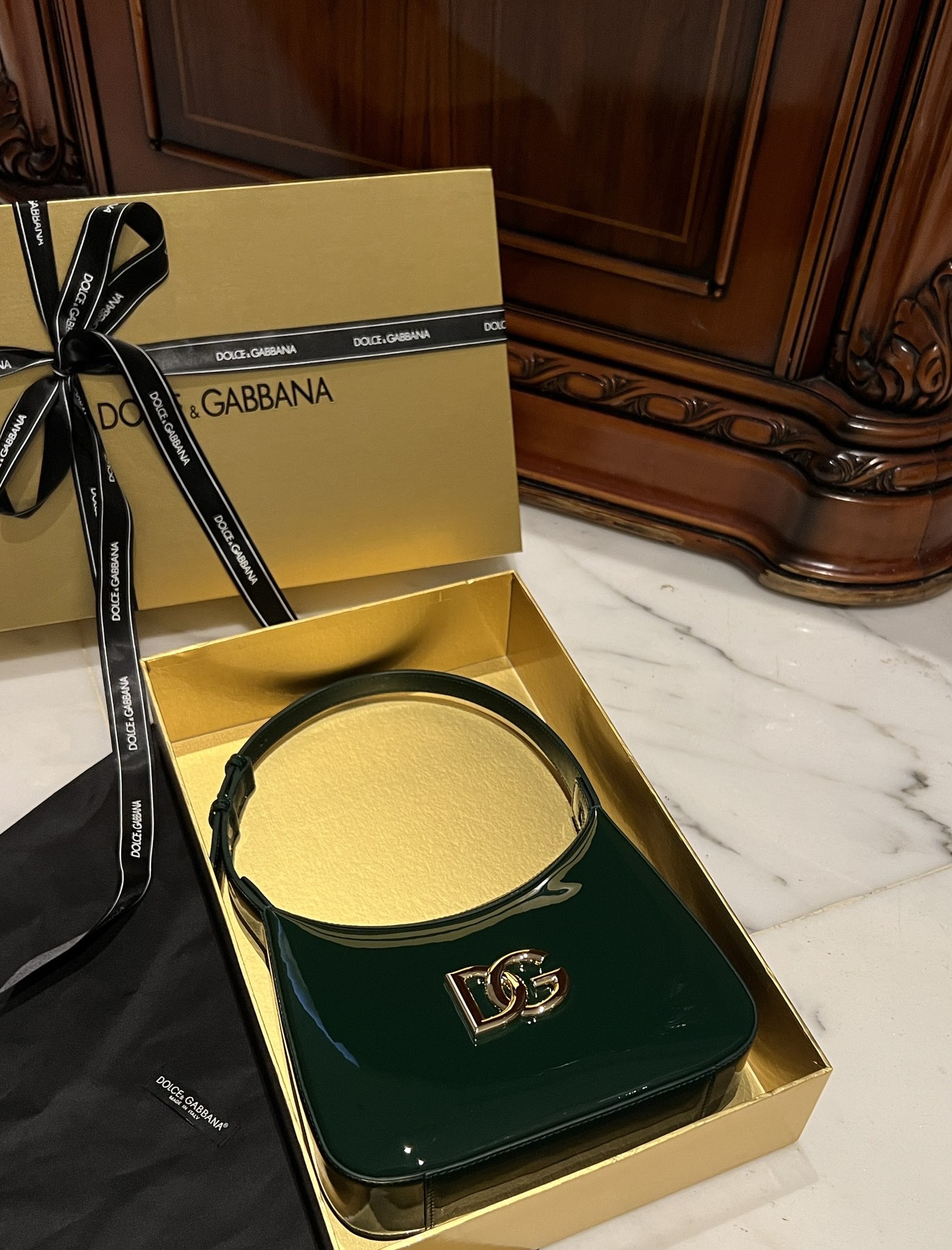 Эта сумка идеально сочетает в себе качество материалов и утонченный дизайн, что является характерным для бренда Dolce & Gabbana. Логотип DG придаёт ей узнаваемый вид и подчеркивает статус изделия.