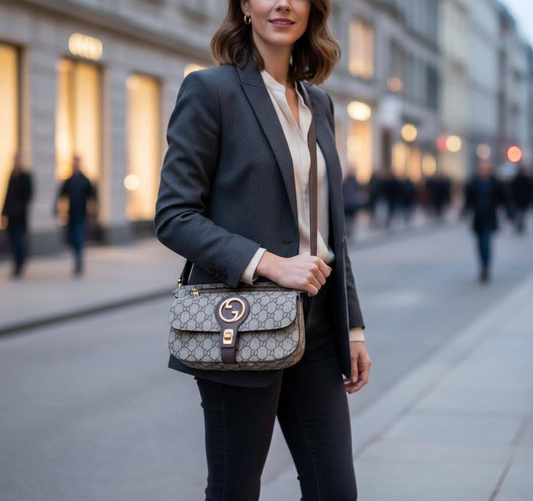 Gucci Blondie — элегантная компактная сумка через плечо, сочетающая классический GG-узор и лаконичный современный силуэт. Идеальна для повседневного и вечернего образа, когда нужно взять с собой только самое необходимое.