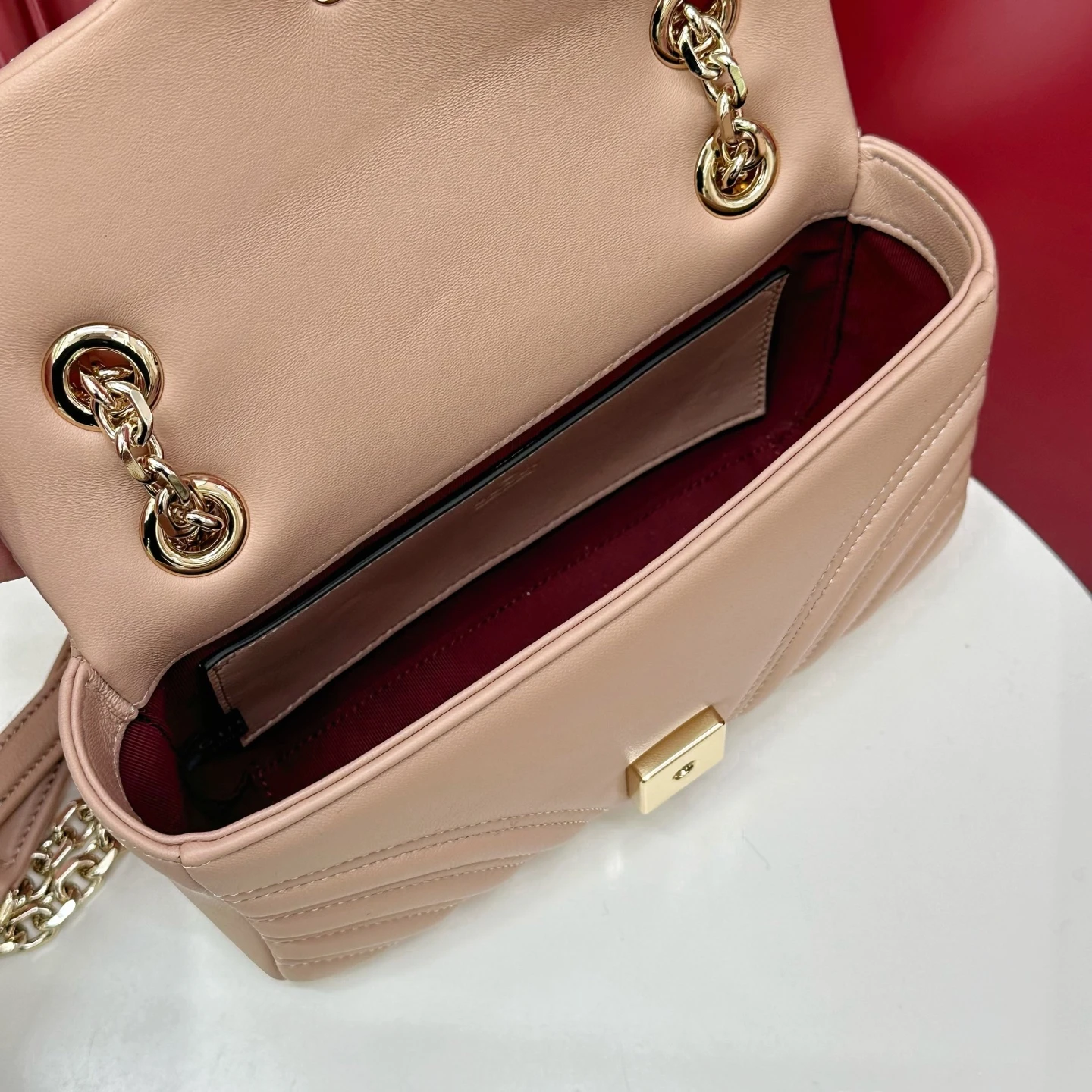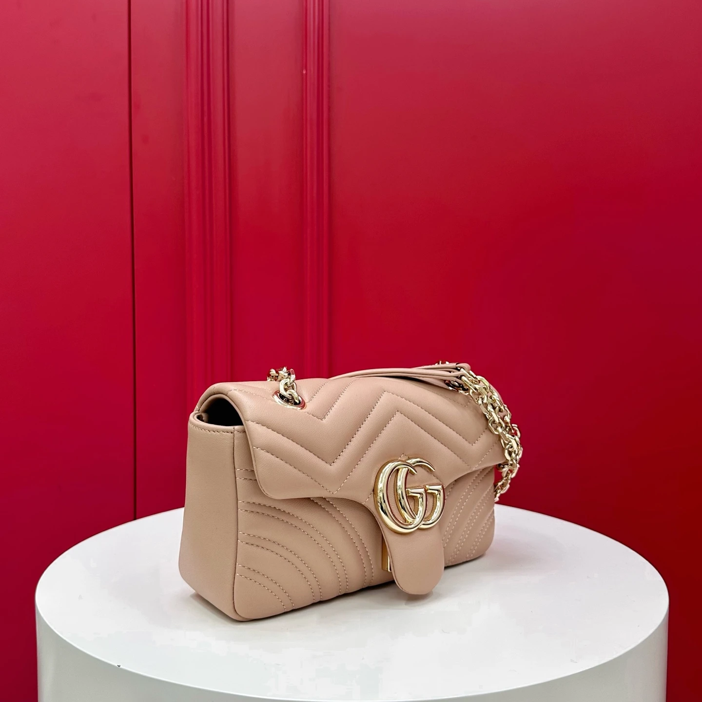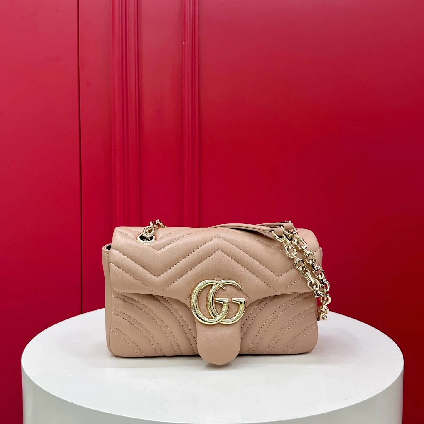 Знаковая фурнитура Double G придаёт аксессуару узнаваемость и утончённый акцент, отражая богатое наследие бренда. Элегантный ремешок позволяет носить сумку на плече или через плечо, делая её идеальным спутником как для дневных, так и для вечерних образов.