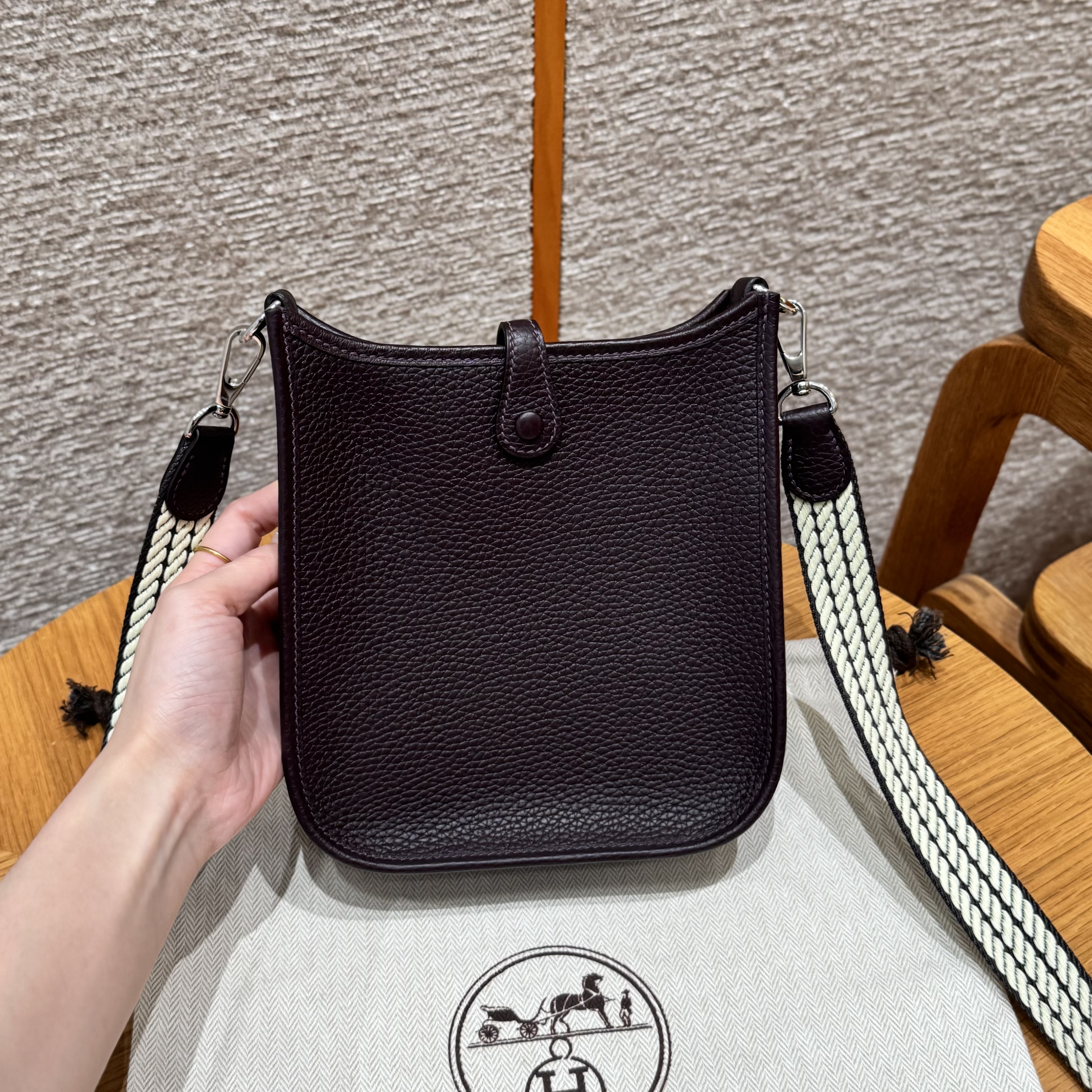 Hermes Женская сумка mini Evelyne 16 см 3W/Prunoir кожа Clemence.