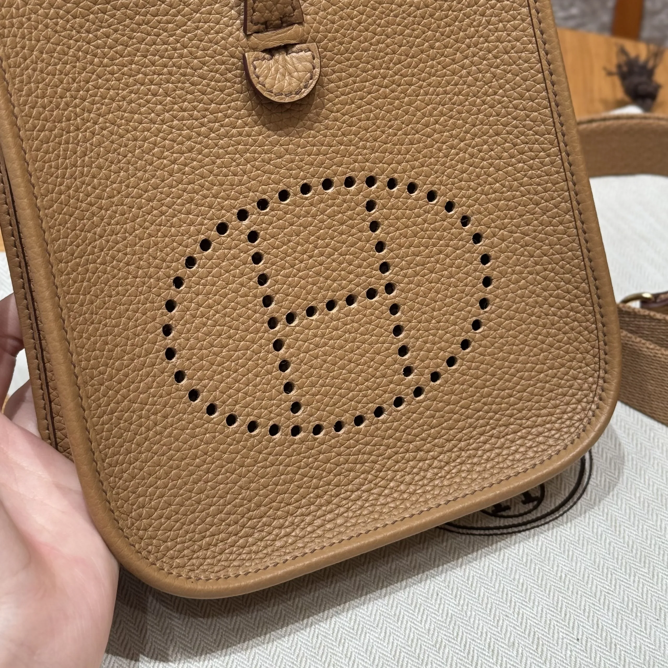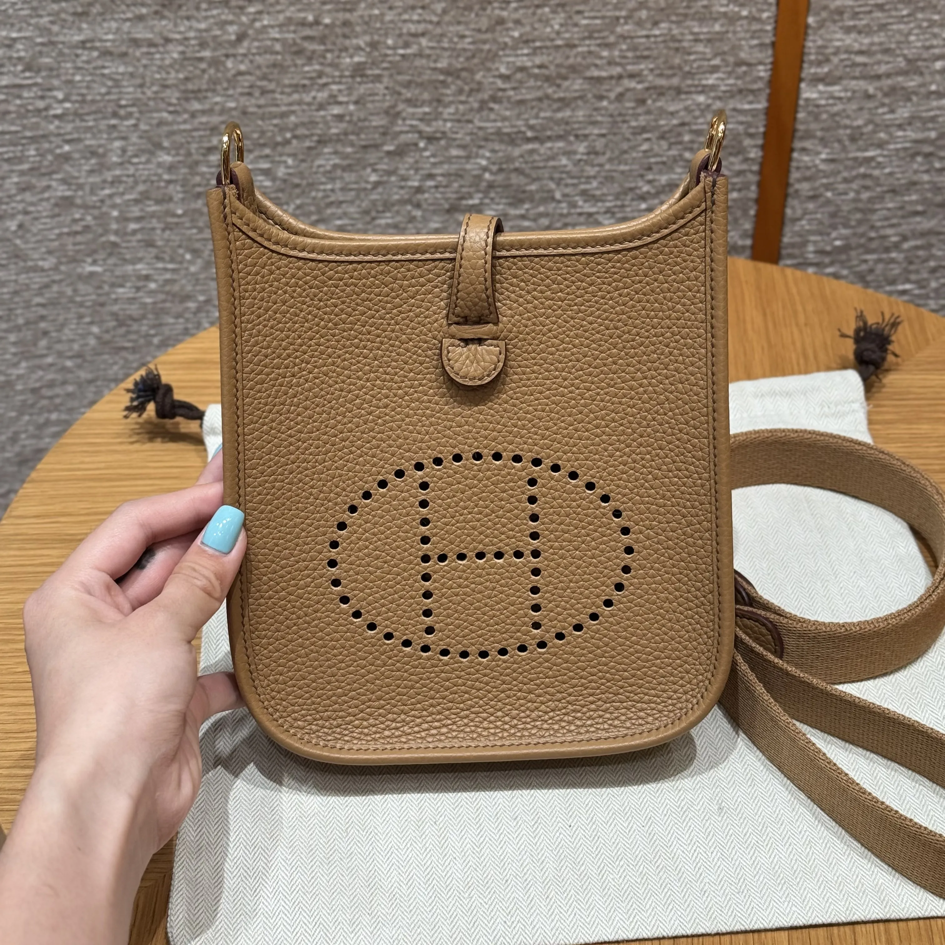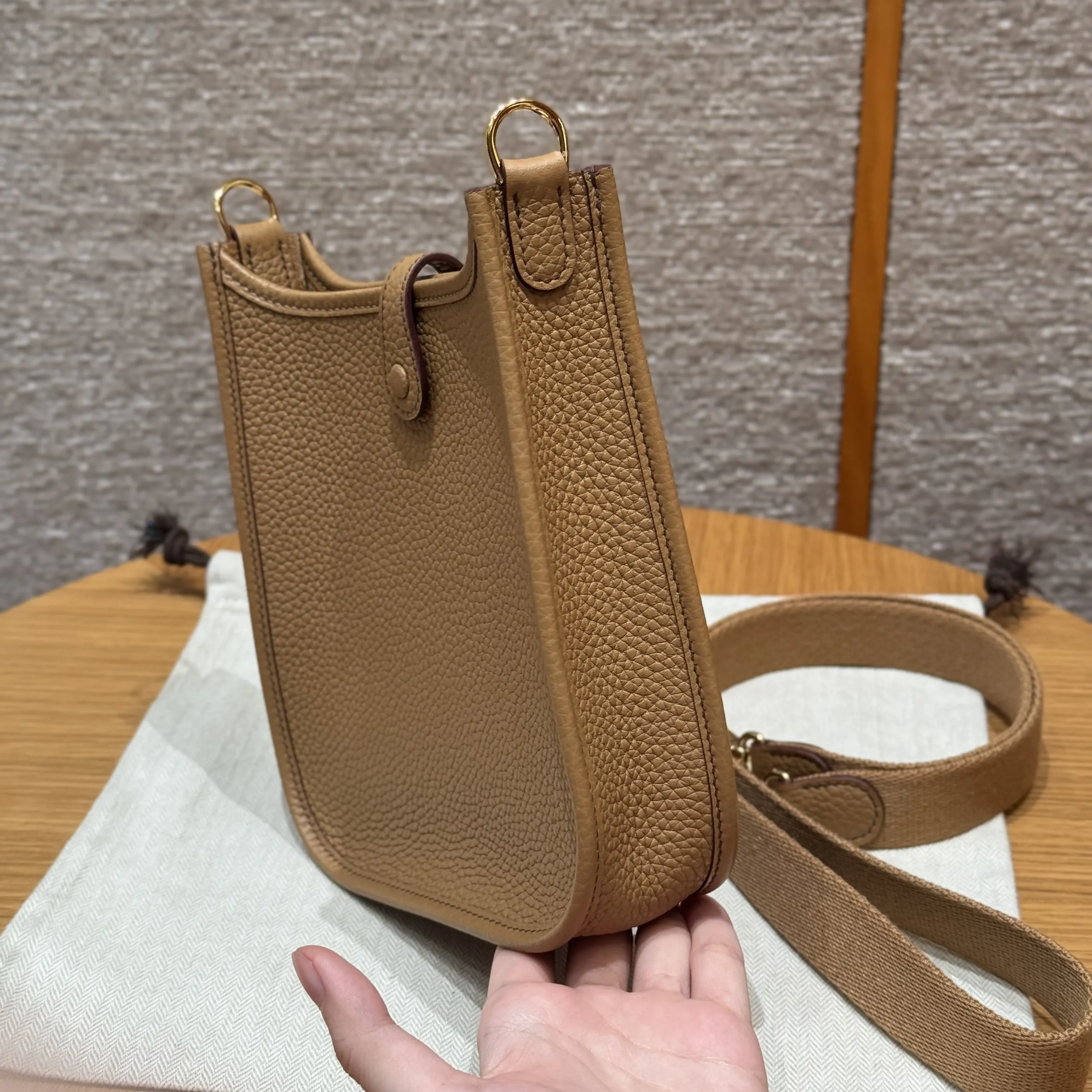 Hermes Женская сумка mini Evelyne 16 см 4B/Biscuit кожа Clemence.
