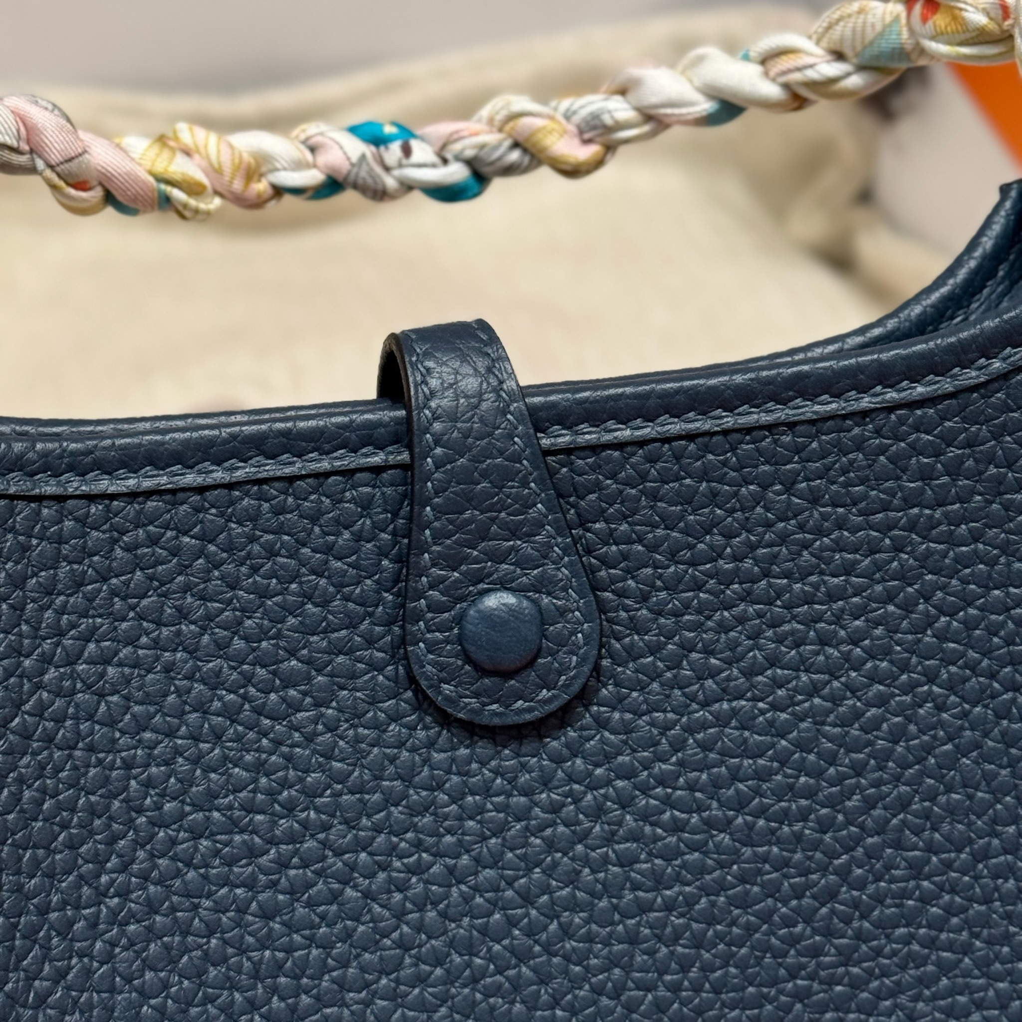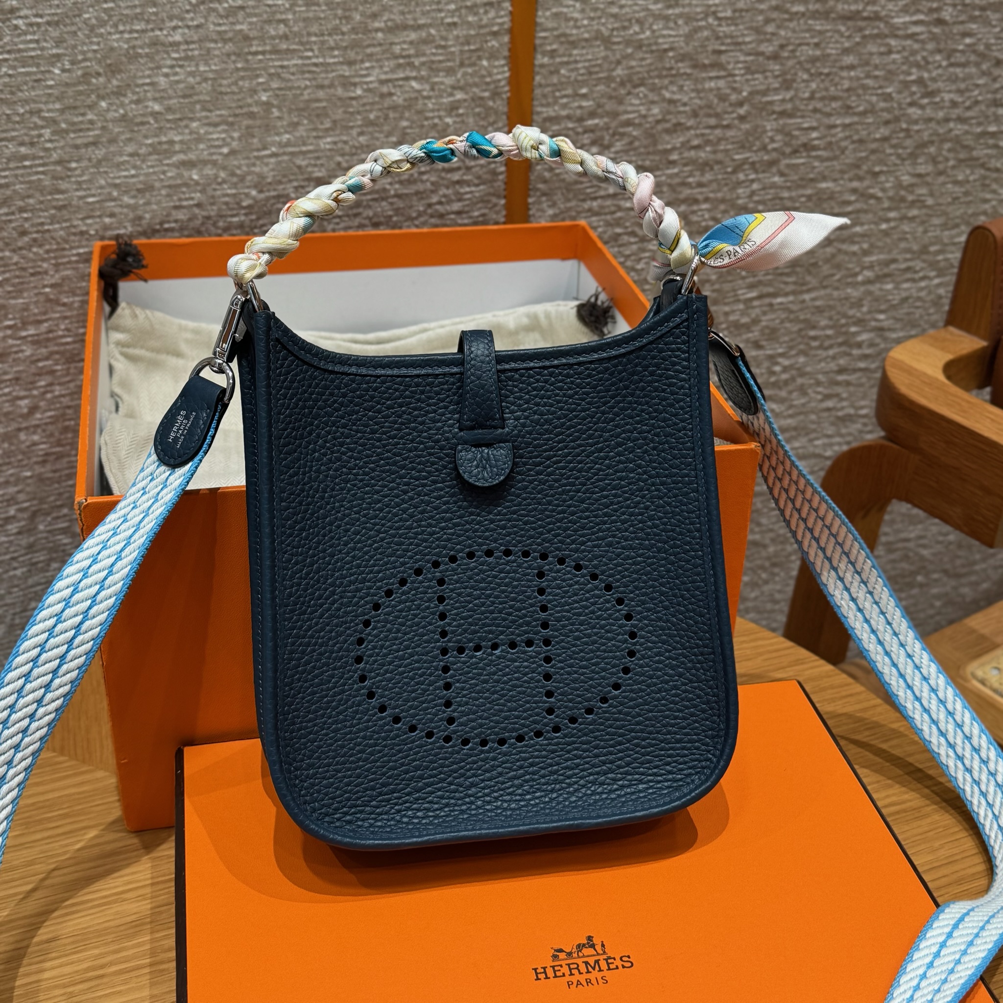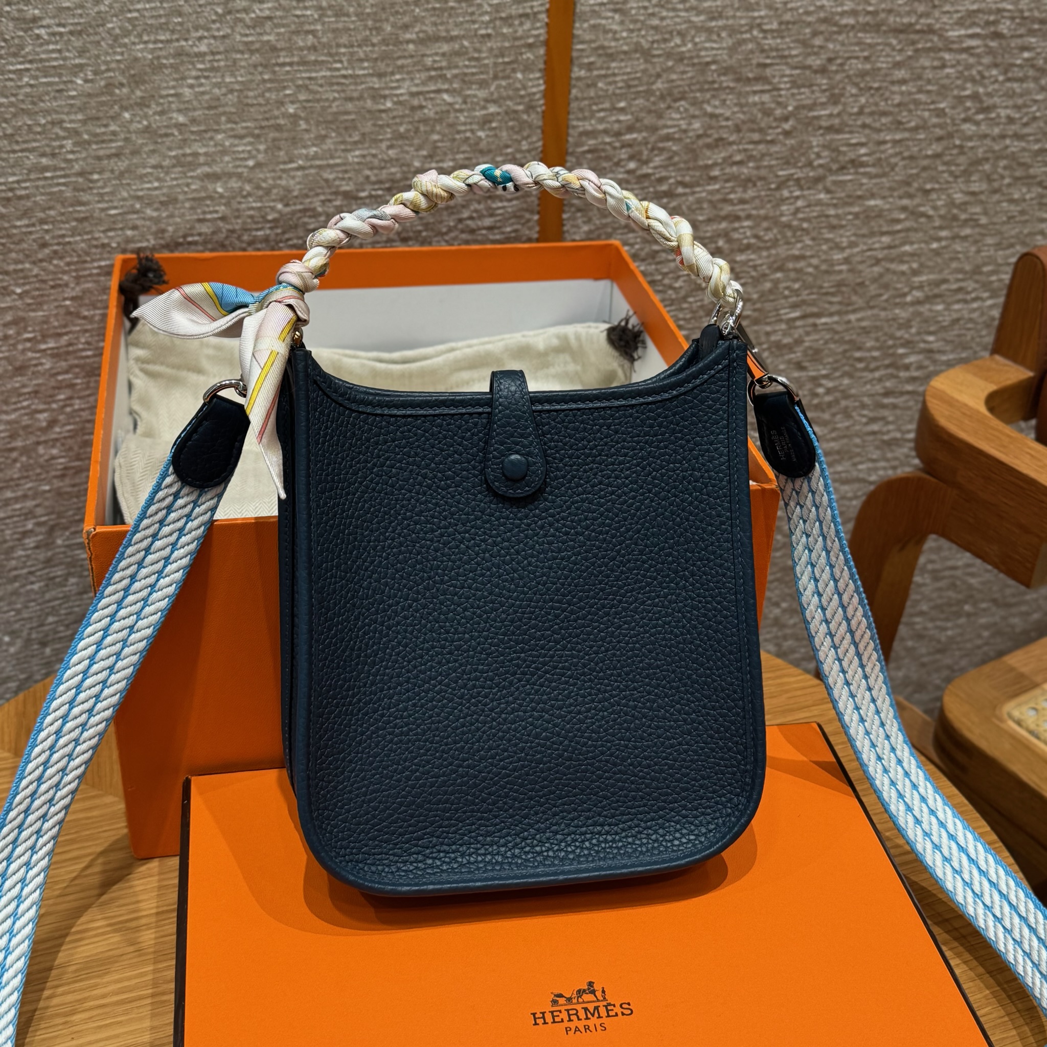 Hermes Женская сумка mini Evelyne 16 см 7P/Blue presse кожа Clemence.