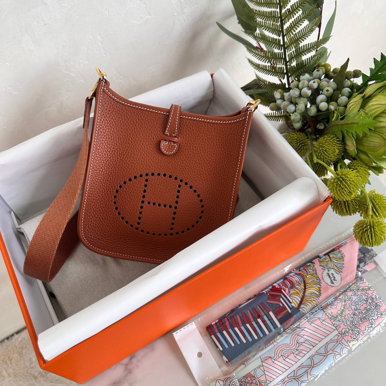 Сумка Hermes Evelyne Mini 18 см — это стильный аксессуар, выполненный вручную из высококачественных материалов. Сумка имеет элегантный и функциональный дизайн, оснащена регулируемым плечевым ремнем и характерным отверстиями в форме буквы "H". Она идеально подходит как для повседневной носки, так и для особых случаев. В комплект входит оригинальная упаковка.