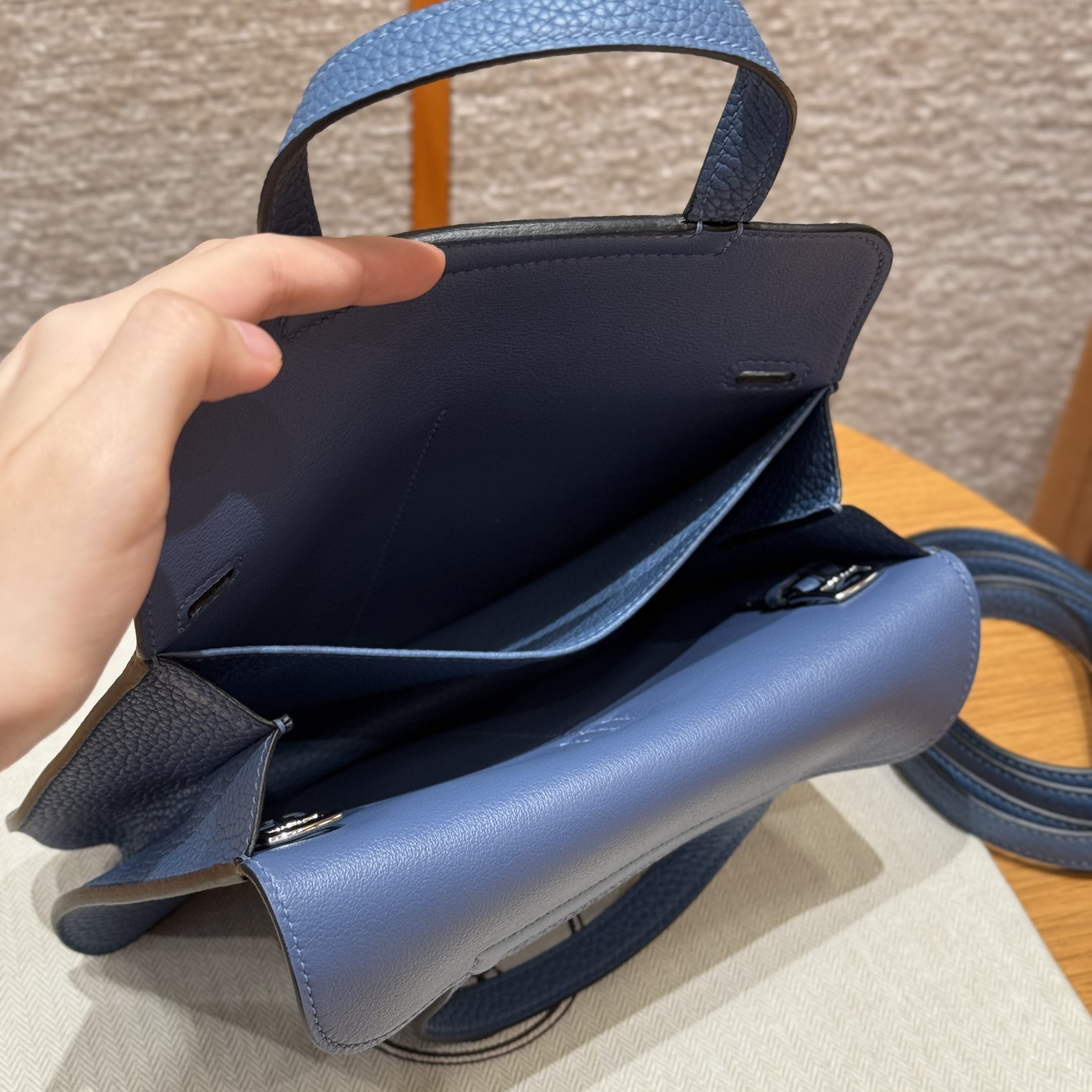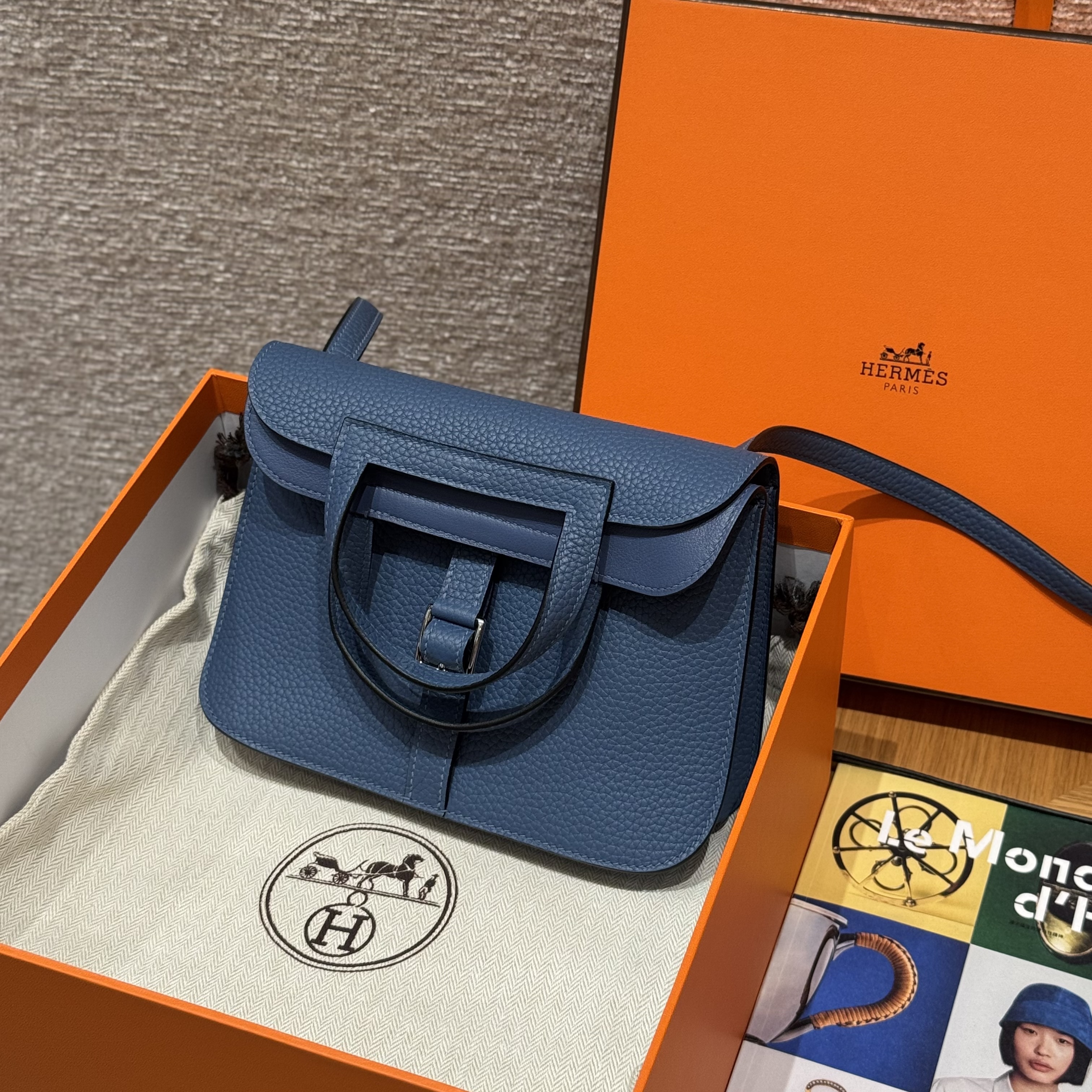 Hermes Женская сумка Halzan 22 см 7E/Blue brighton кожа Clemence.