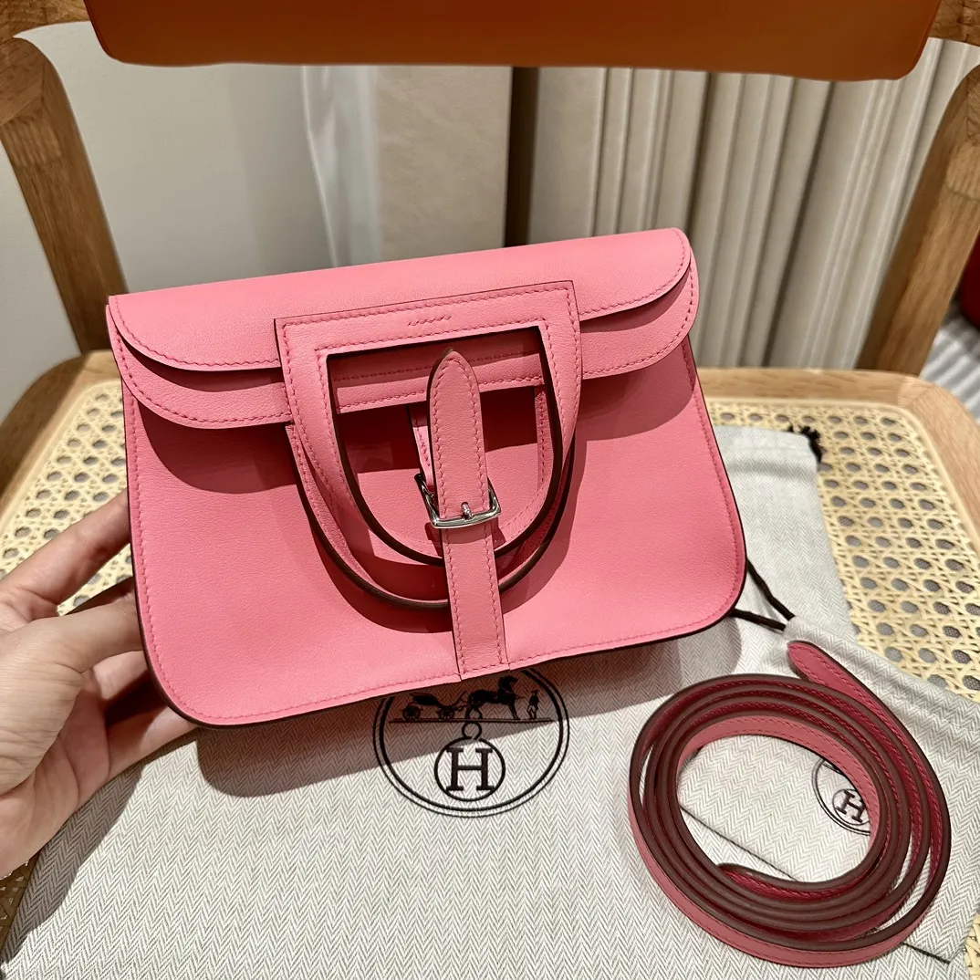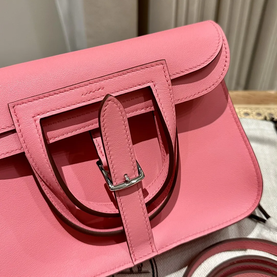 Hermes Женская сумка Halzan 22 см U5/Rose Iipstick кожа Swift.