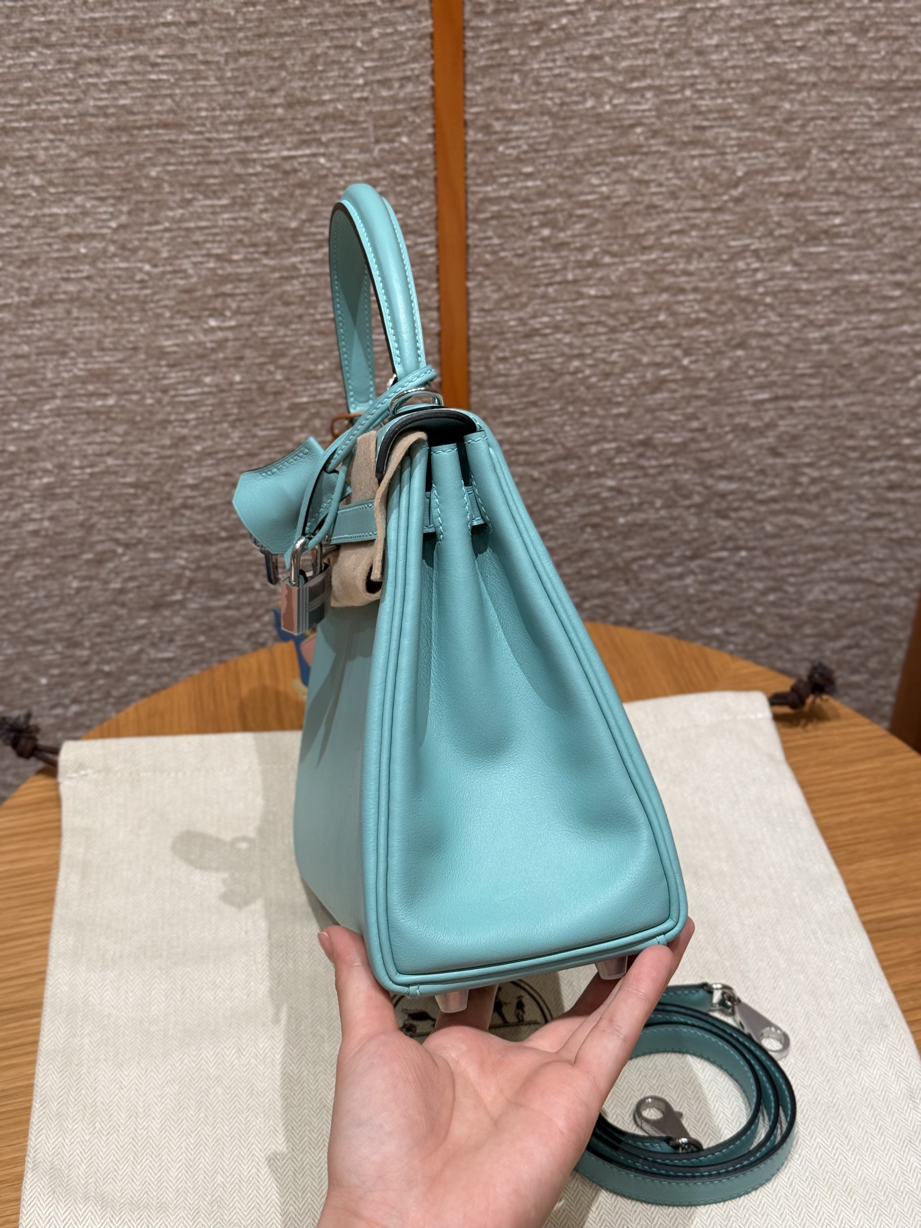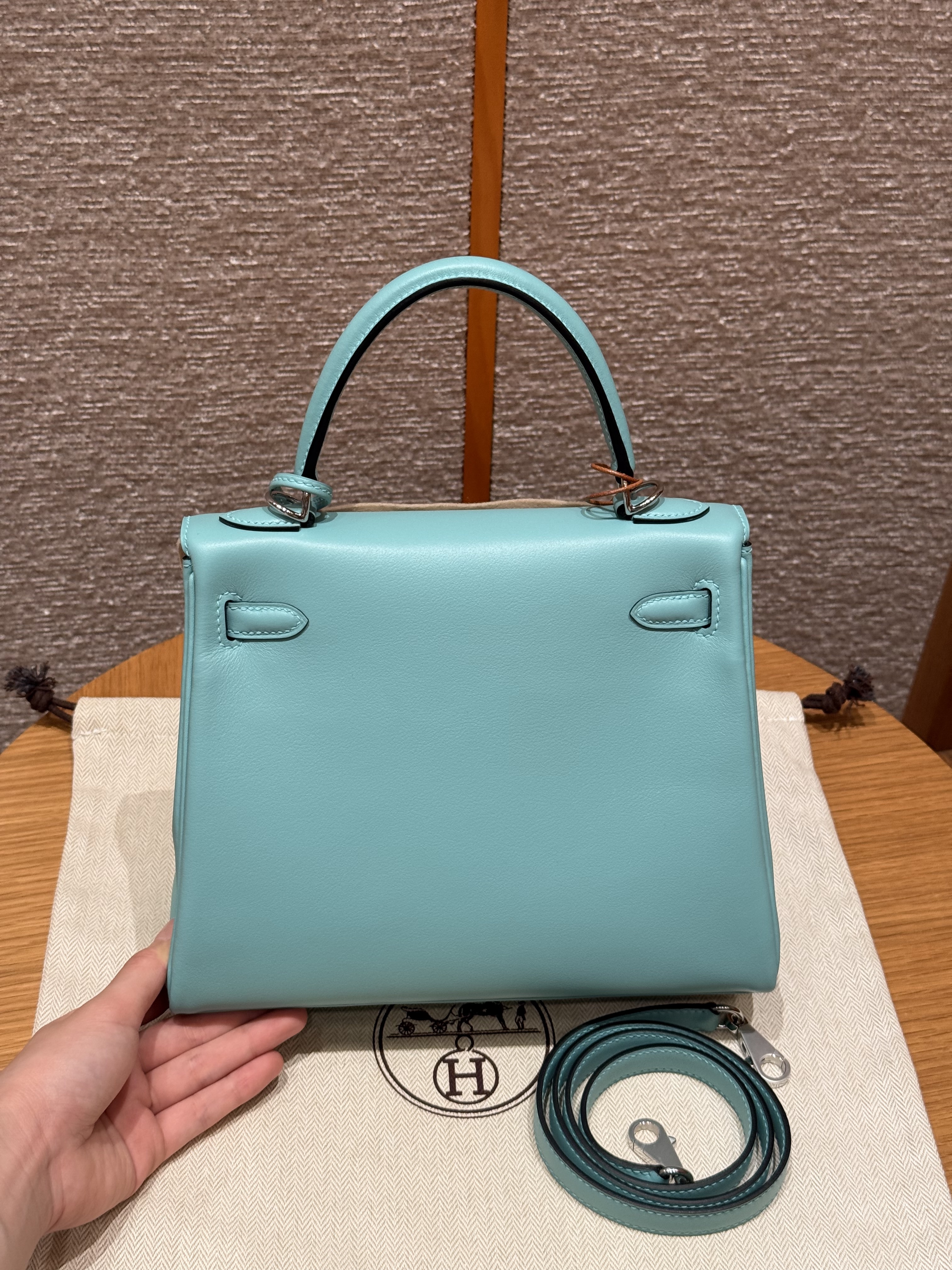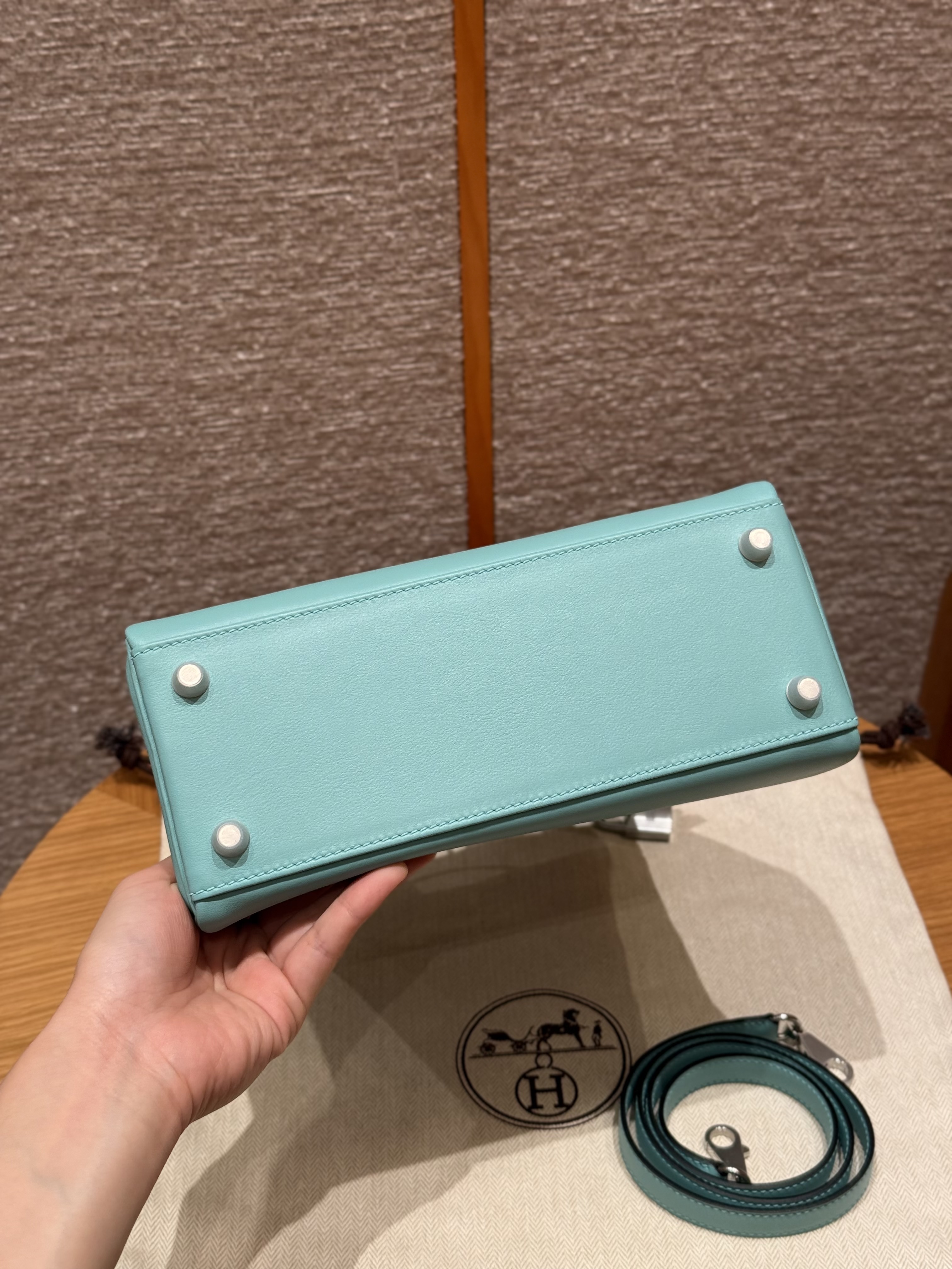 Hermes Женская сумка Kelly 25 см 3P/Blue atoll кожа Swift.