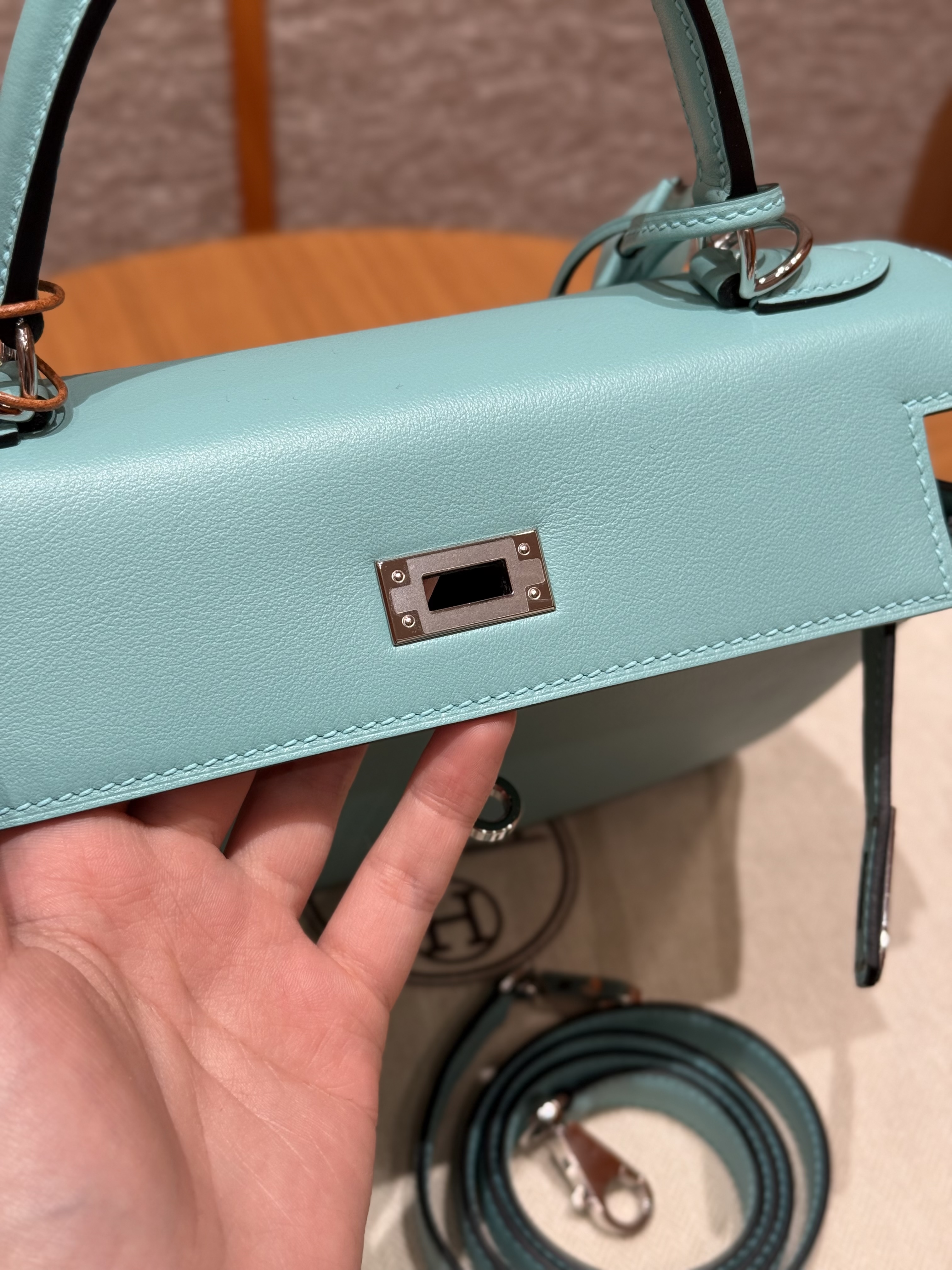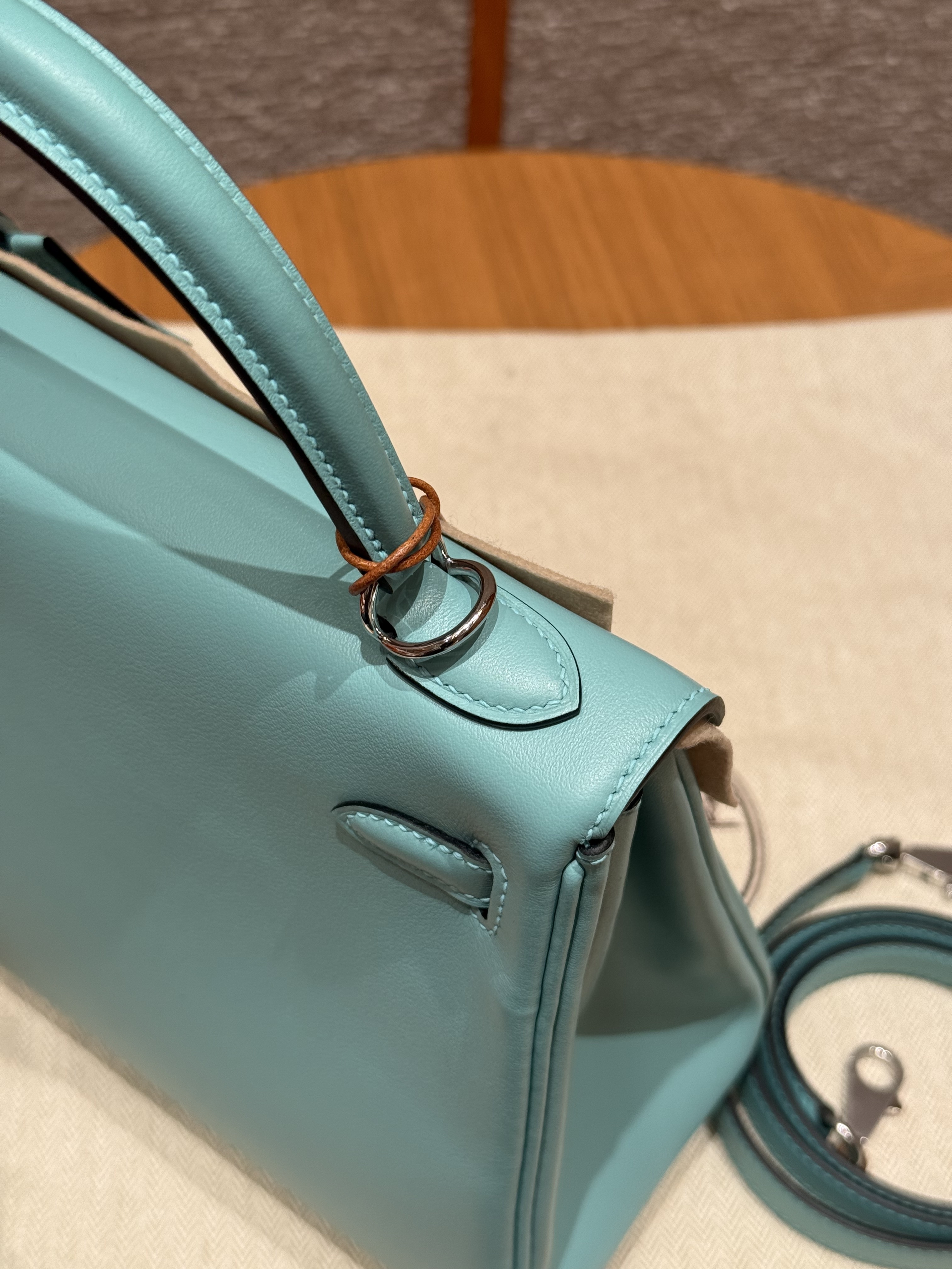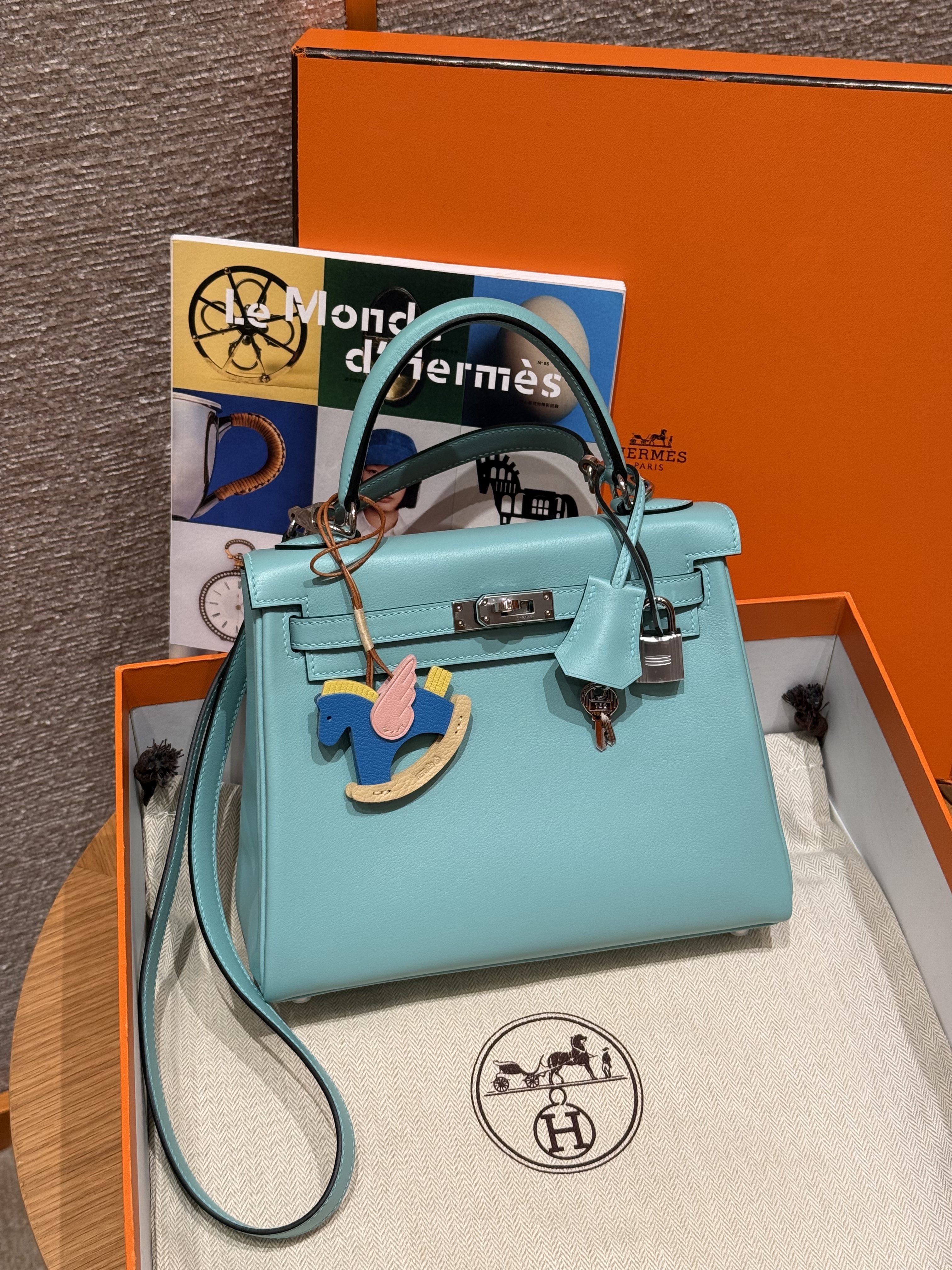 Hermes Женская сумка Kelly 25 см 3P/Blue atoll кожа Swift.