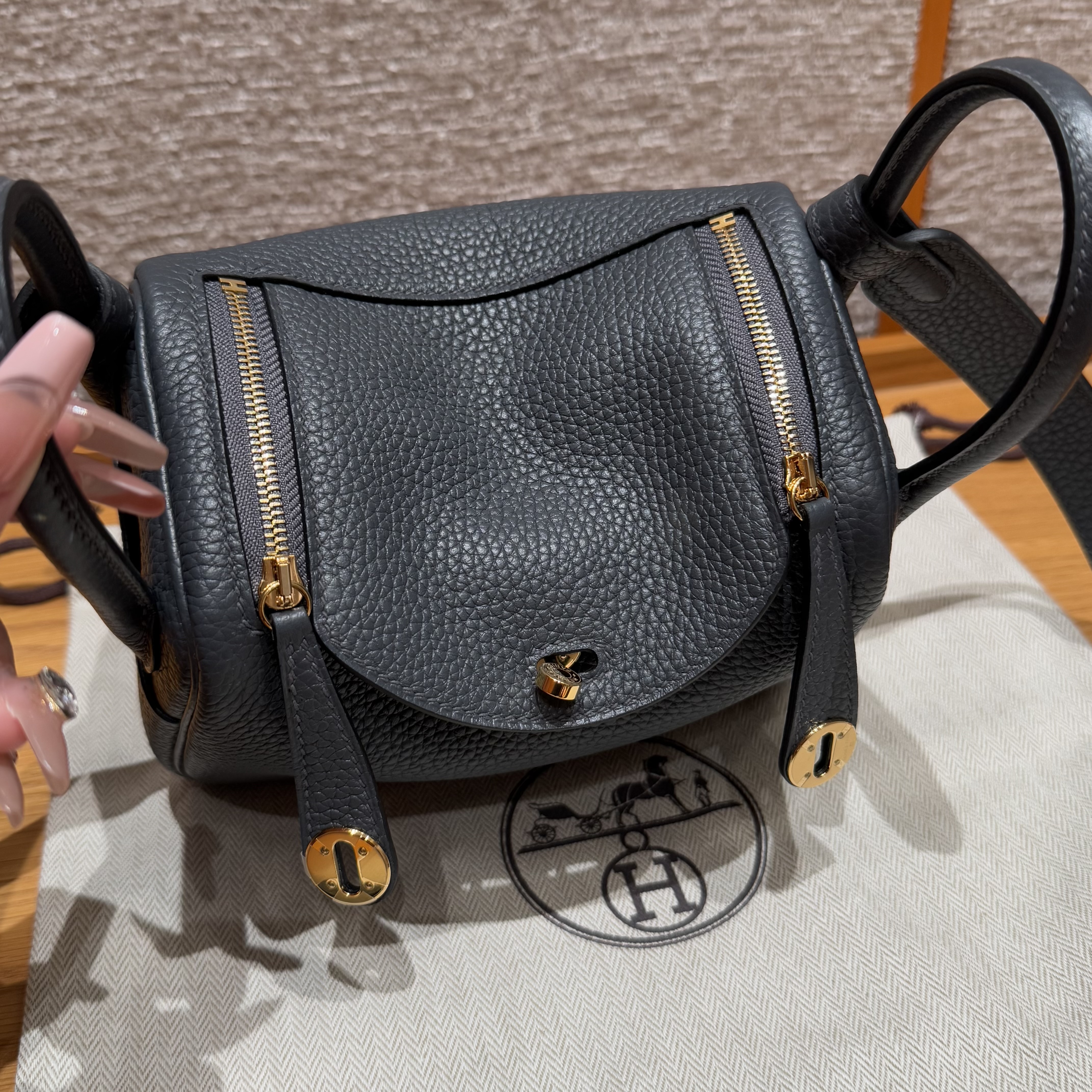 Hermes Женская сумка Lindy 19 см H0/Girs Misty кожа Clemence.