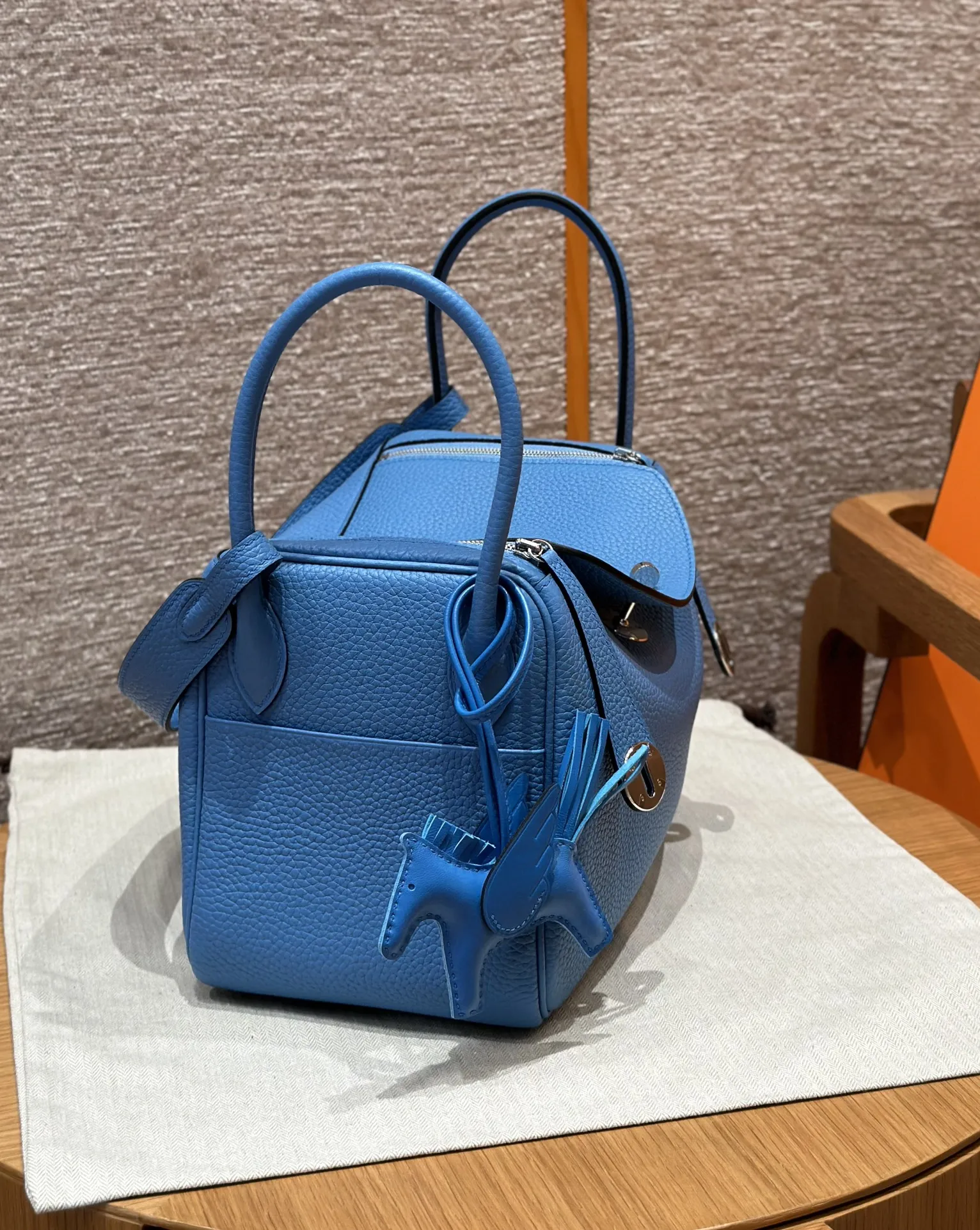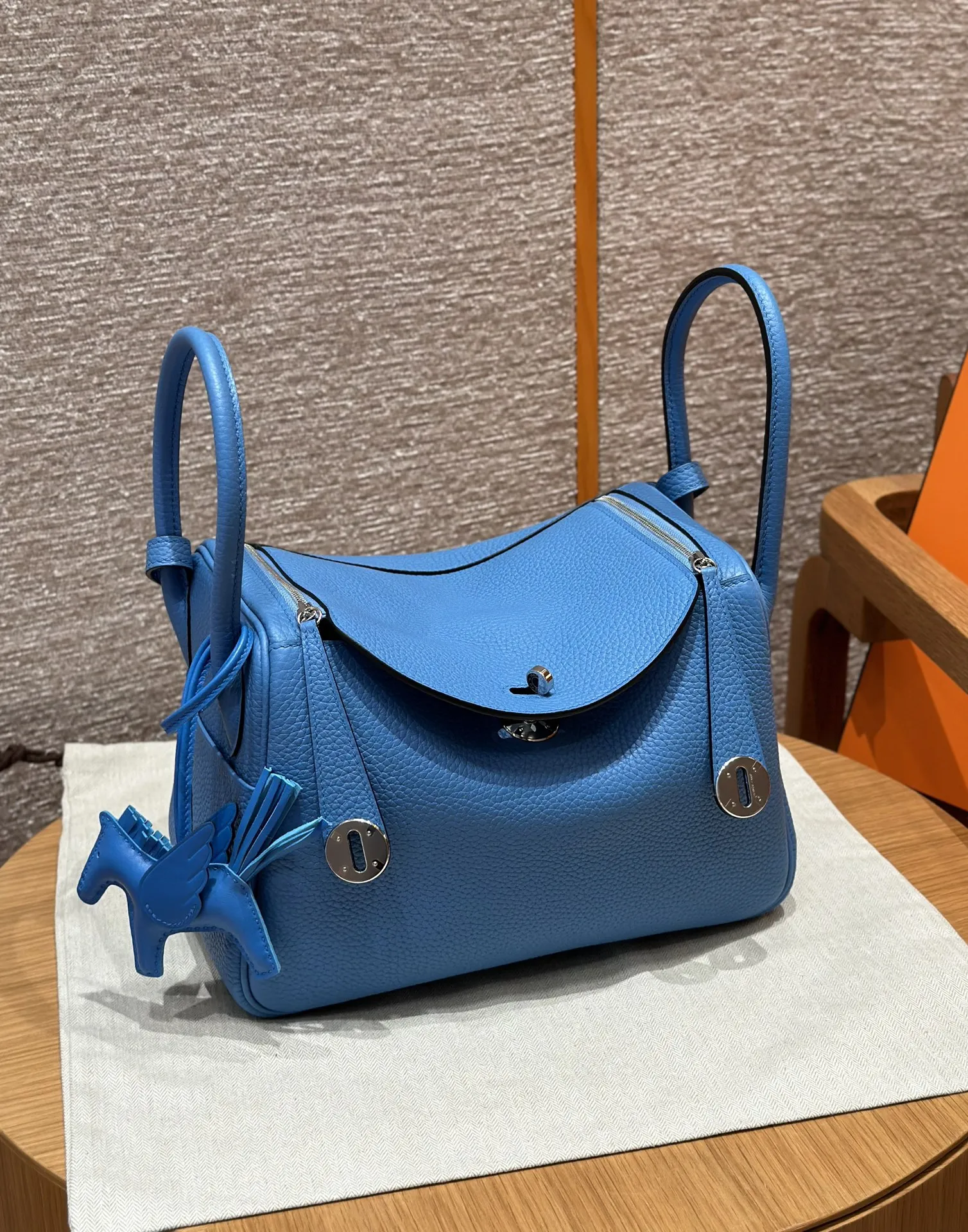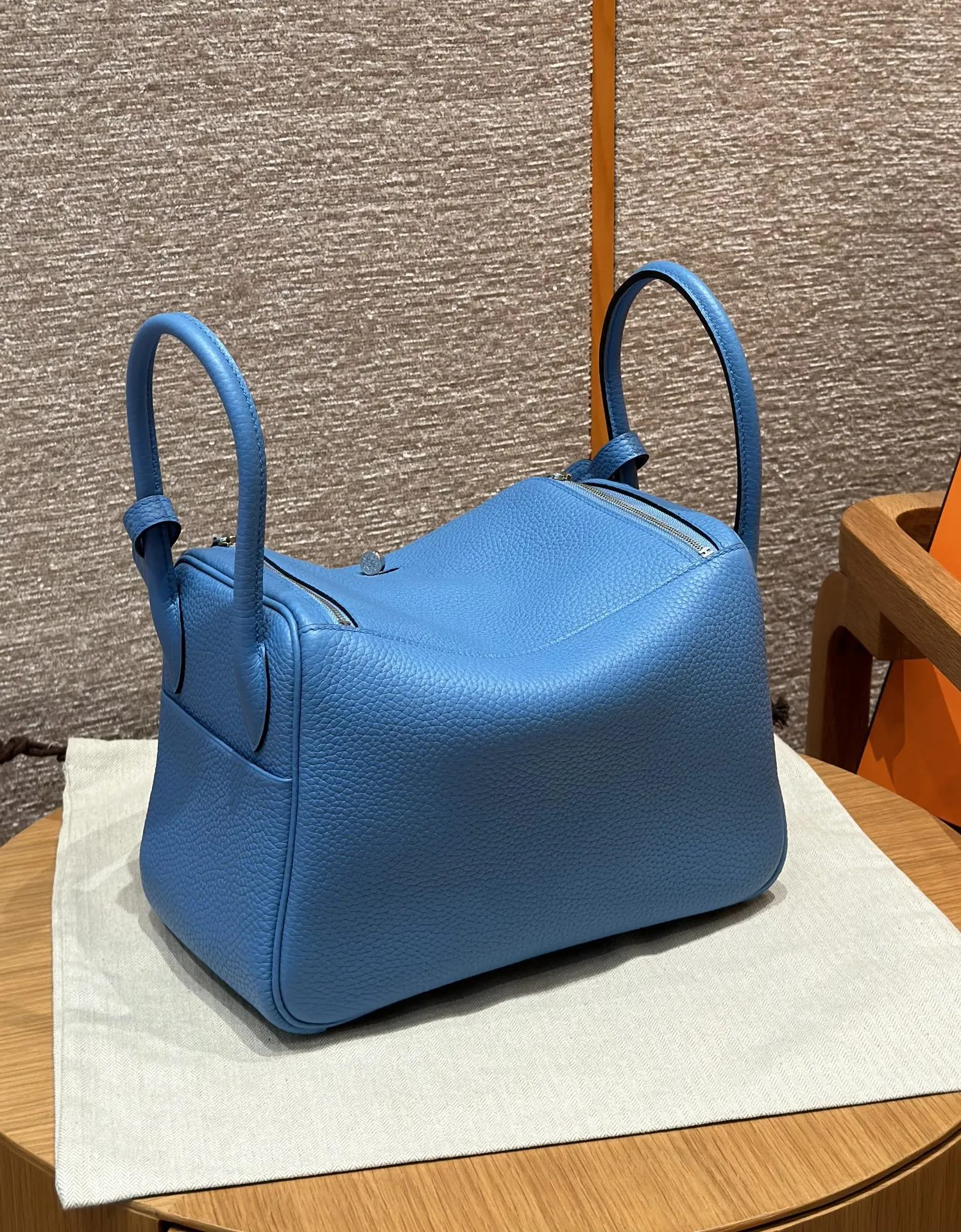 Hermes Женская сумка Lindy 26 см 2T/Bleu paradis кожа Clemence.