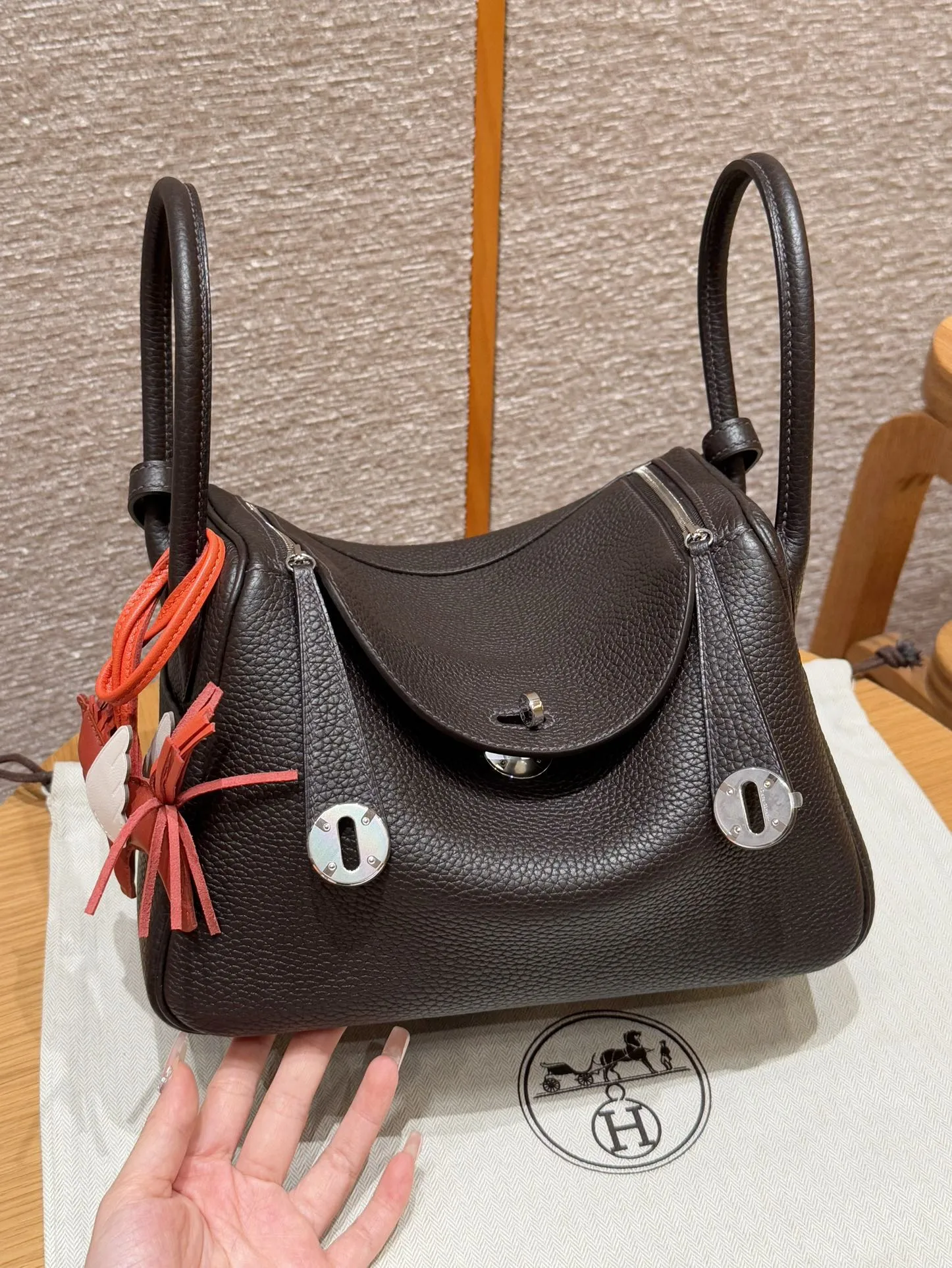 Hermes Женская сумка Lindy 26 см 3S/Macassar кожа Clemence.