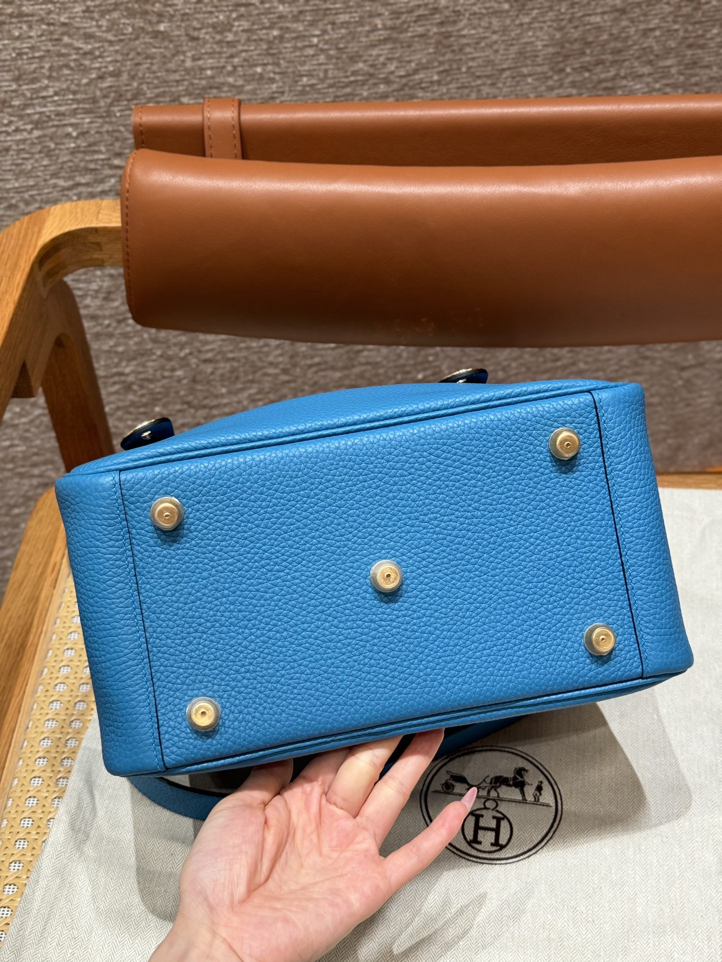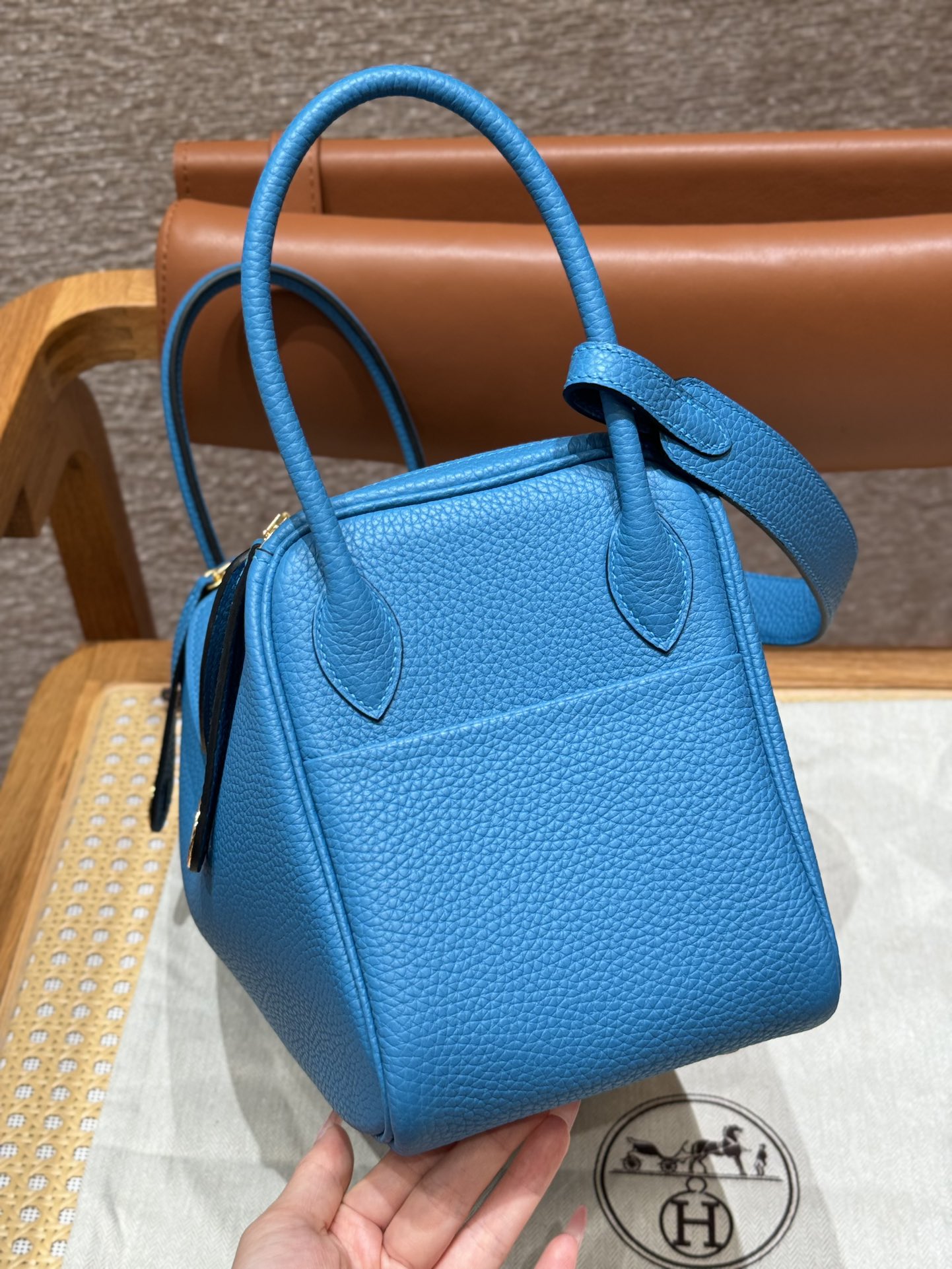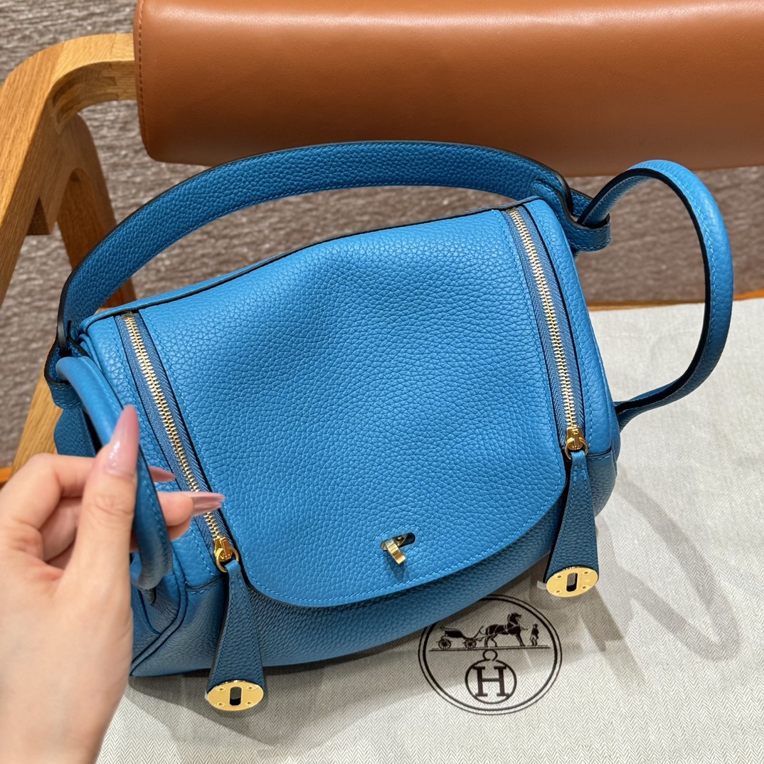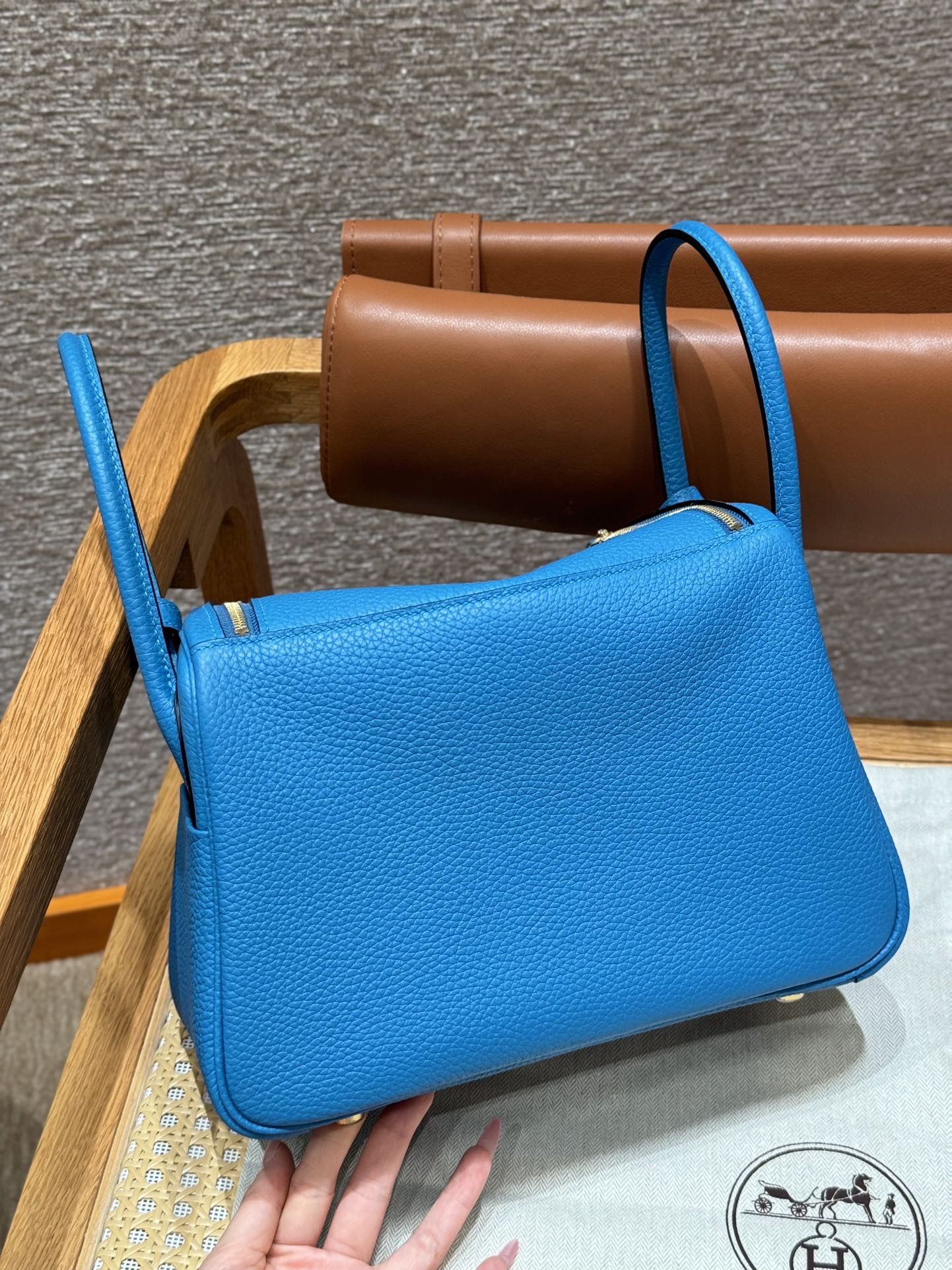 Hermes Женская сумка Lindy 26 см OF/Blue Frida кожа Clemence.