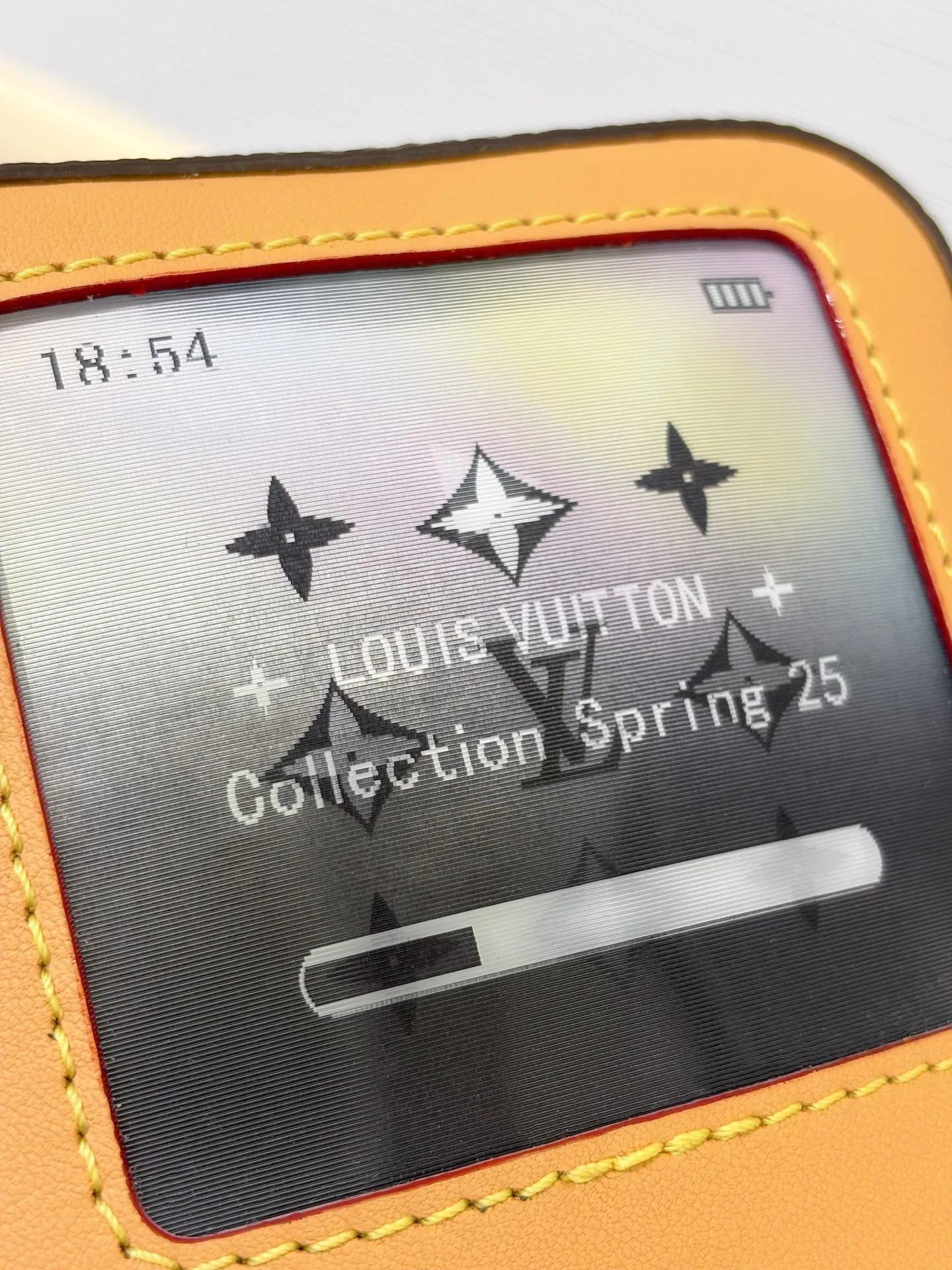 Портмоне Чехол LV Music Player Wearable Wallet выполнено из коровьей кожи и канвы Monogram с подкладкой из чёрного текстиля. Выглядит как винтажный цифровой плеер, интерфейс выполнен в виде LV Blossom, а экран имитирует приборную панель LV. Застёгивается на молнию и вмещает телефон, картхолдер и ключи.