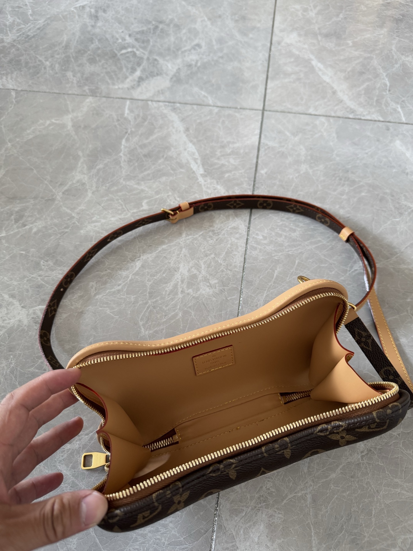 Выполнен из канвы с характерной монограммой Louis Vuitton, что придаёт ему классический и узнаваемый вид.