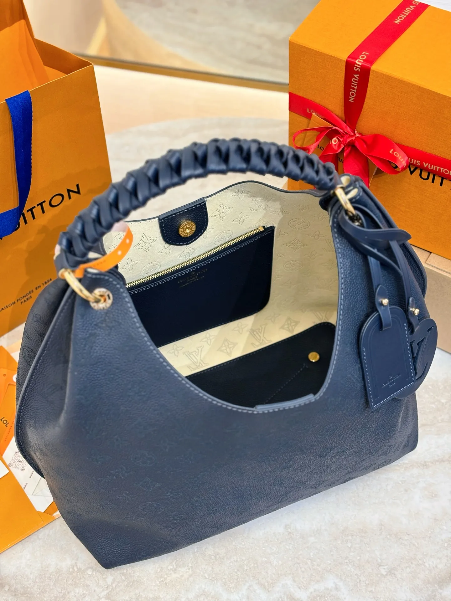 Съёмная плетёная подвеска LV добавляет уникальности и может служить акцентом в образе. Бирка с адресом, напоминающая о классических чемоданах Louis Vuitton, подчеркивает наследие бренда и его внимание к деталям.