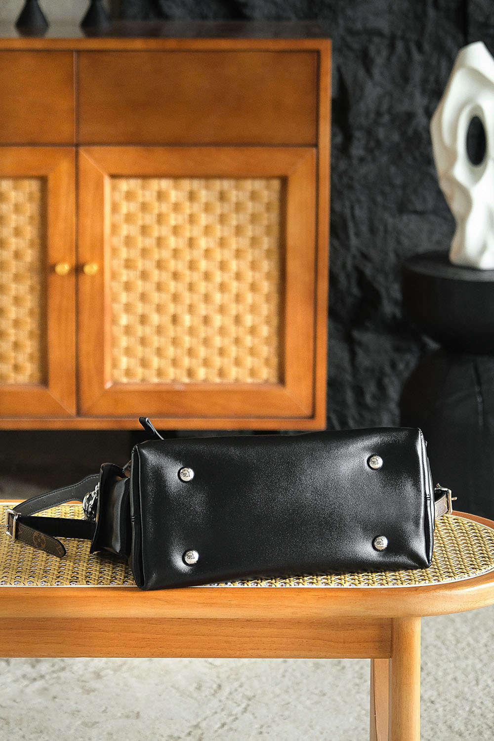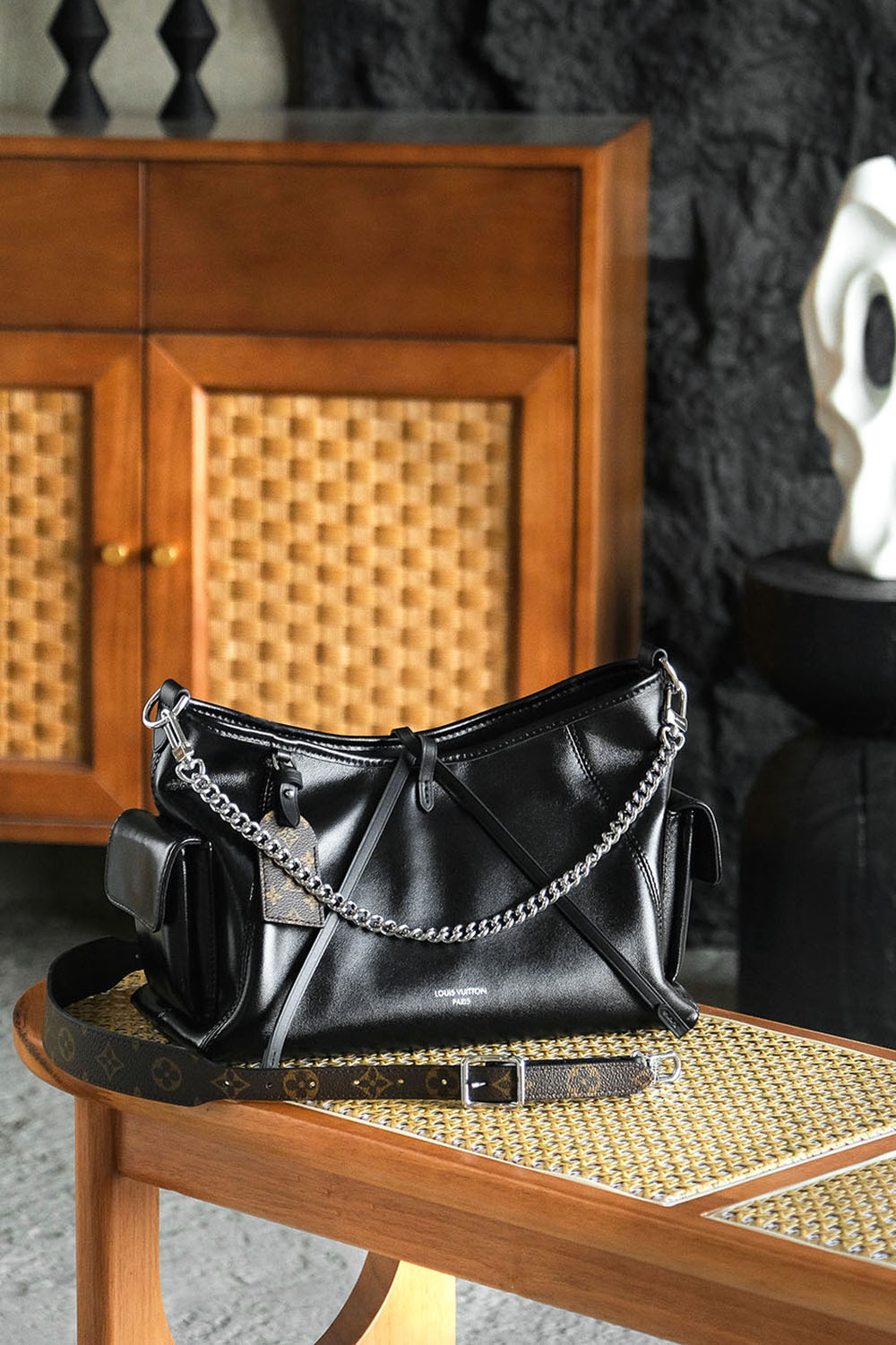 Изысканная сумка Louis Vuitton Carryall M24861 — идеальное сочетание городской практичности и высокой моды. Черная лаковая кожа, акценты с фирменным монограммом и серебристая цепочка создают образ, который подойдёт и для деловой встречи, и для вечернего выхода.