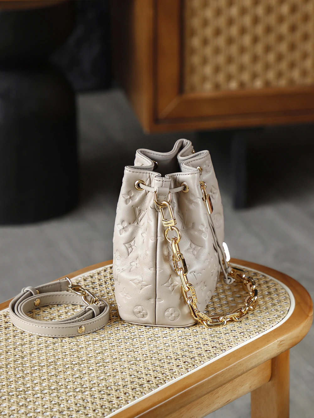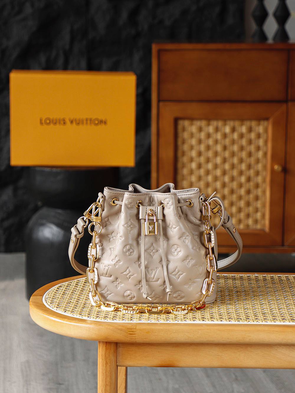 Louis Vuitton Coussin Bucket M26530 — изысканная сумка‑мешок, в которой гармония мягкости форм и фирменного декора превращает повседневный образ в стильный акцент.