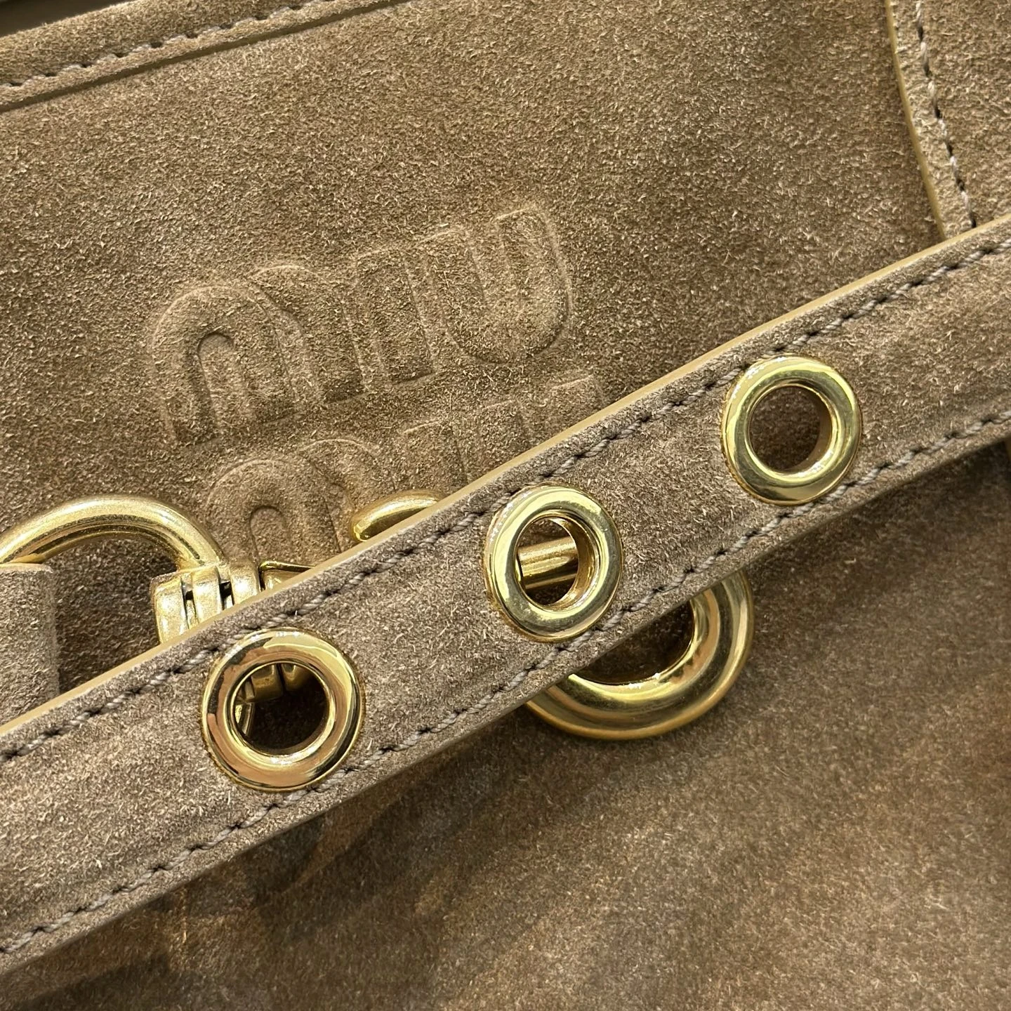 • Декор: ремешок на передней панели, подвесная бирка с логотипом, тиснение Miu Miu.