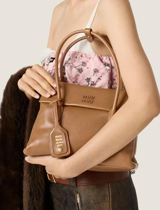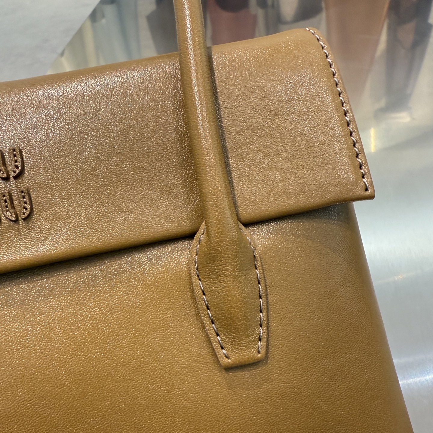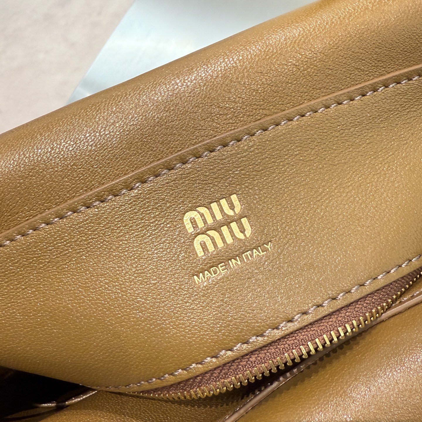 • Логотип и акценты: лаконичный металлический логотип MIU MIU на клапане и фирменный кожаный ярлык-бирка; фурнитура — золотистого оттенка, гармонично дополняет общий тон сумки.